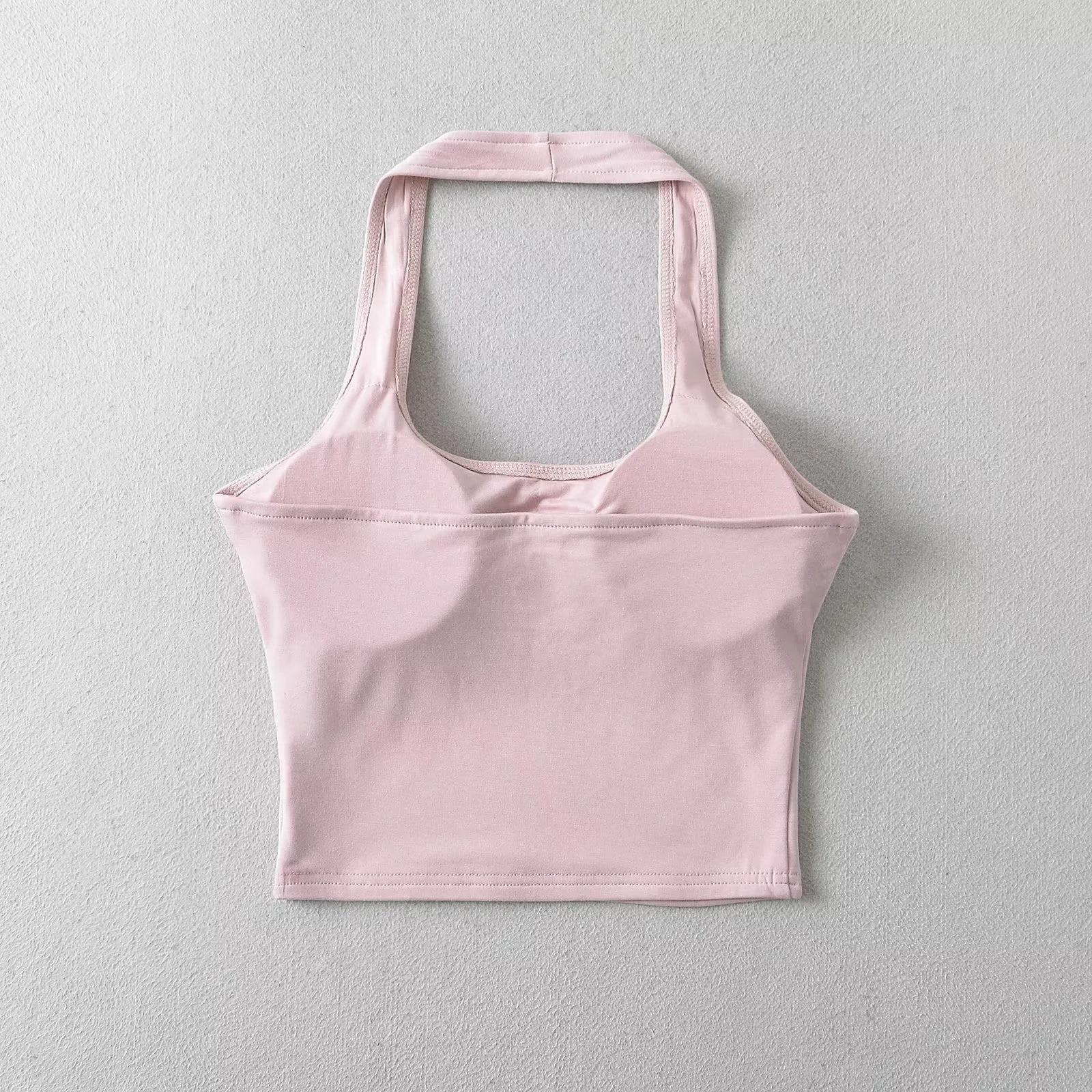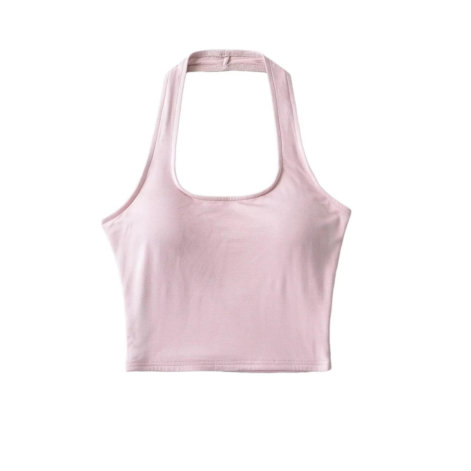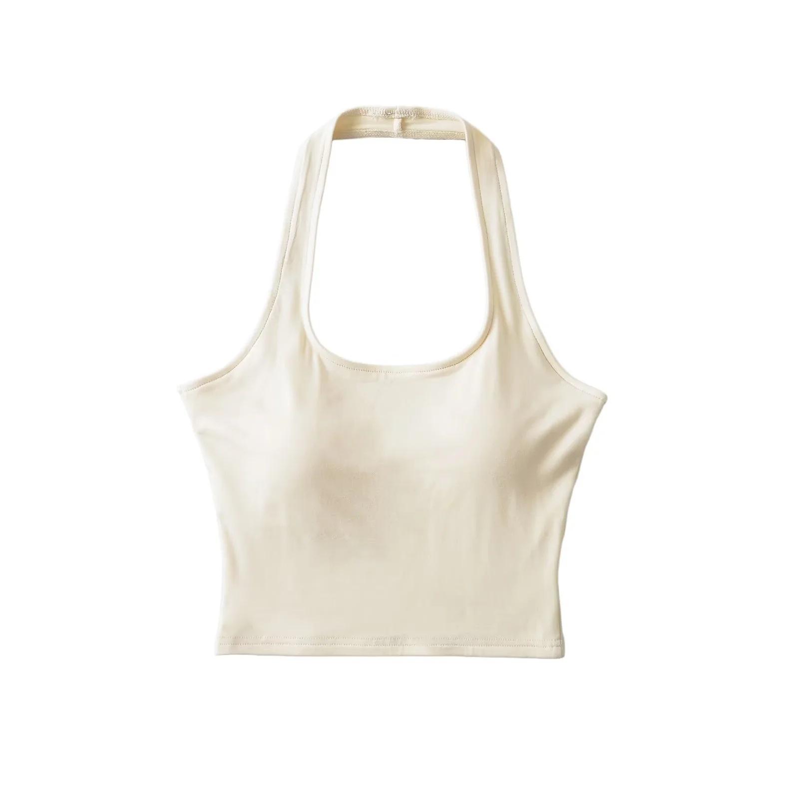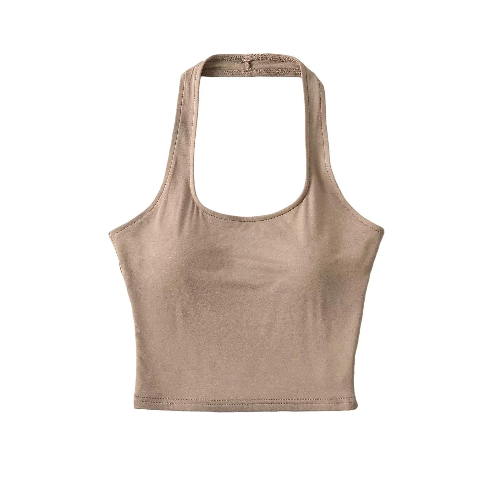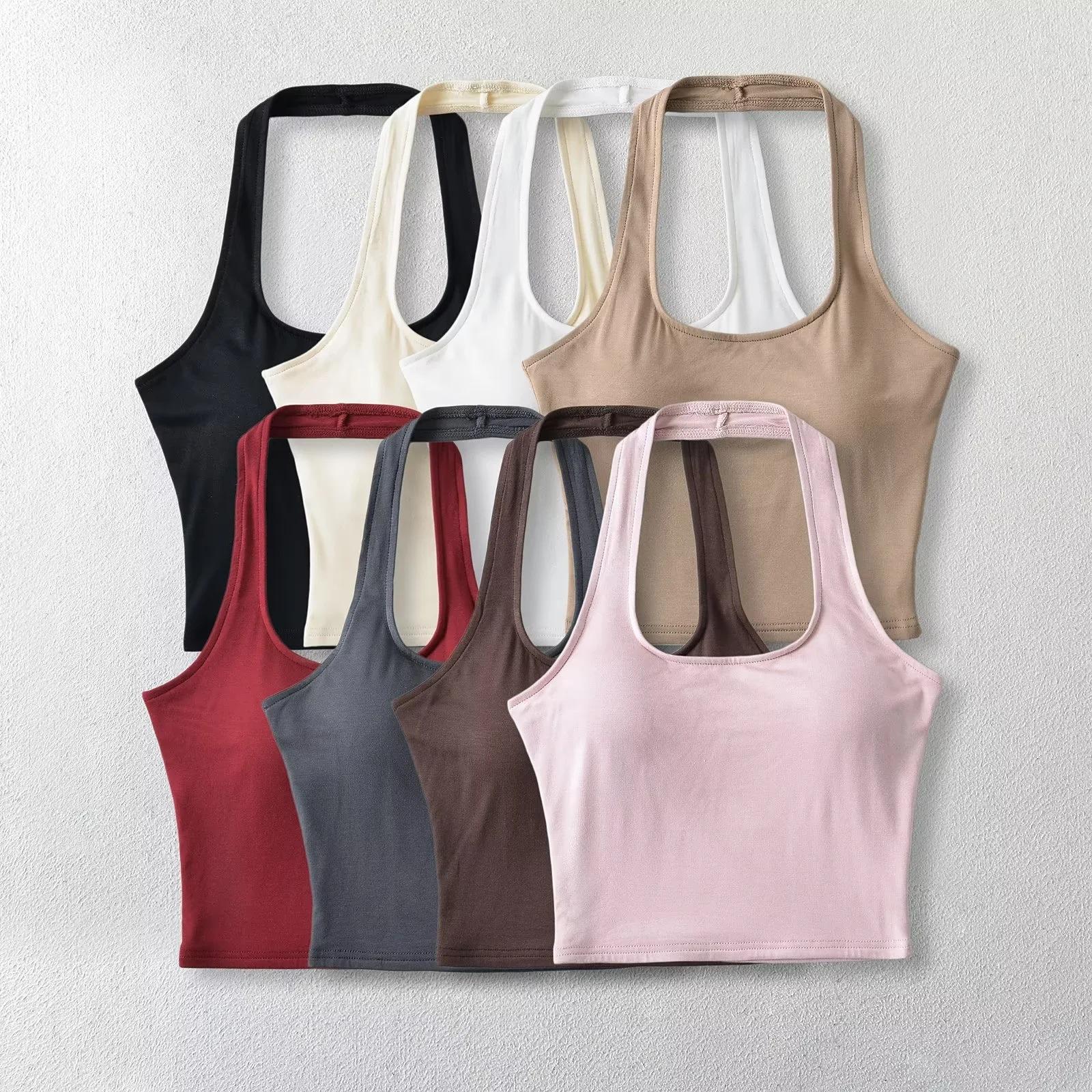 Top corto ajustado de verano para mujer, sexy, con cuello colgante, espalda descubierta, corte entallado, color liso, con ombligo al descubierto y almohadilla para el pecho.