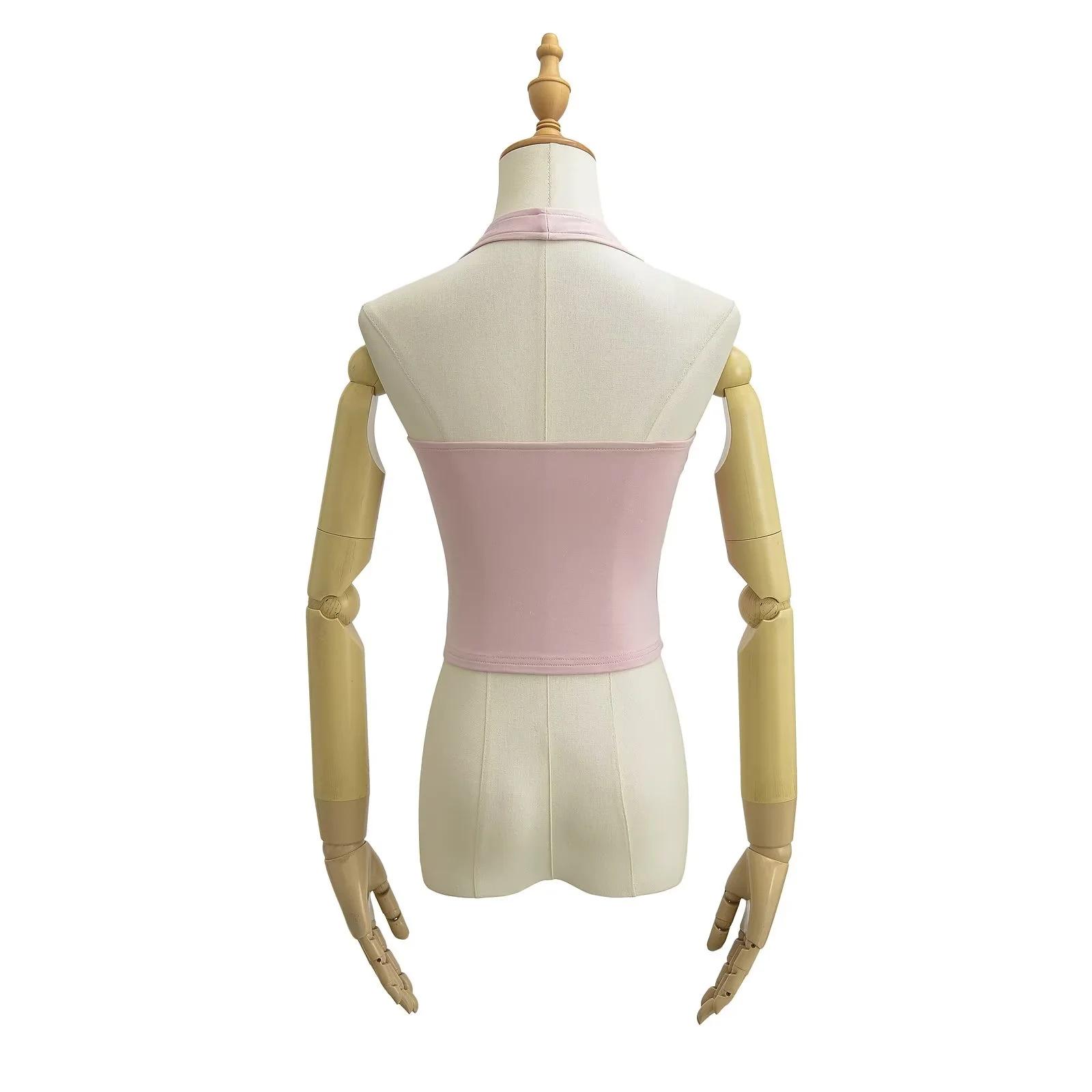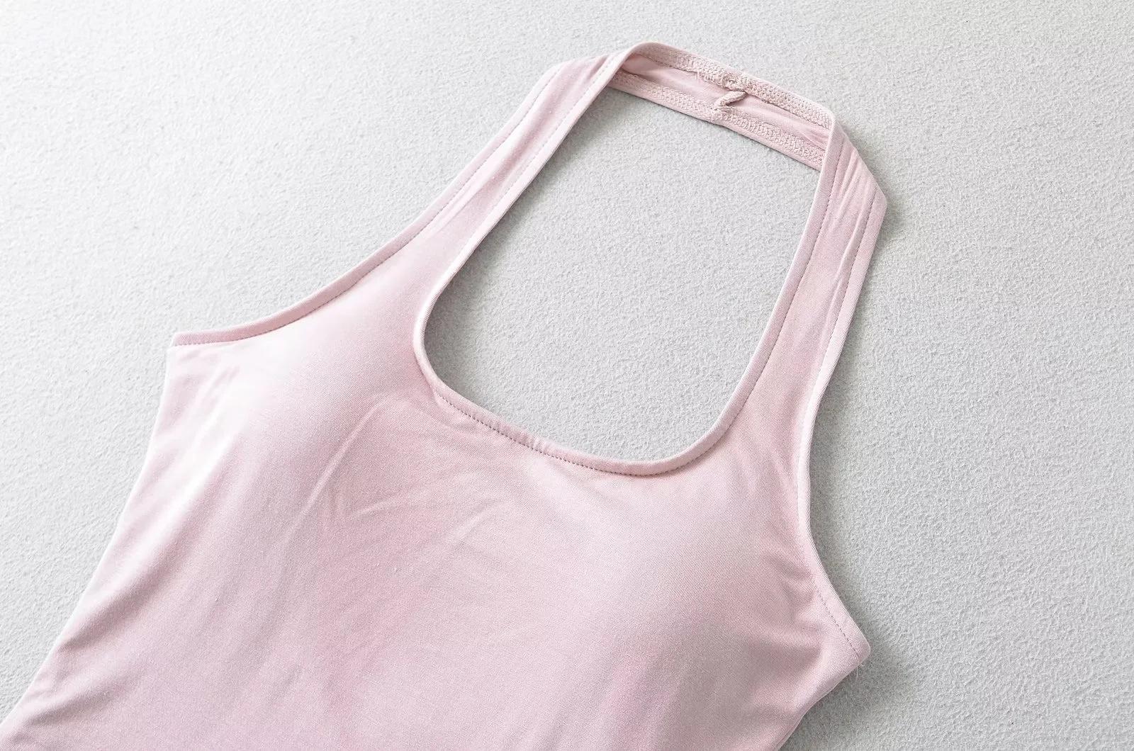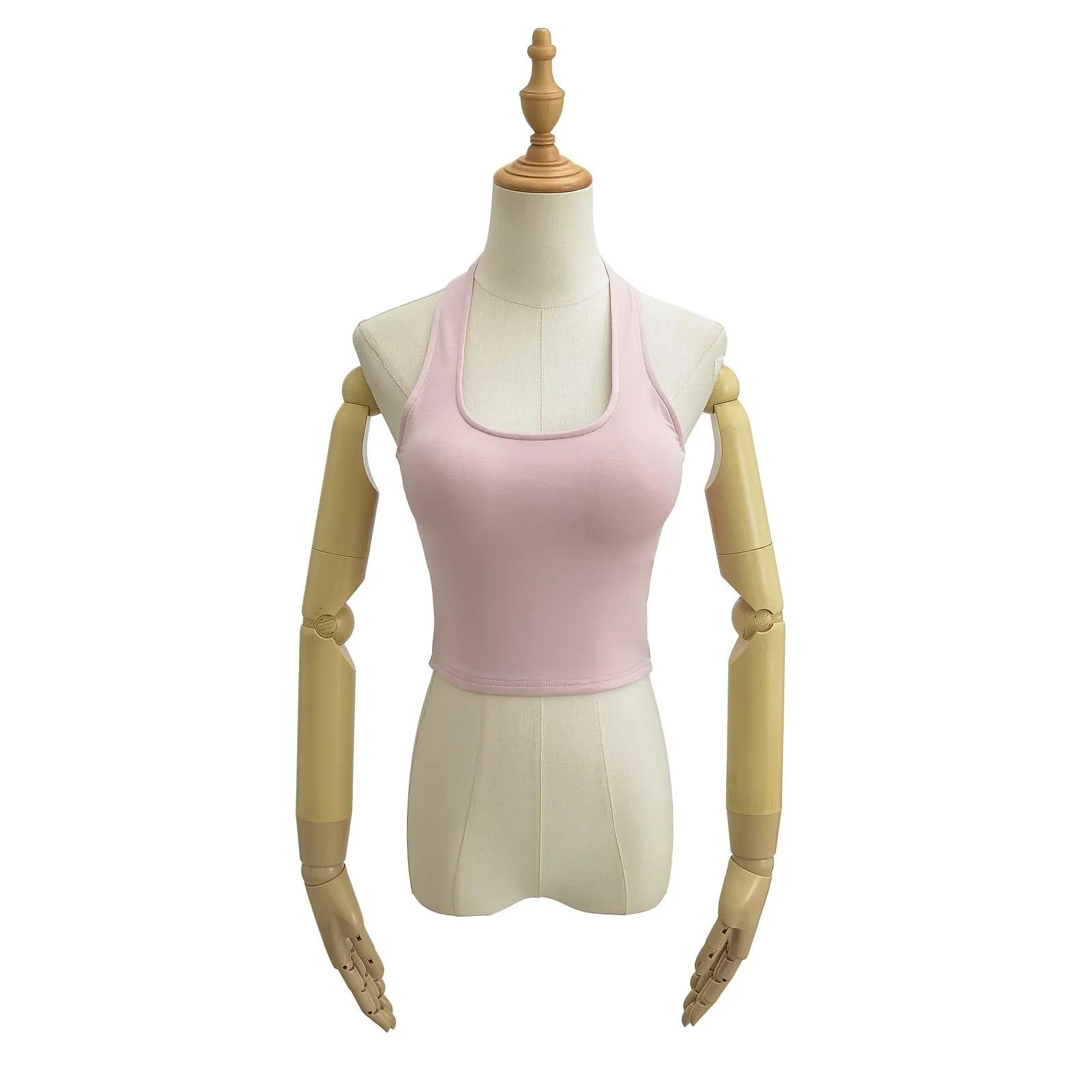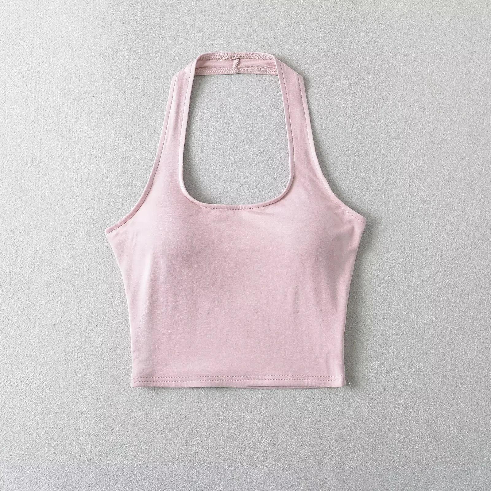 Top corto ajustado de verano para mujer, sexy, con cuello colgante, espalda descubierta, corte entallado, color liso, con ombligo al descubierto y almohadilla para el pecho.
