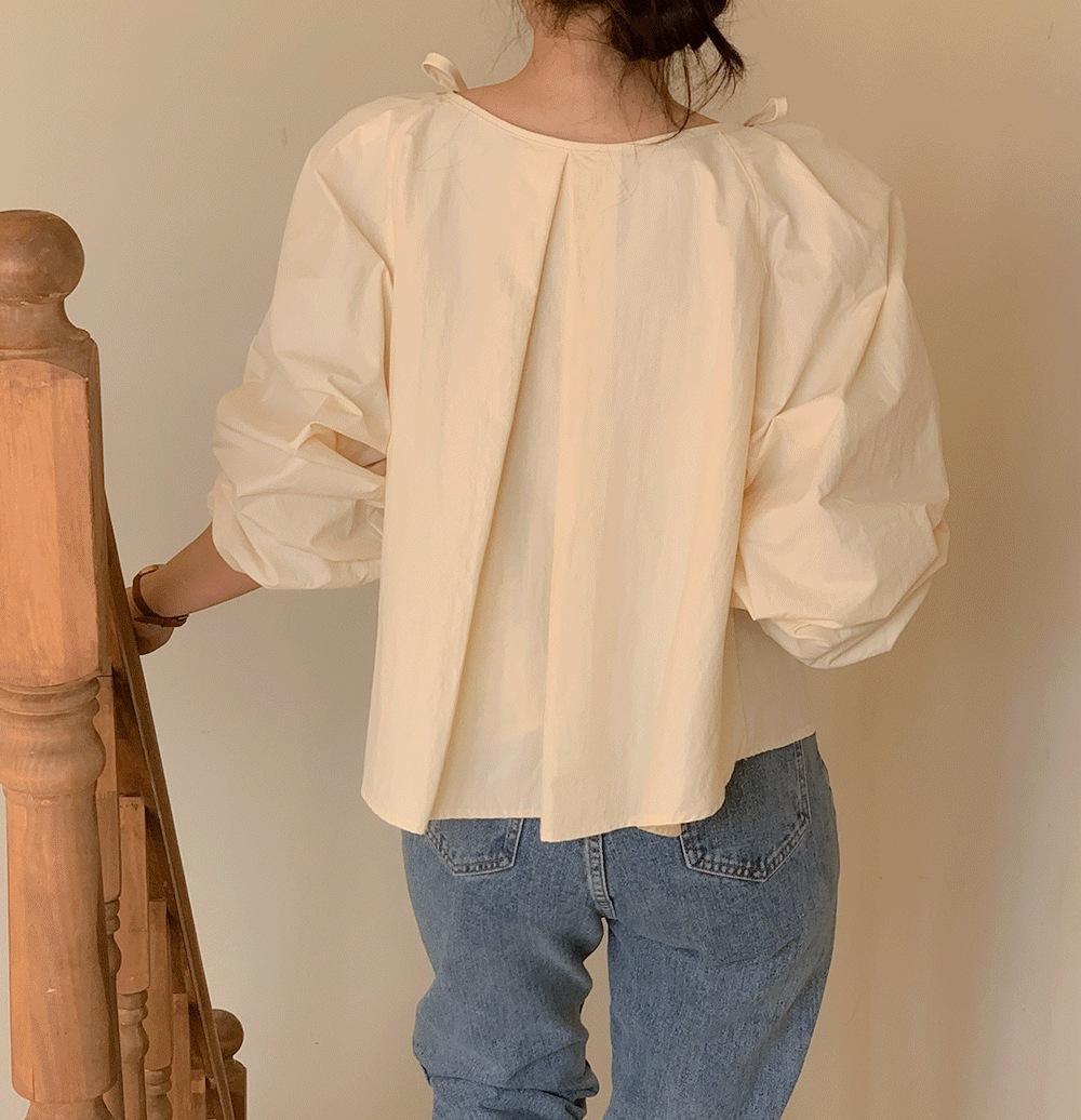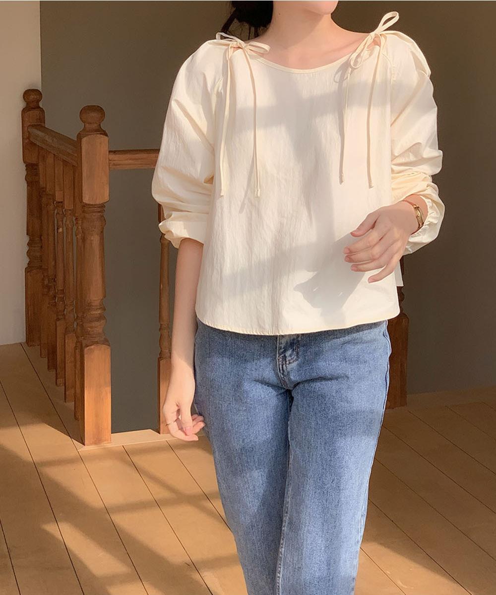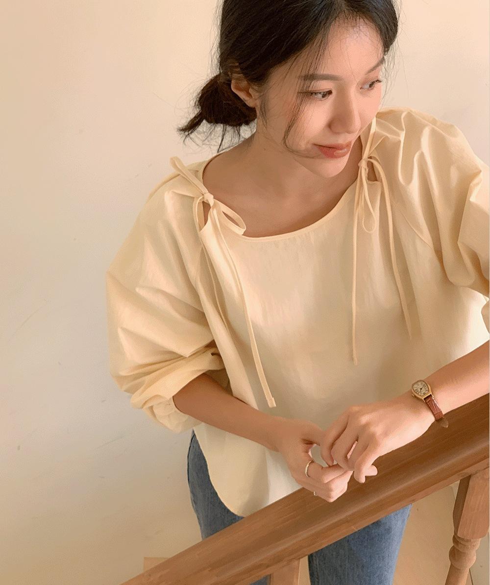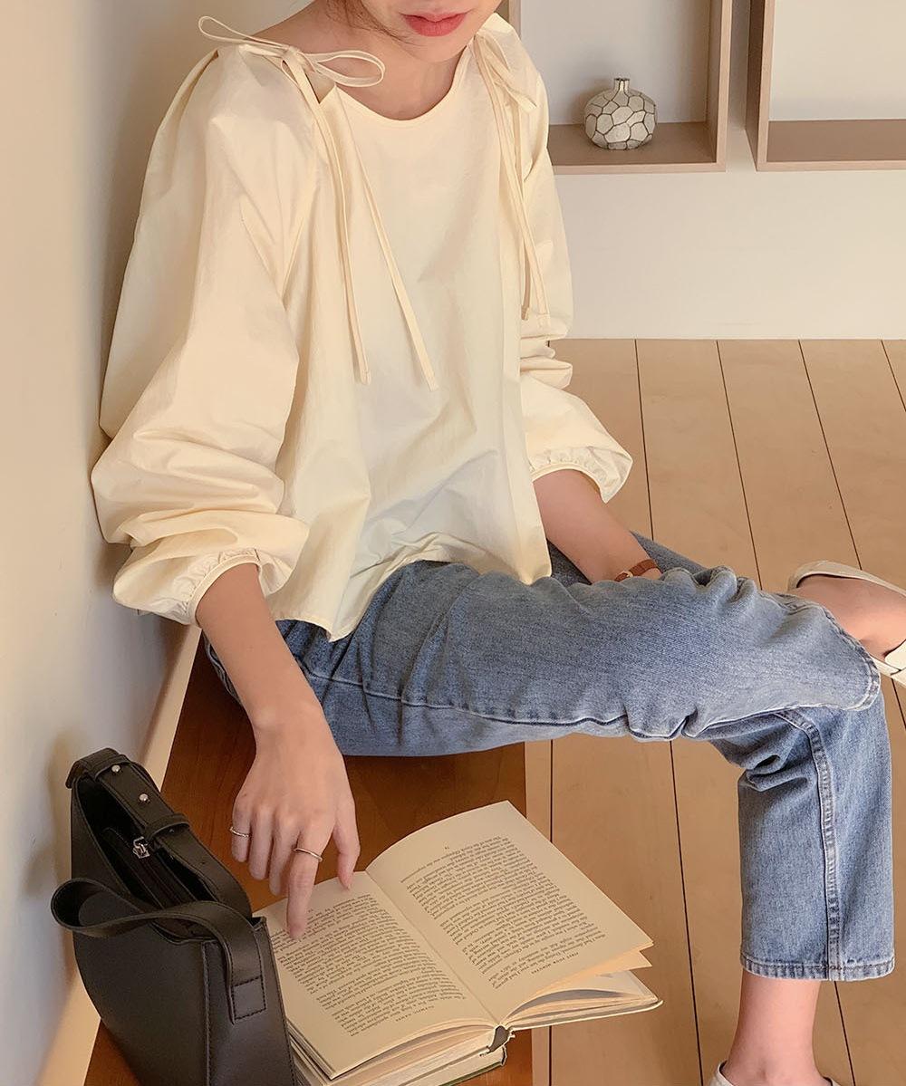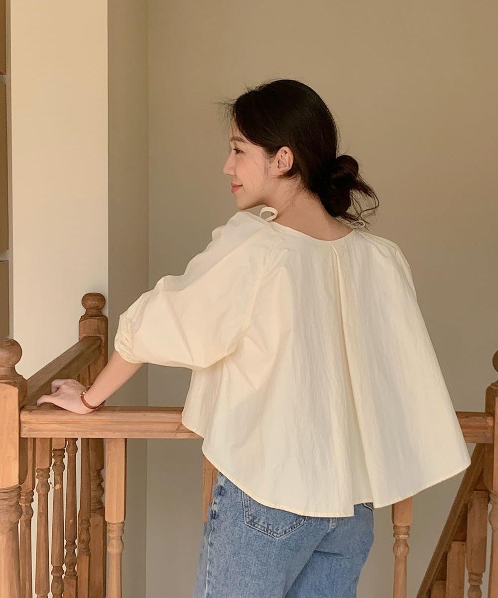 Camisa holgada con protección solar y mangas con lazo en los hombros, estilo coreano chic de primavera y estilo fresco.