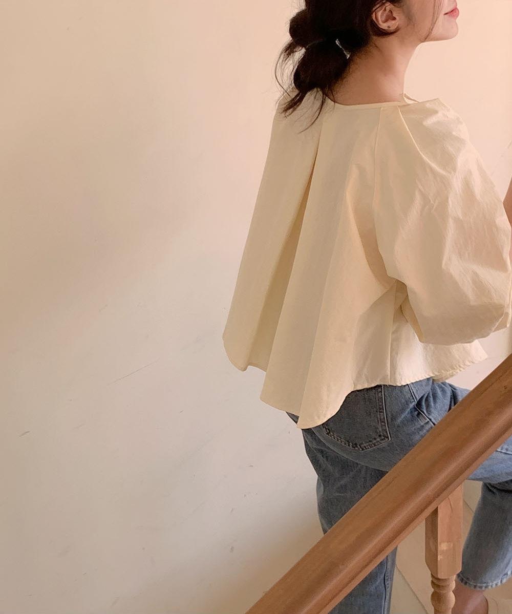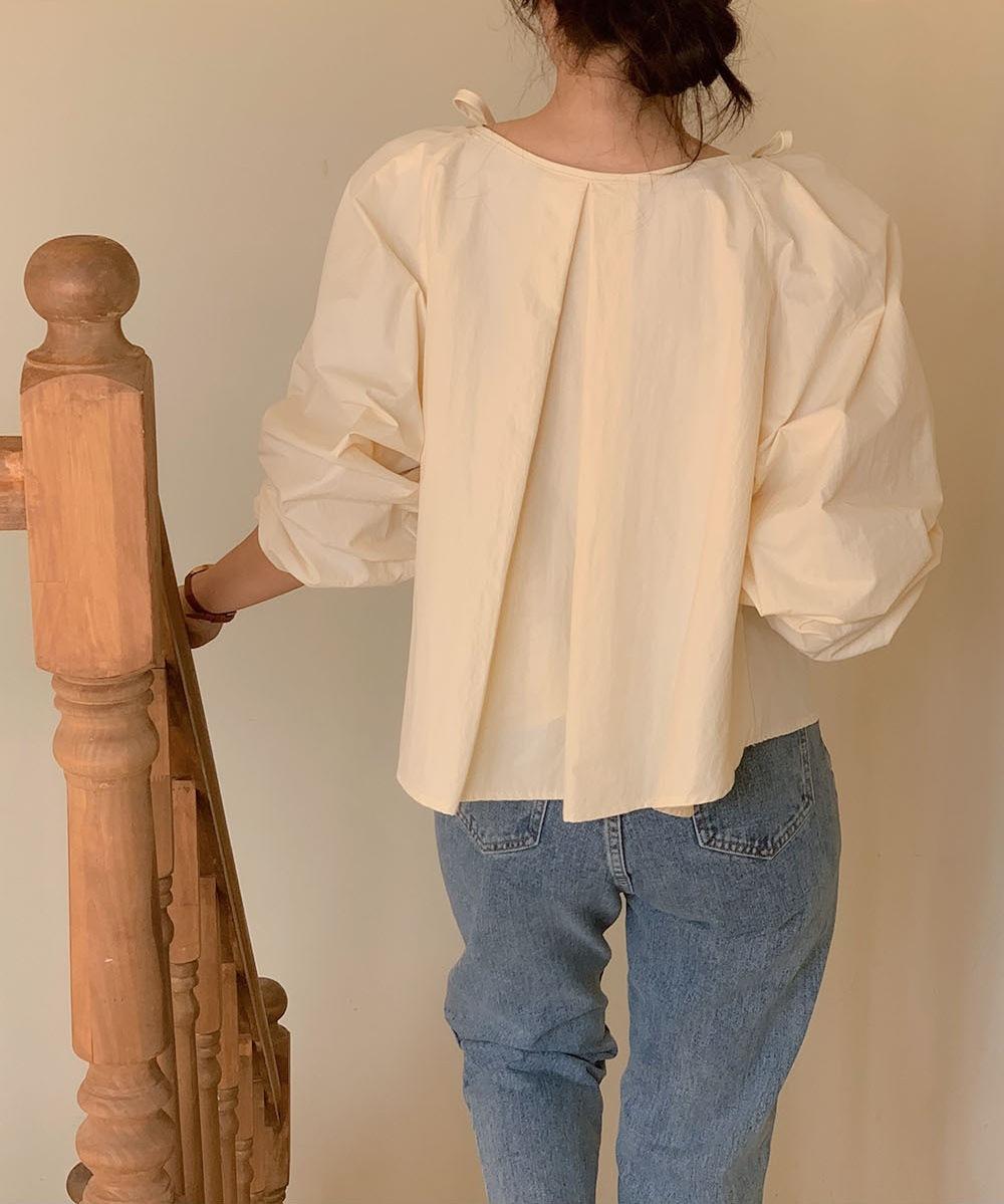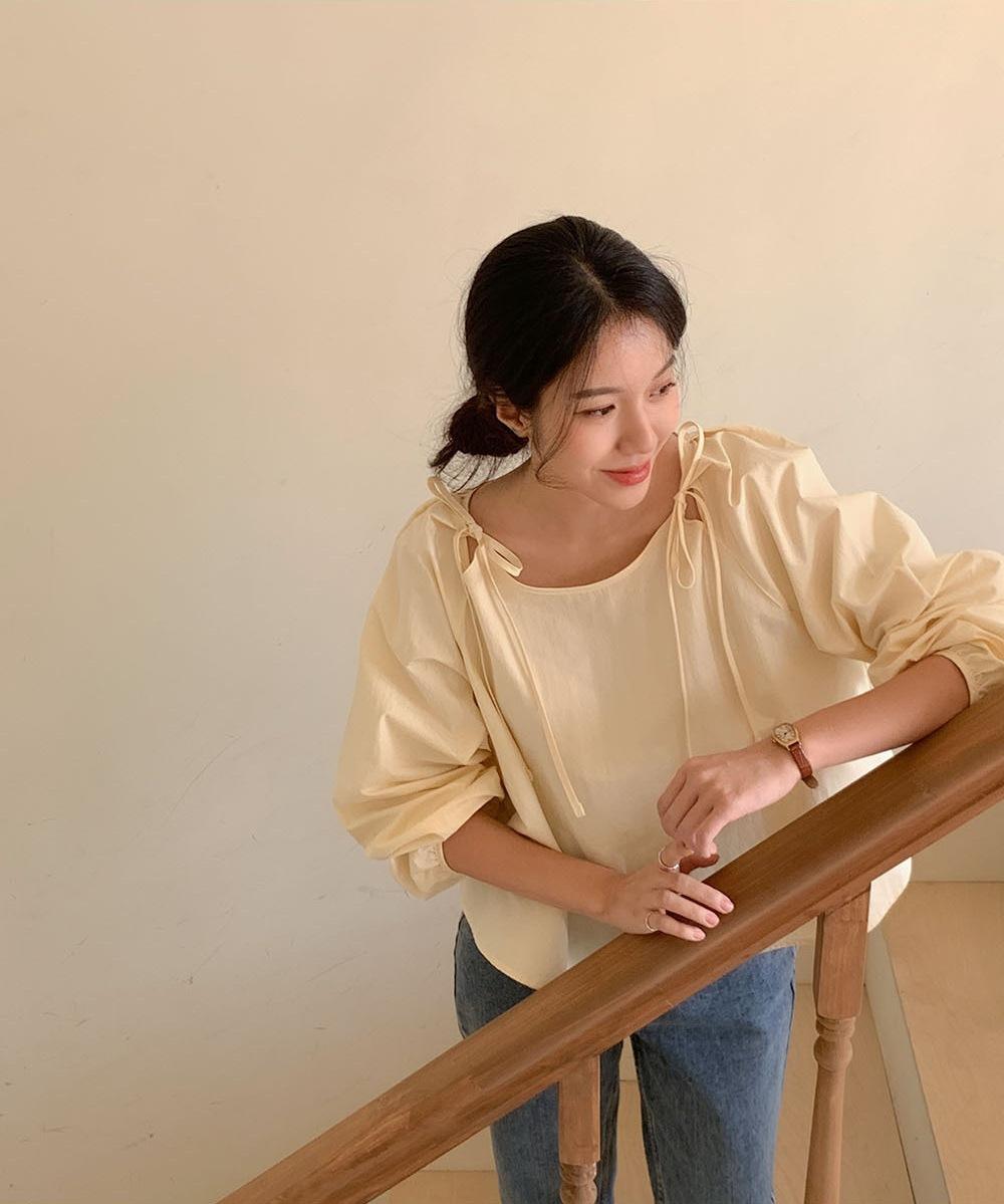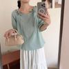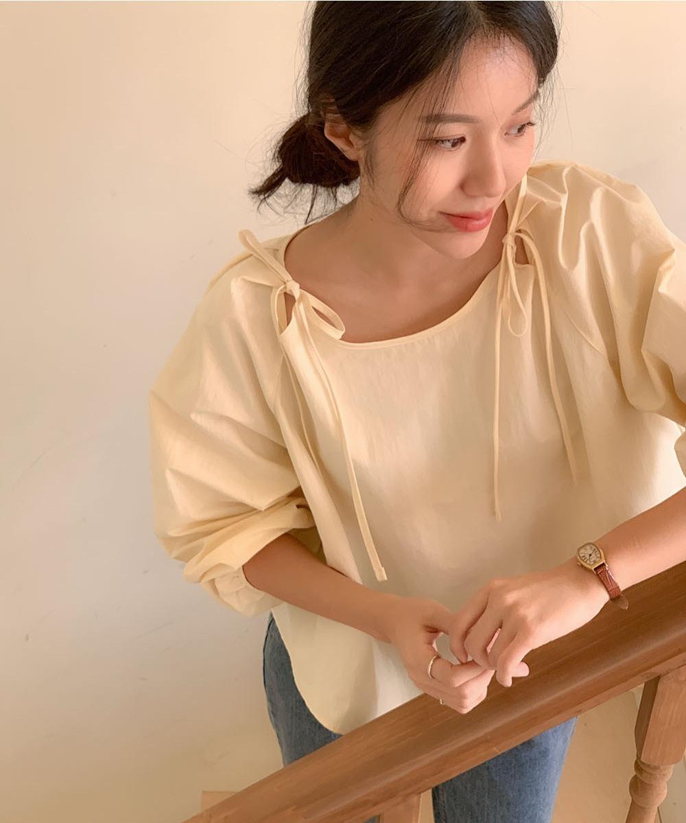 Camisa holgada con protección solar y mangas con lazo en los hombros, estilo coreano chic de primavera y estilo fresco.