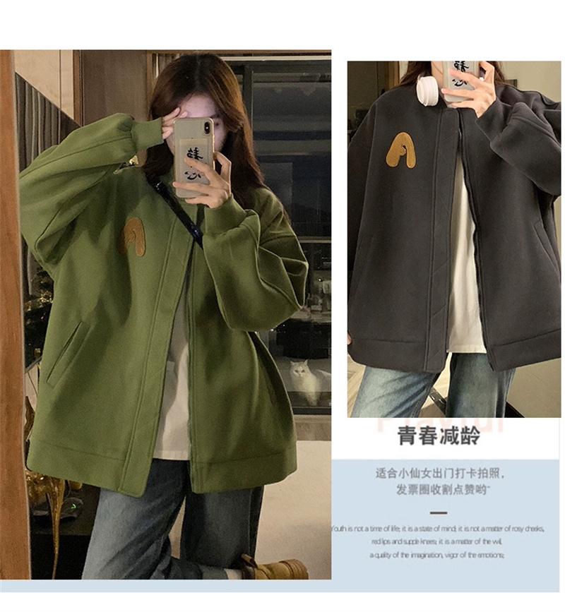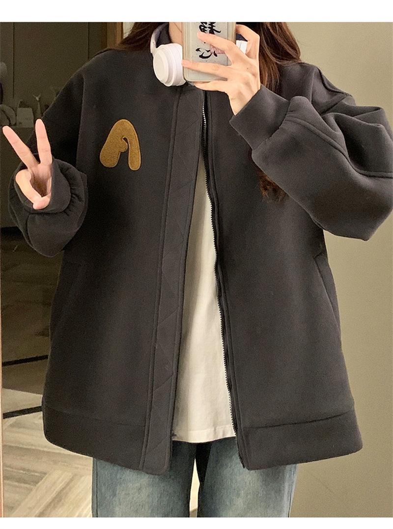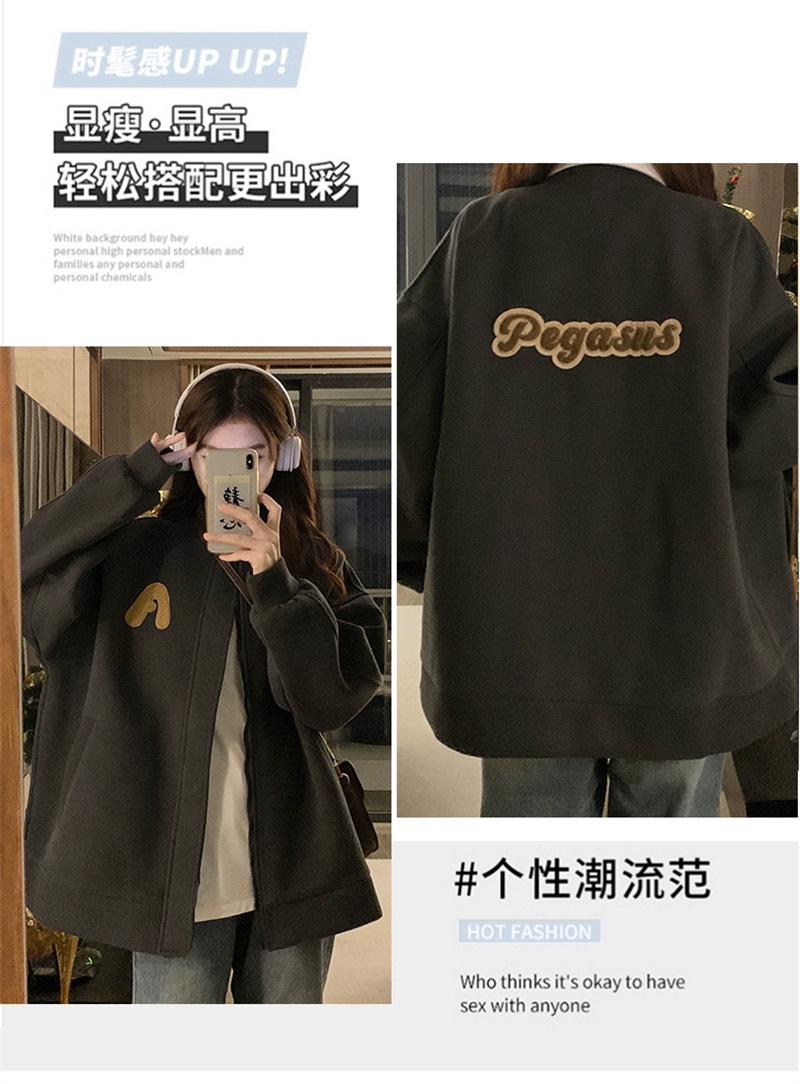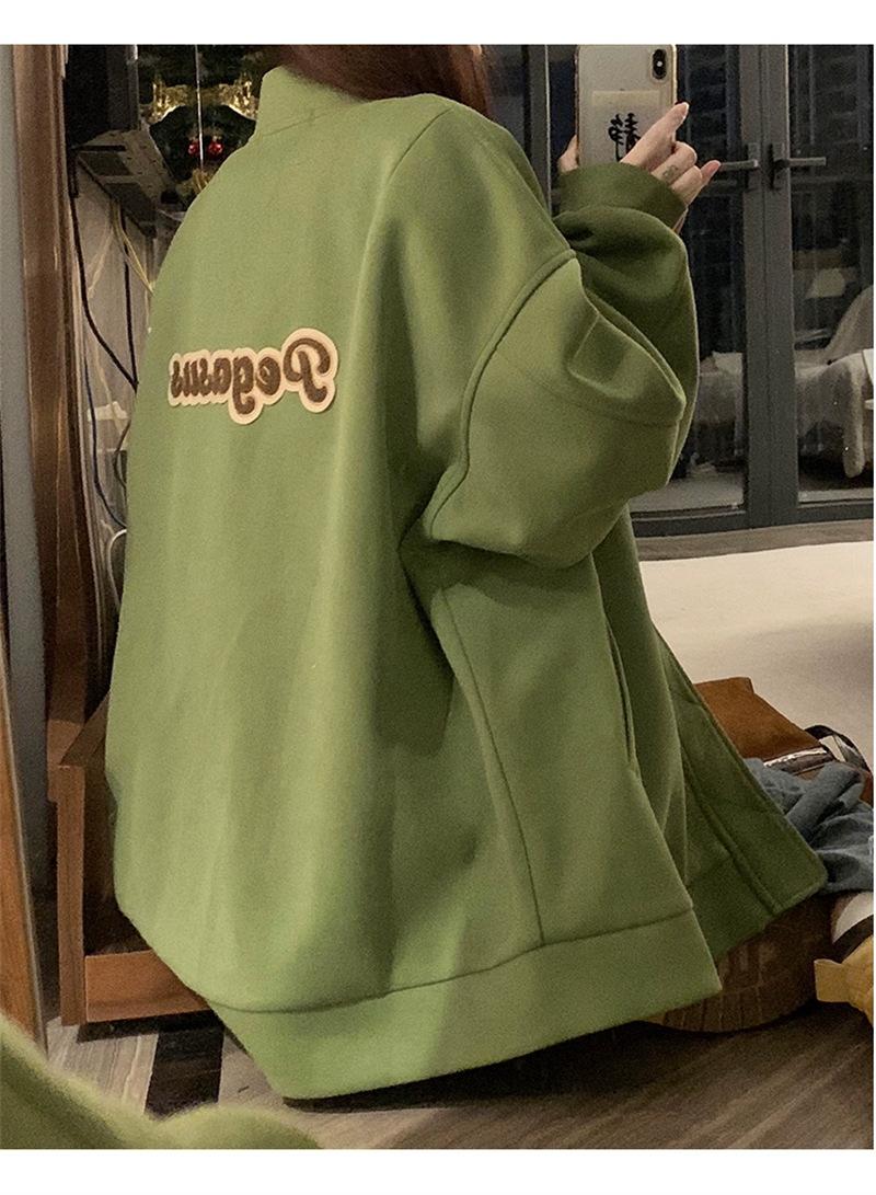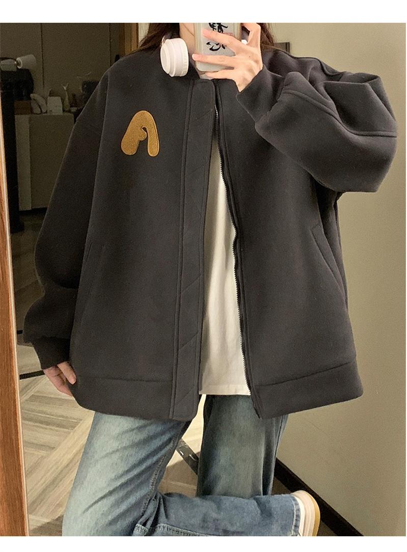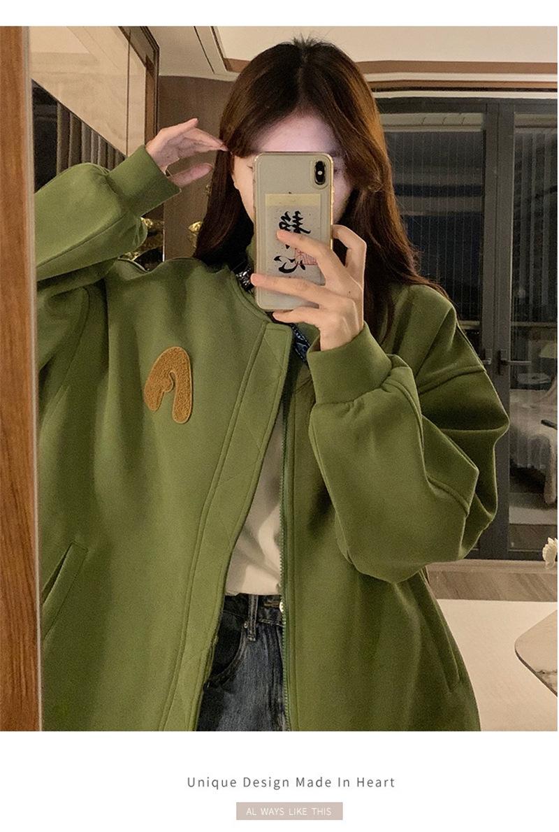 Suéter Cárdigan de Felpa con Letra Bordada para Mujer 2025 Otoño e Invierno Nuevo Suelto con Cremallera Versátil Estilo Extranjero Chaqueta de Manga Larga para Estudiante
