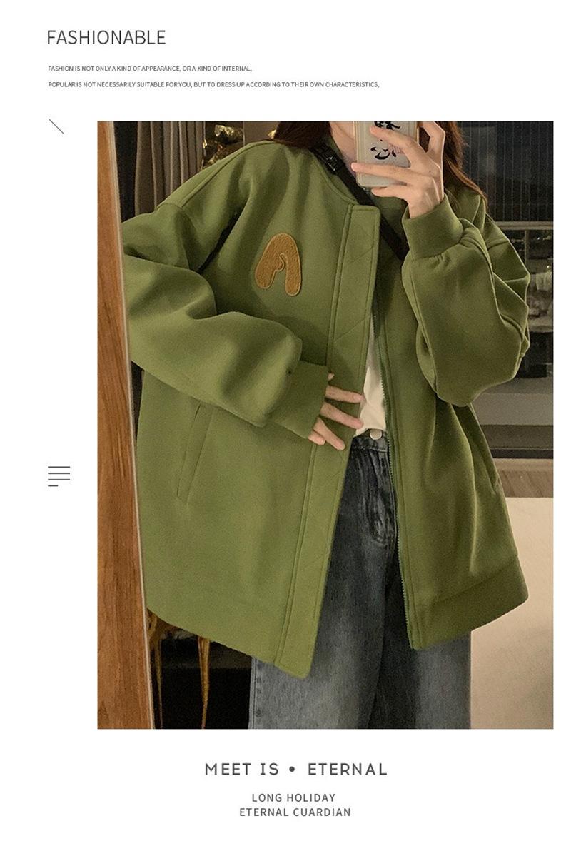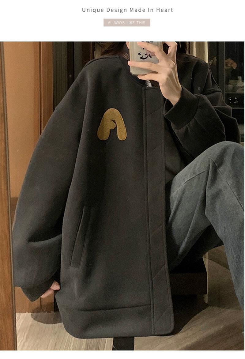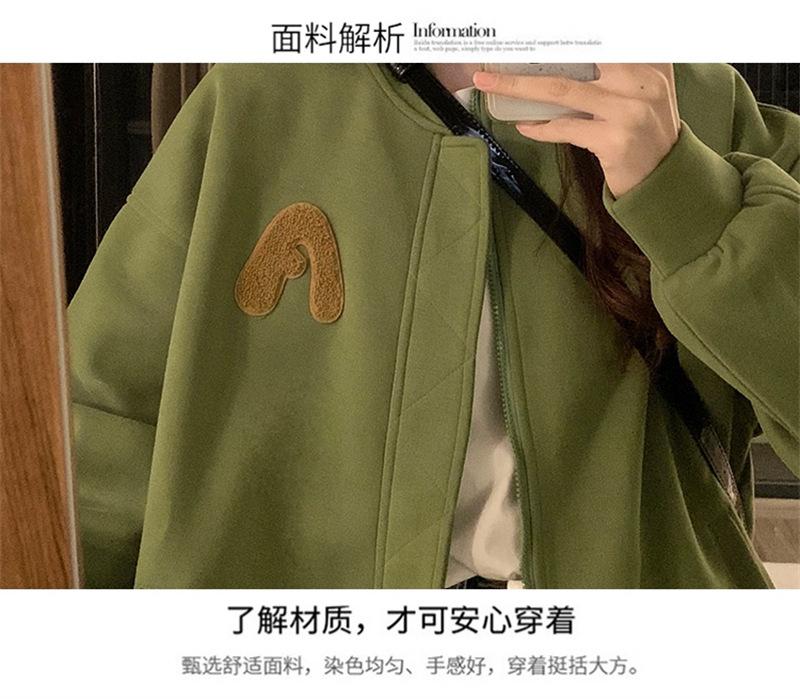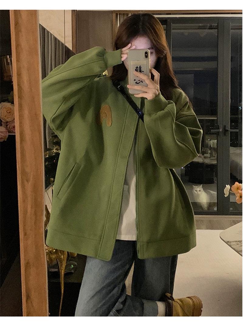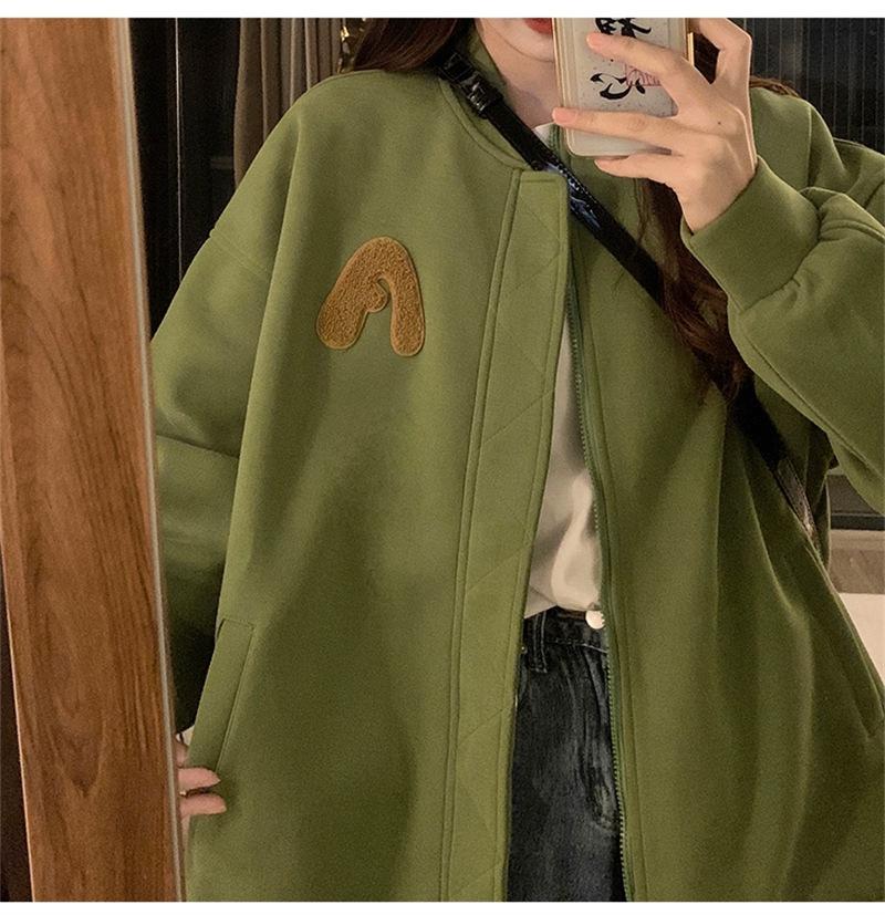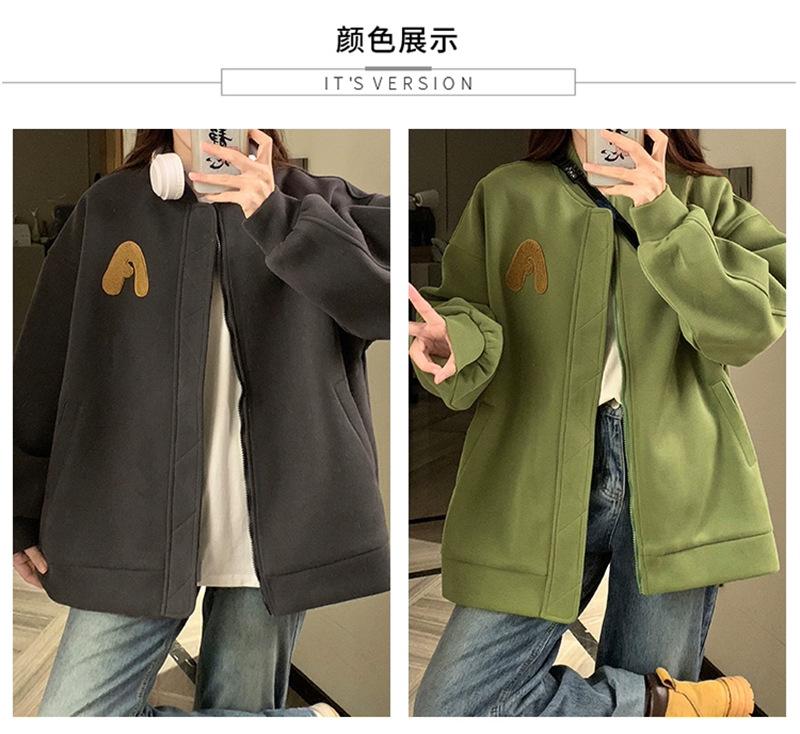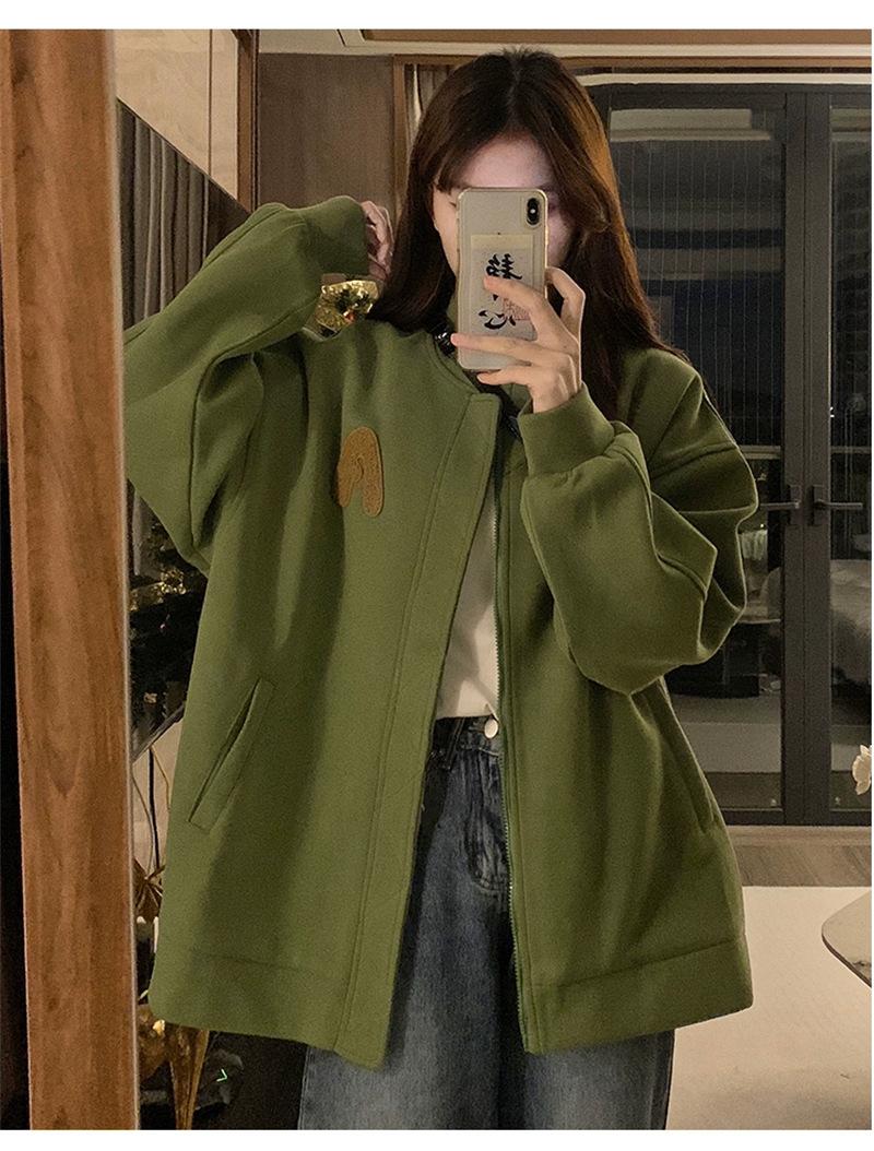 Suéter Cárdigan de Felpa con Letra Bordada para Mujer 2025 Otoño e Invierno Nuevo Suelto con Cremallera Versátil Estilo Extranjero Chaqueta de Manga Larga para Estudiante