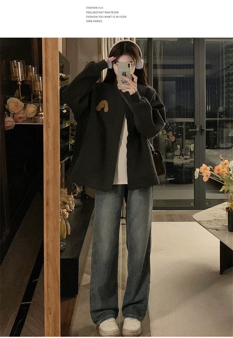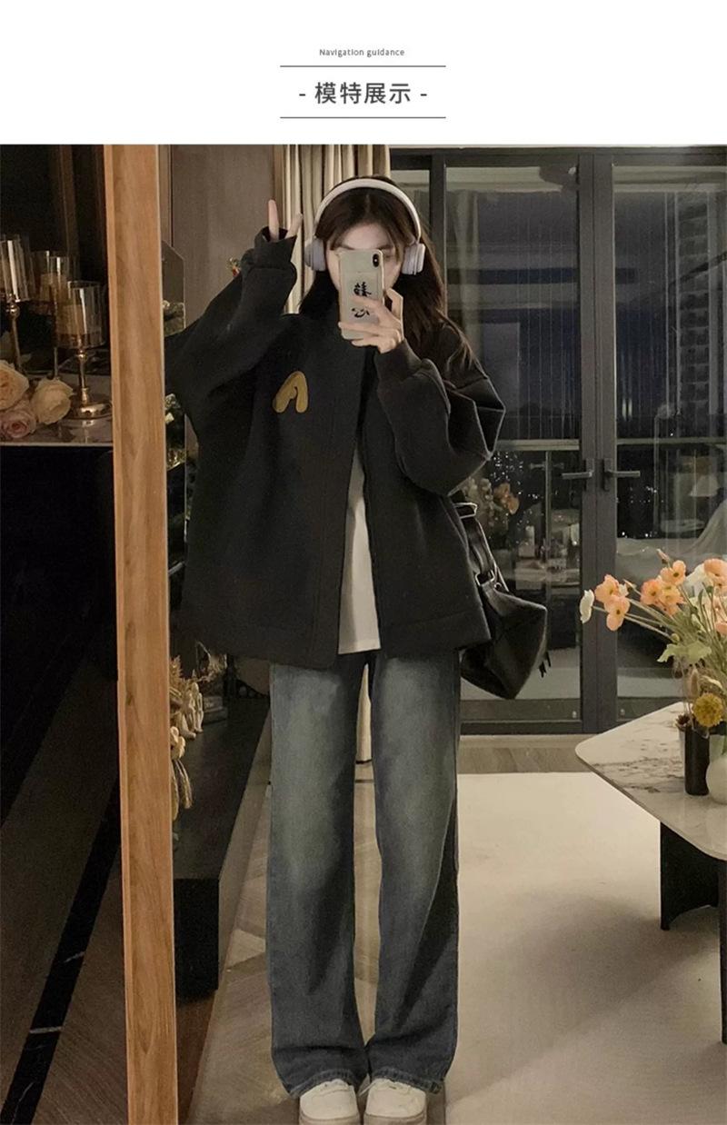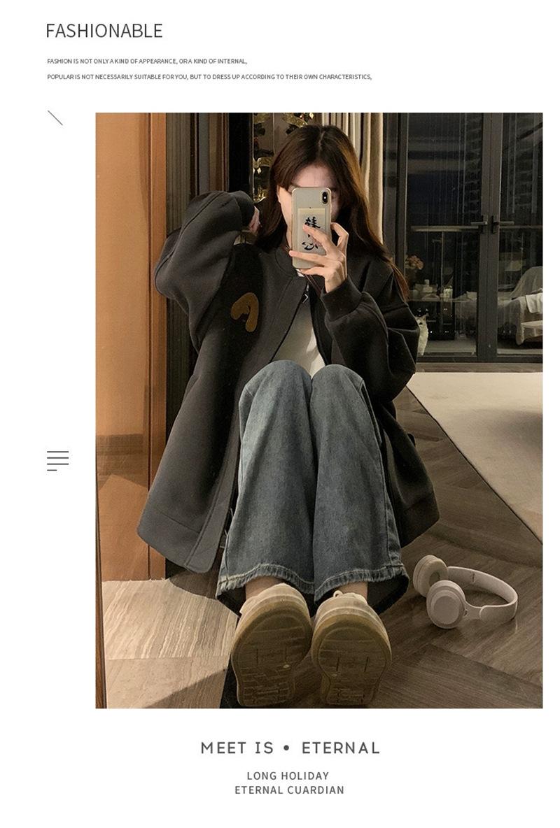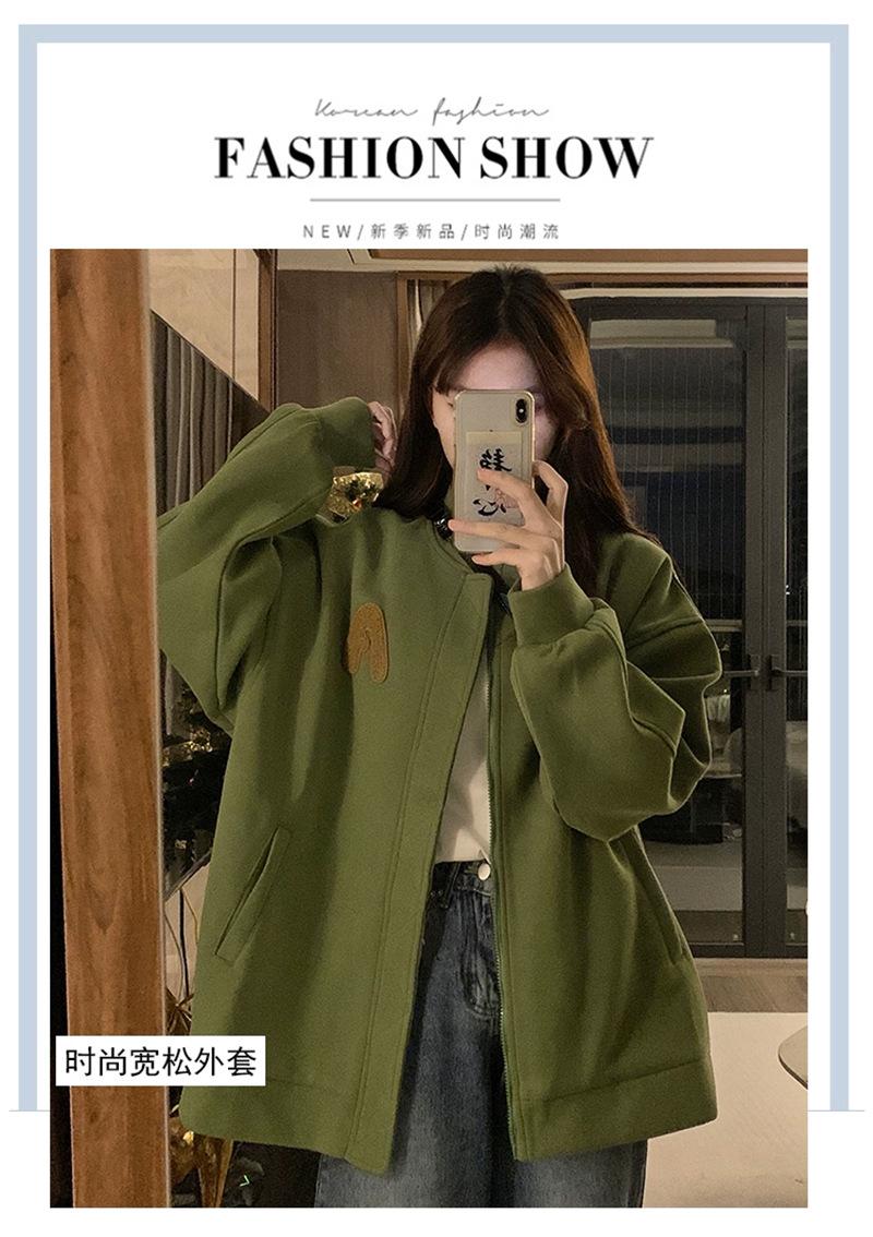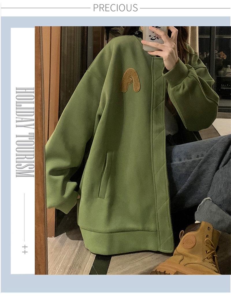 Suéter Cárdigan de Felpa con Letra Bordada para Mujer 2025 Otoño e Invierno Nuevo Suelto con Cremallera Versátil Estilo Extranjero Chaqueta de Manga Larga para Estudiante