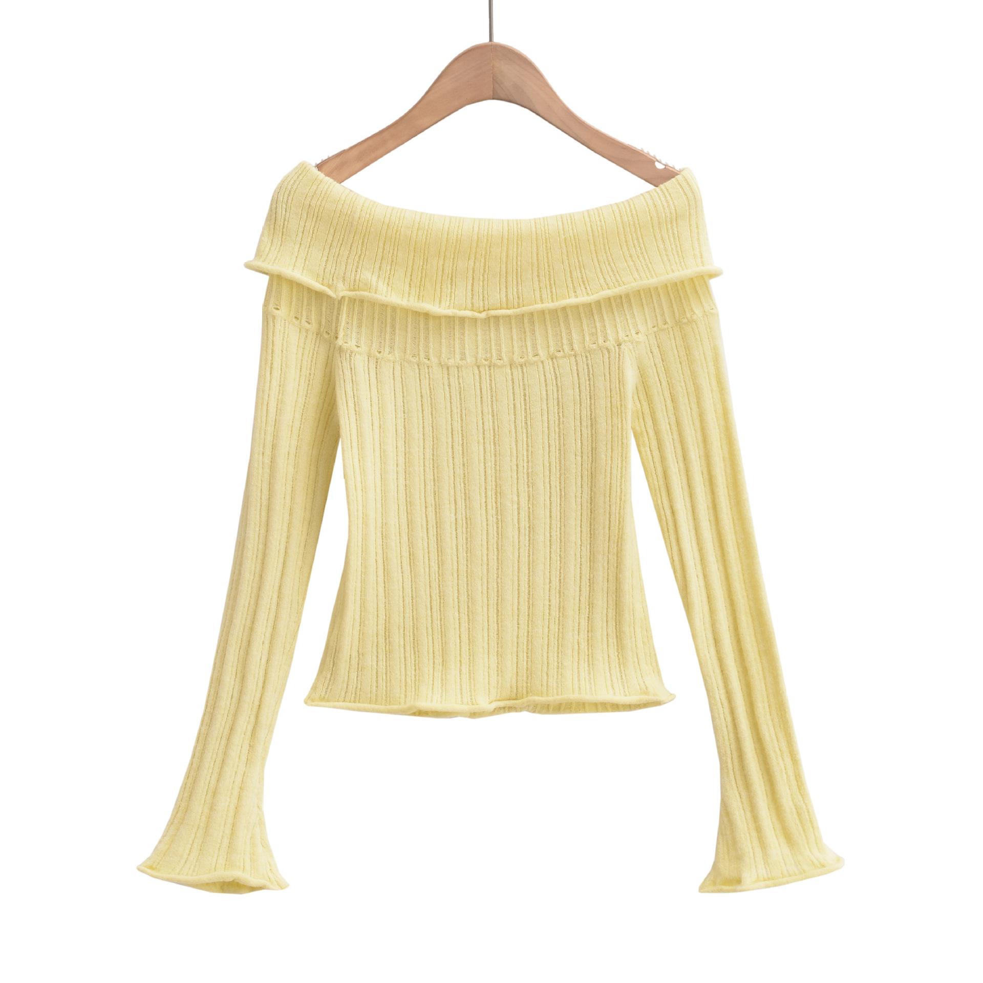 Otoño DS23125-23 nuevo estilo americano de deseo puro suéter sexy con hombros descubiertos y rizos para mujer