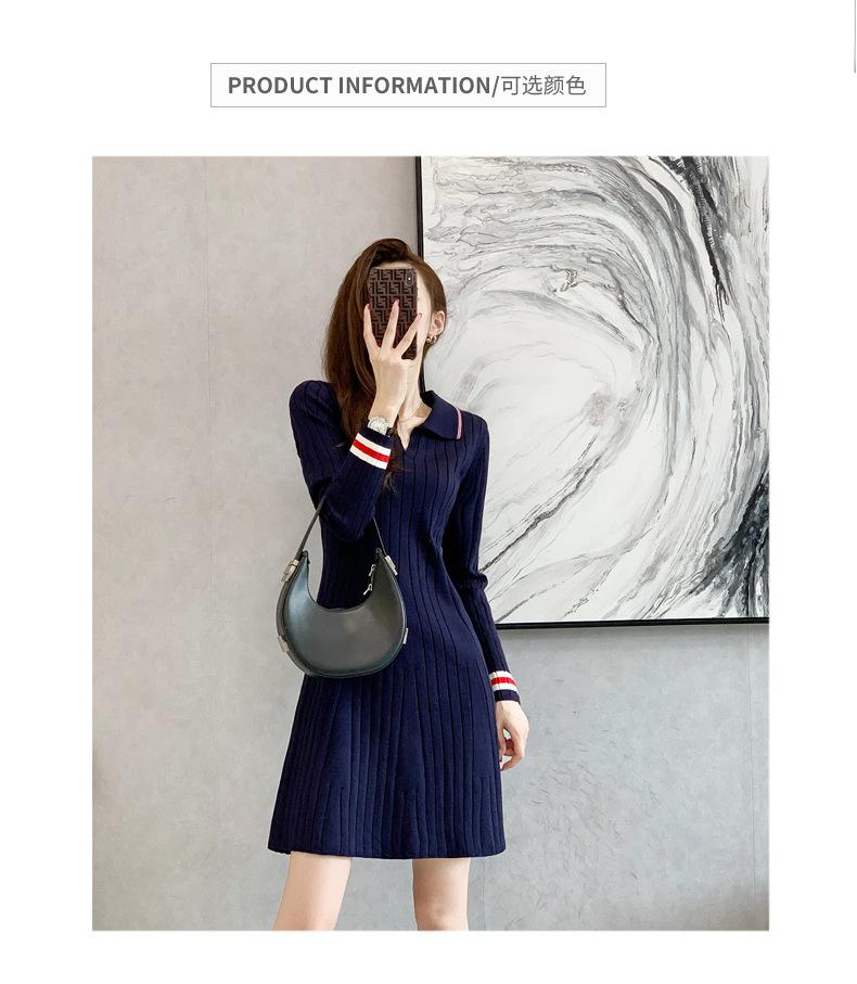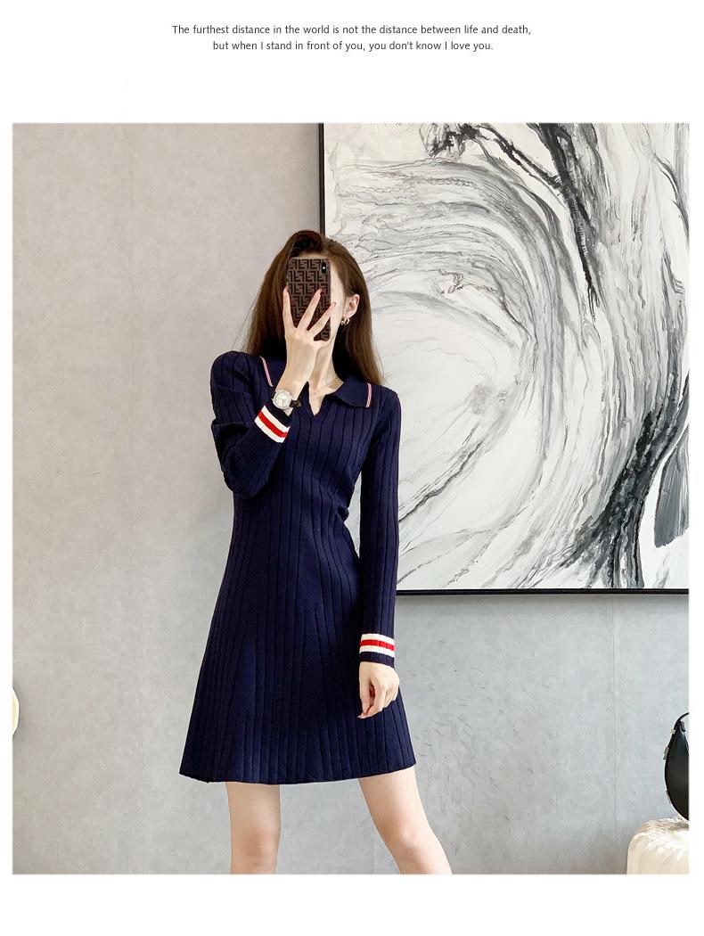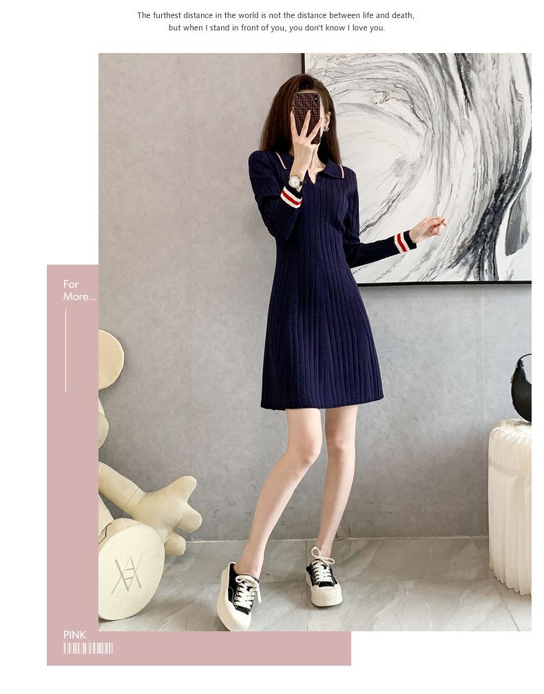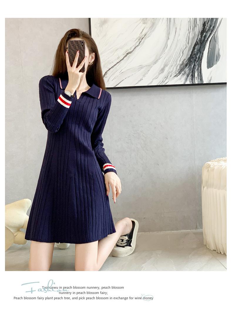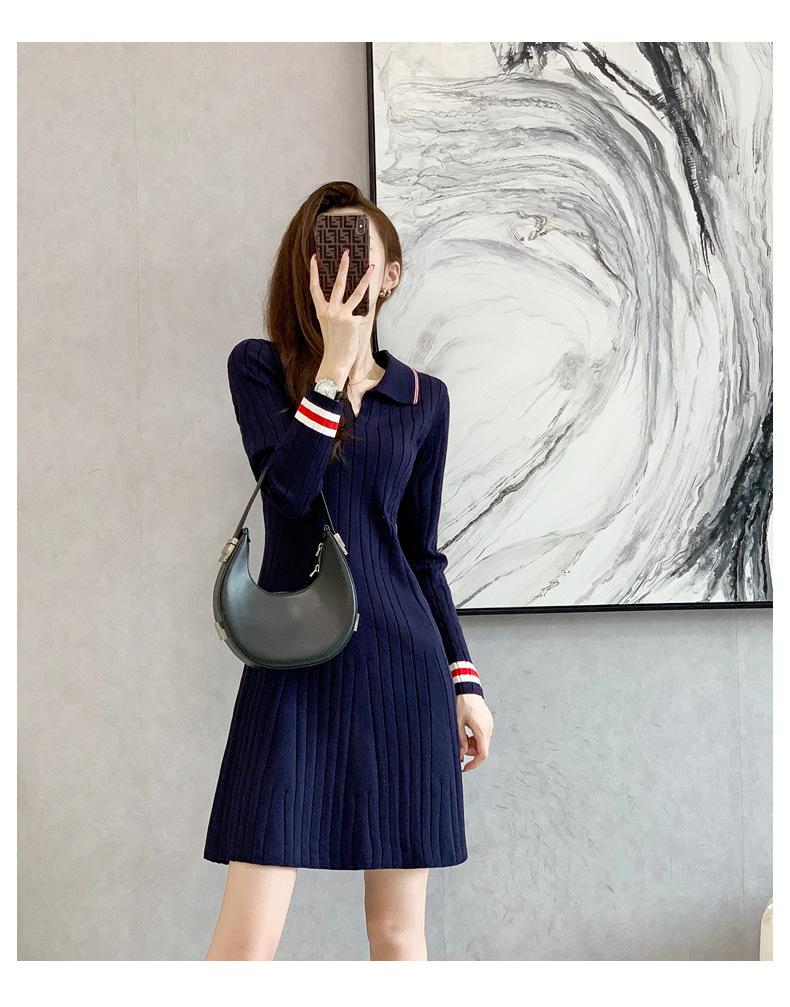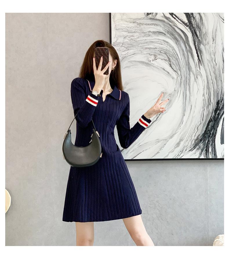 Vestido de Punto Slim Acampanado 2025 Otoño Nuevo Solapa Elegante de Manga Larga Suéter Base