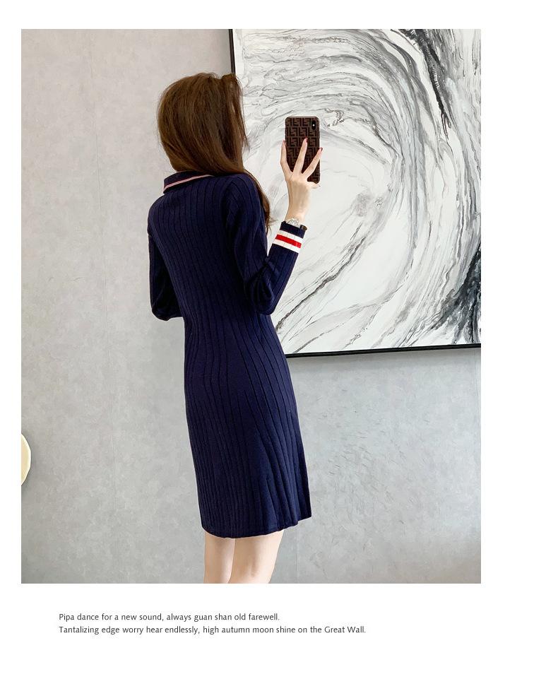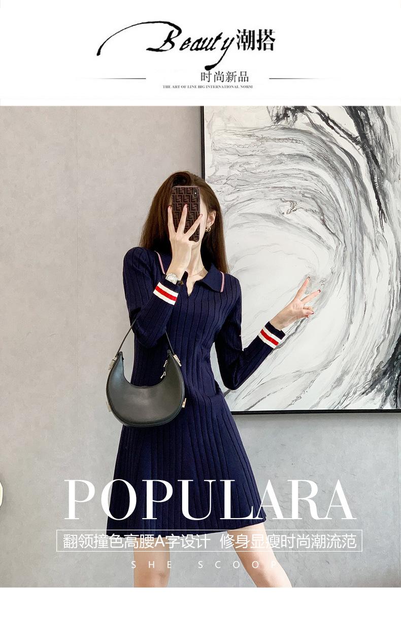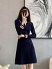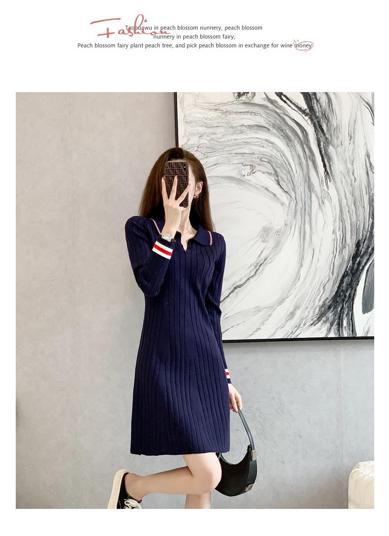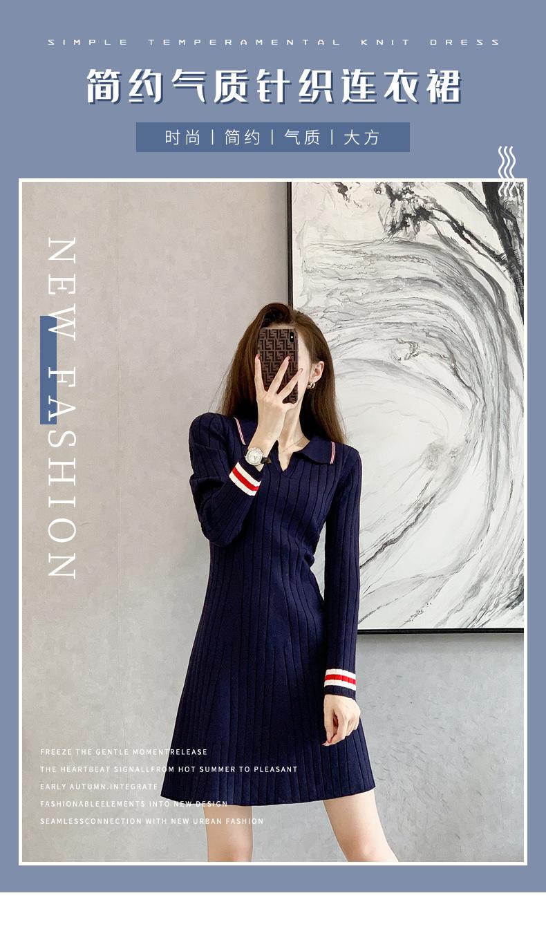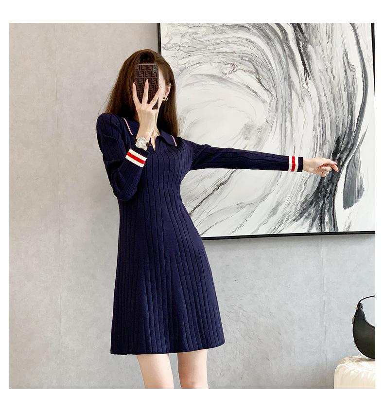 Vestido de Punto Slim Acampanado 2025 Otoño Nuevo Solapa Elegante de Manga Larga Suéter Base