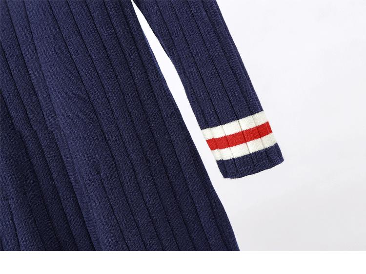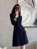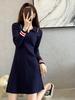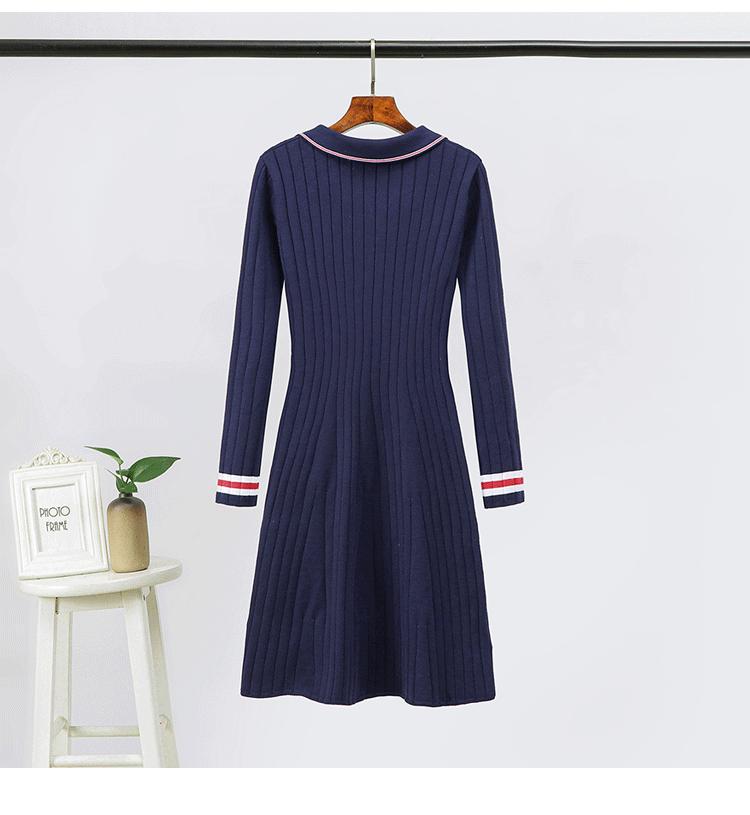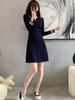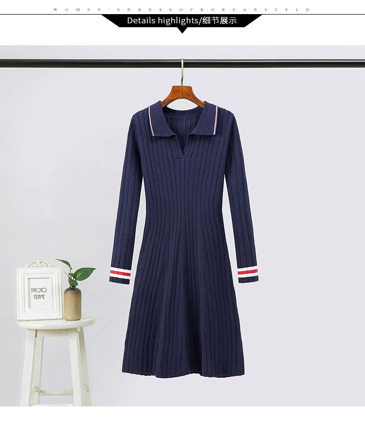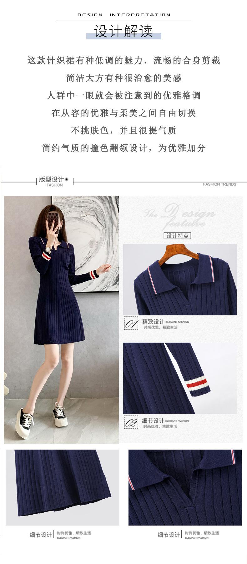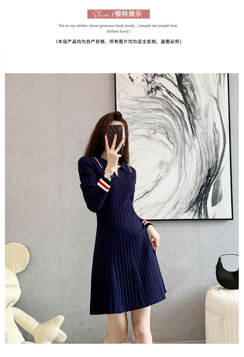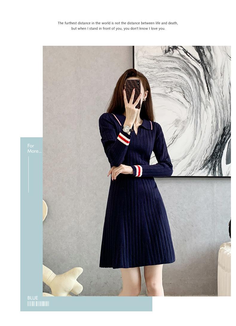 Vestido de Punto Slim Acampanado 2025 Otoño Nuevo Solapa Elegante de Manga Larga Suéter Base