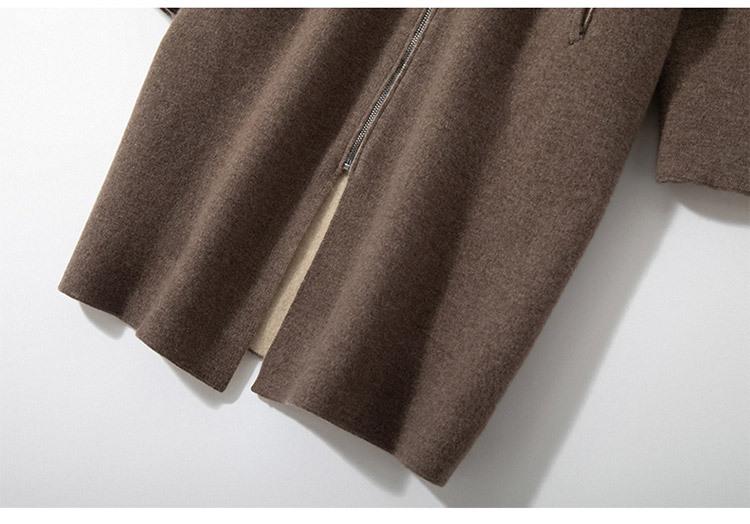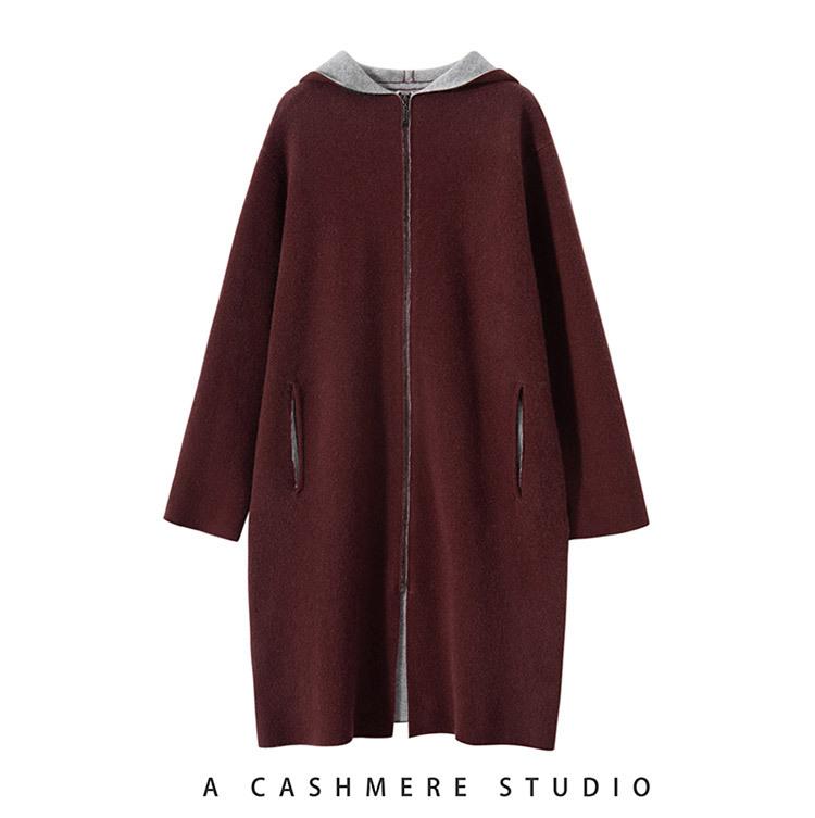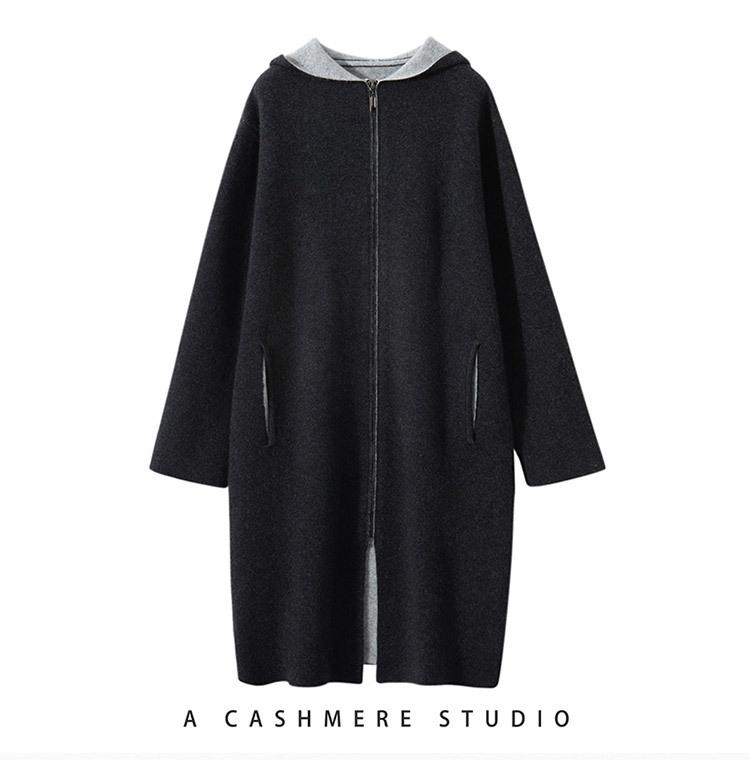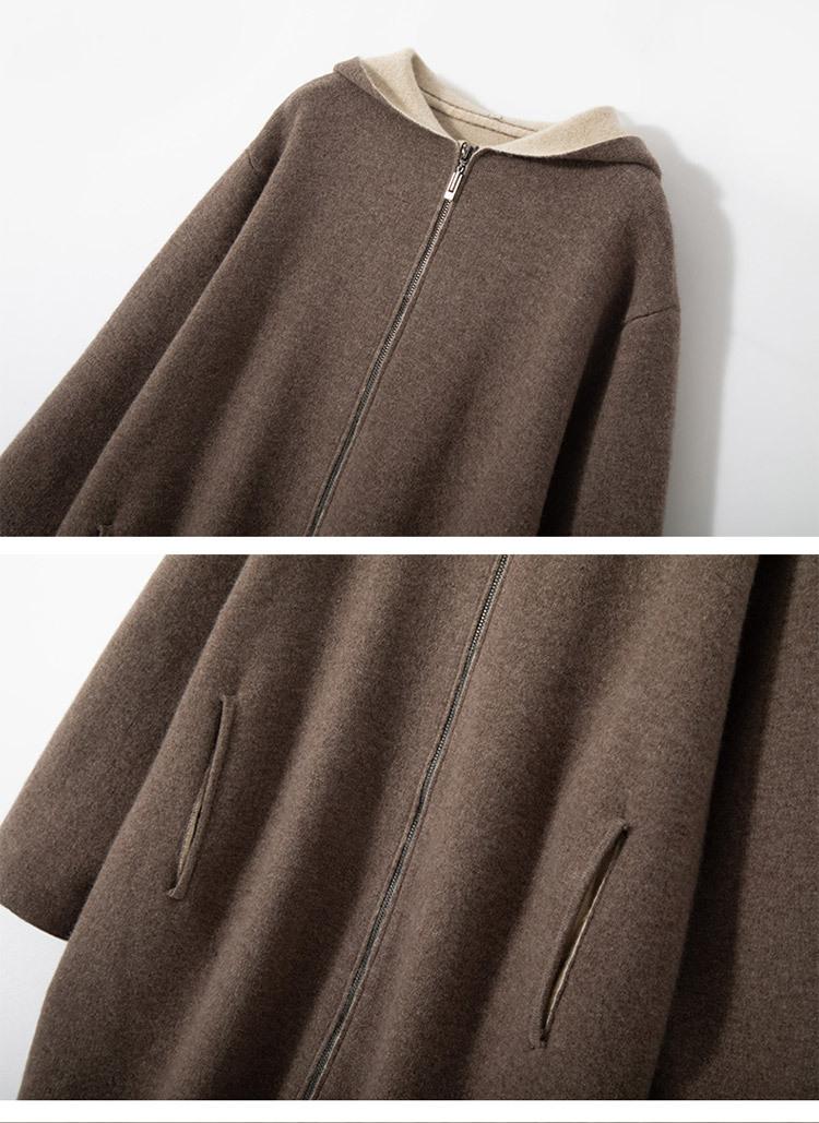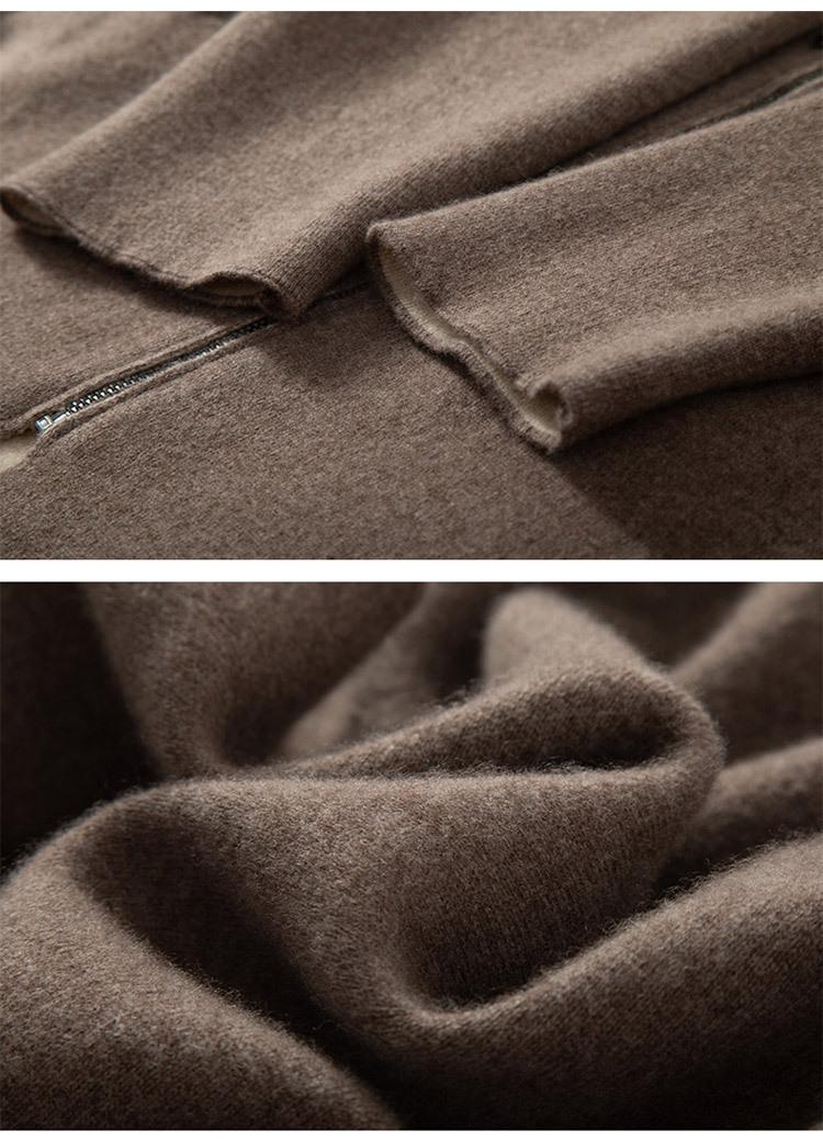 Cárdigan de punto de cachemira con cremallera de longitud media, abrigo con capucha, otoño e invierno, nuevo abrigo holgado de manga larga y grueso para mujer con bocket.