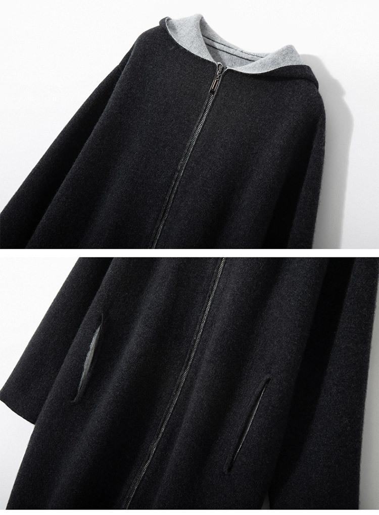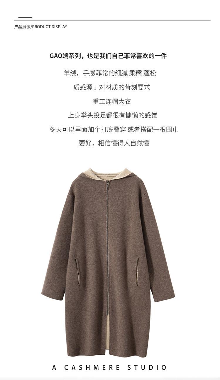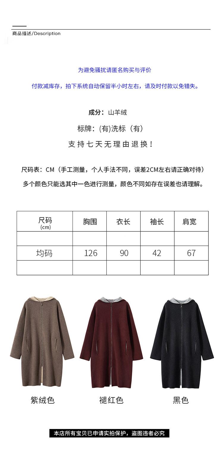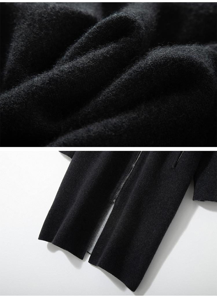 Cárdigan de punto de cachemira con cremallera de longitud media, abrigo con capucha, otoño e invierno, nuevo abrigo holgado de manga larga y grueso para mujer con bocket.