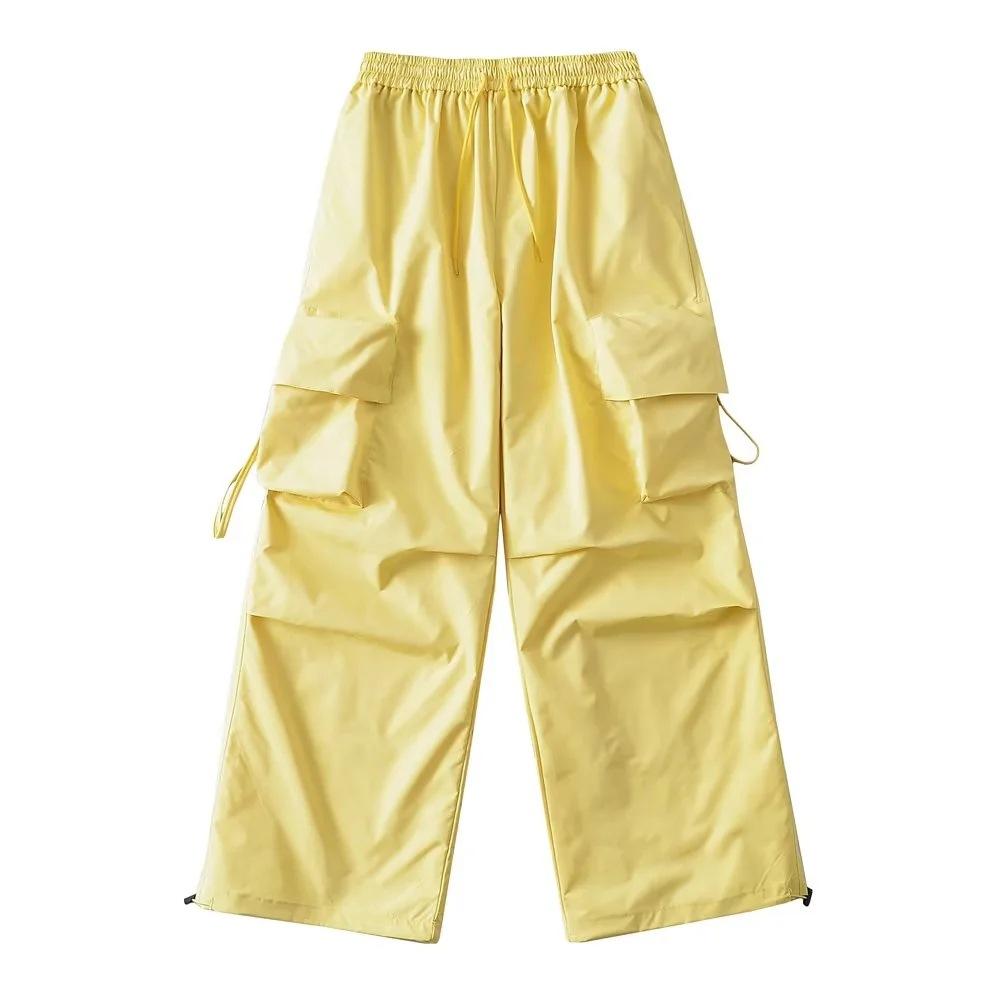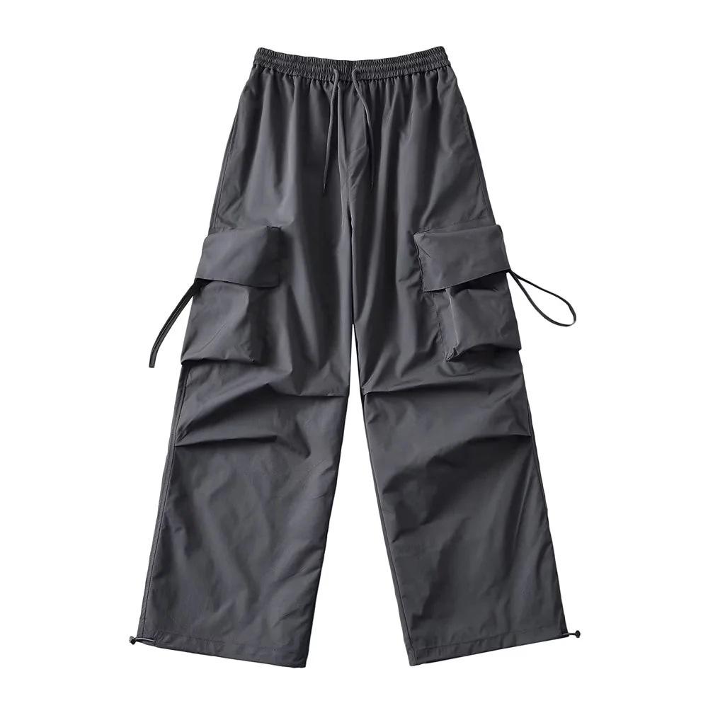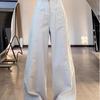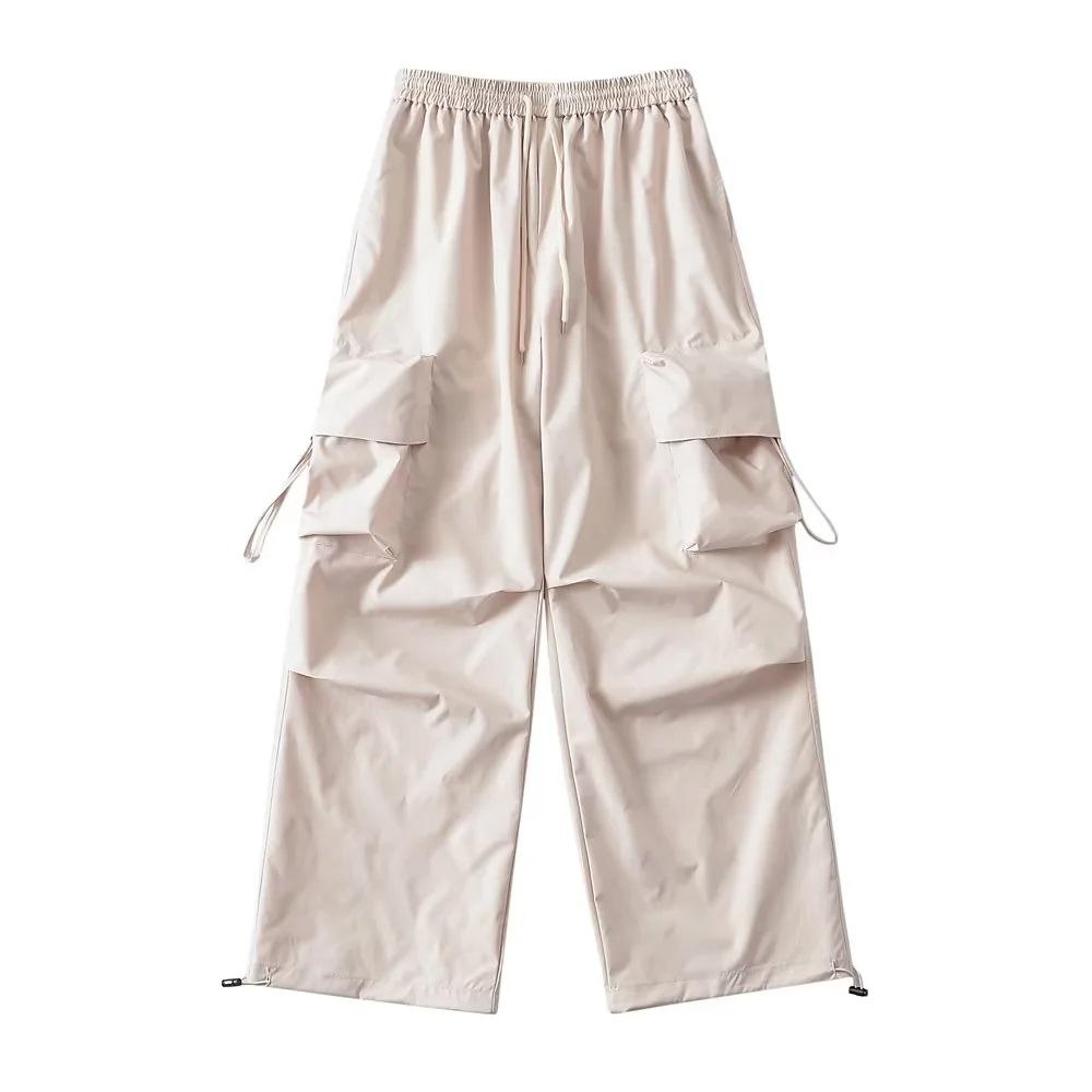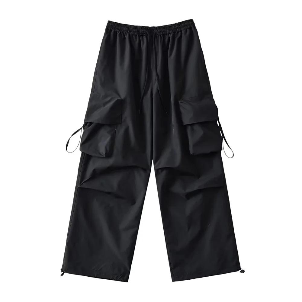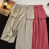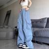 Diseño Sense - Mono de cintura alta con bolsillos grandes, estilo americano, para mujer, holgado, con cinta, pierna recta, pierna ancha, pantalones casuales de piso para mujer