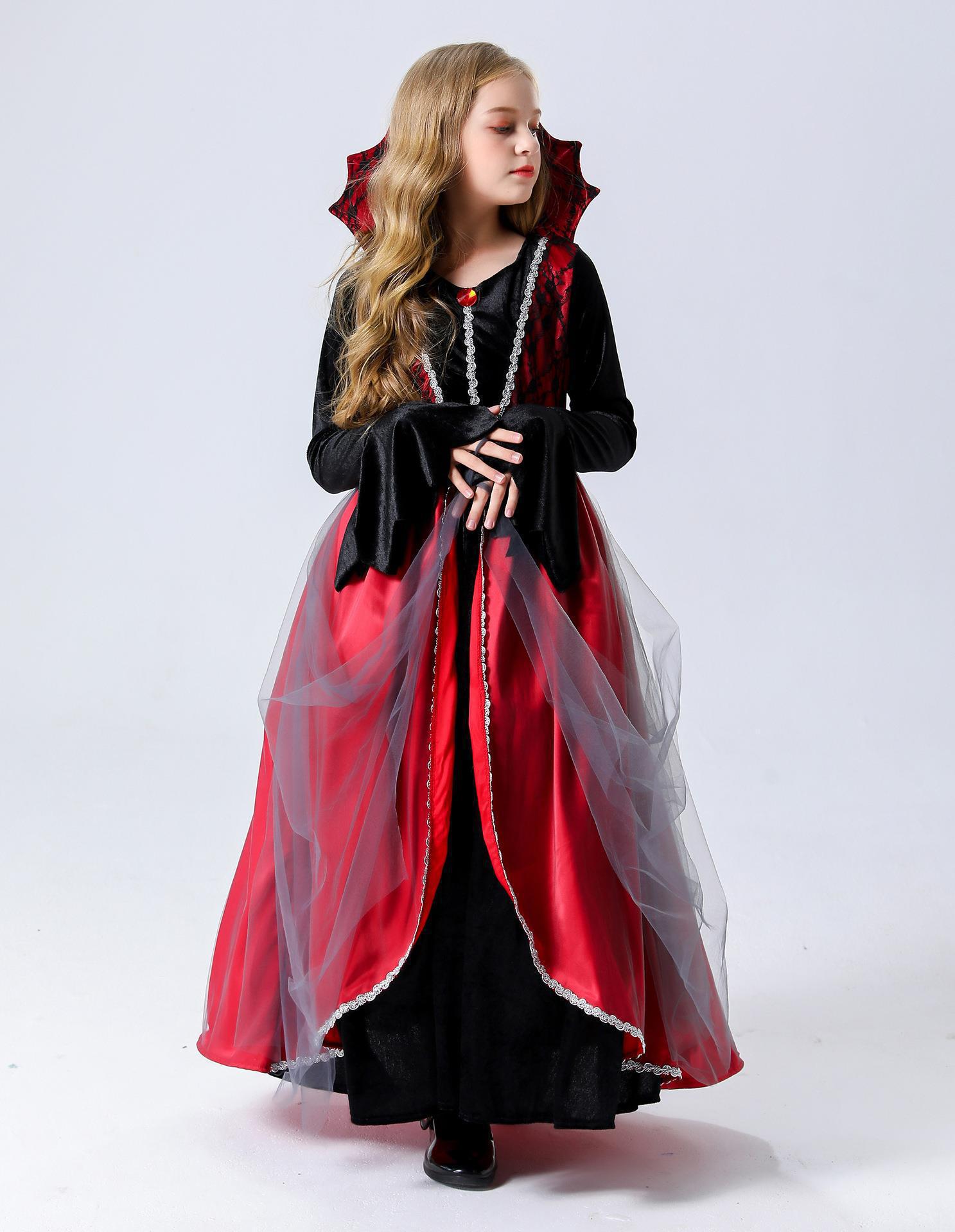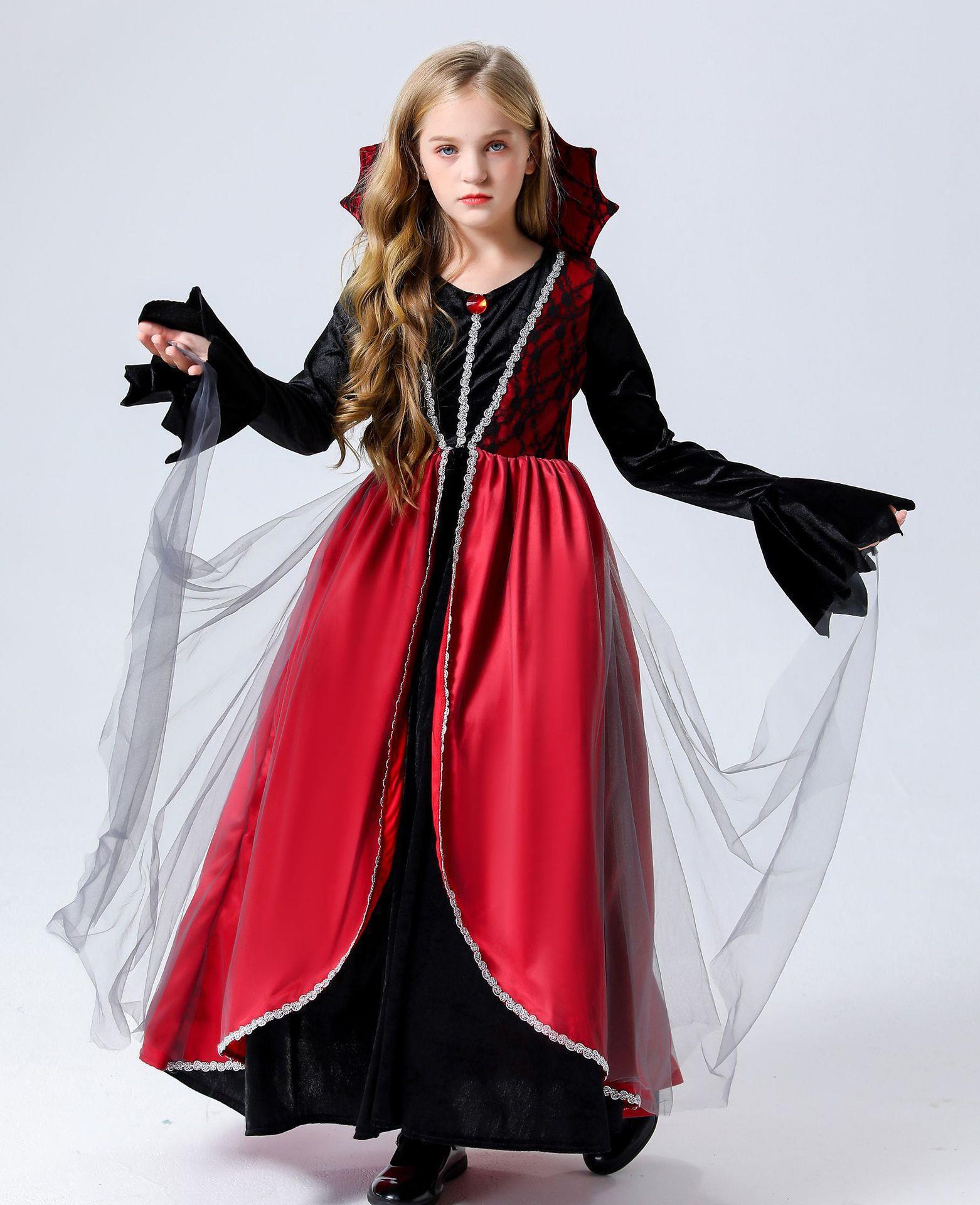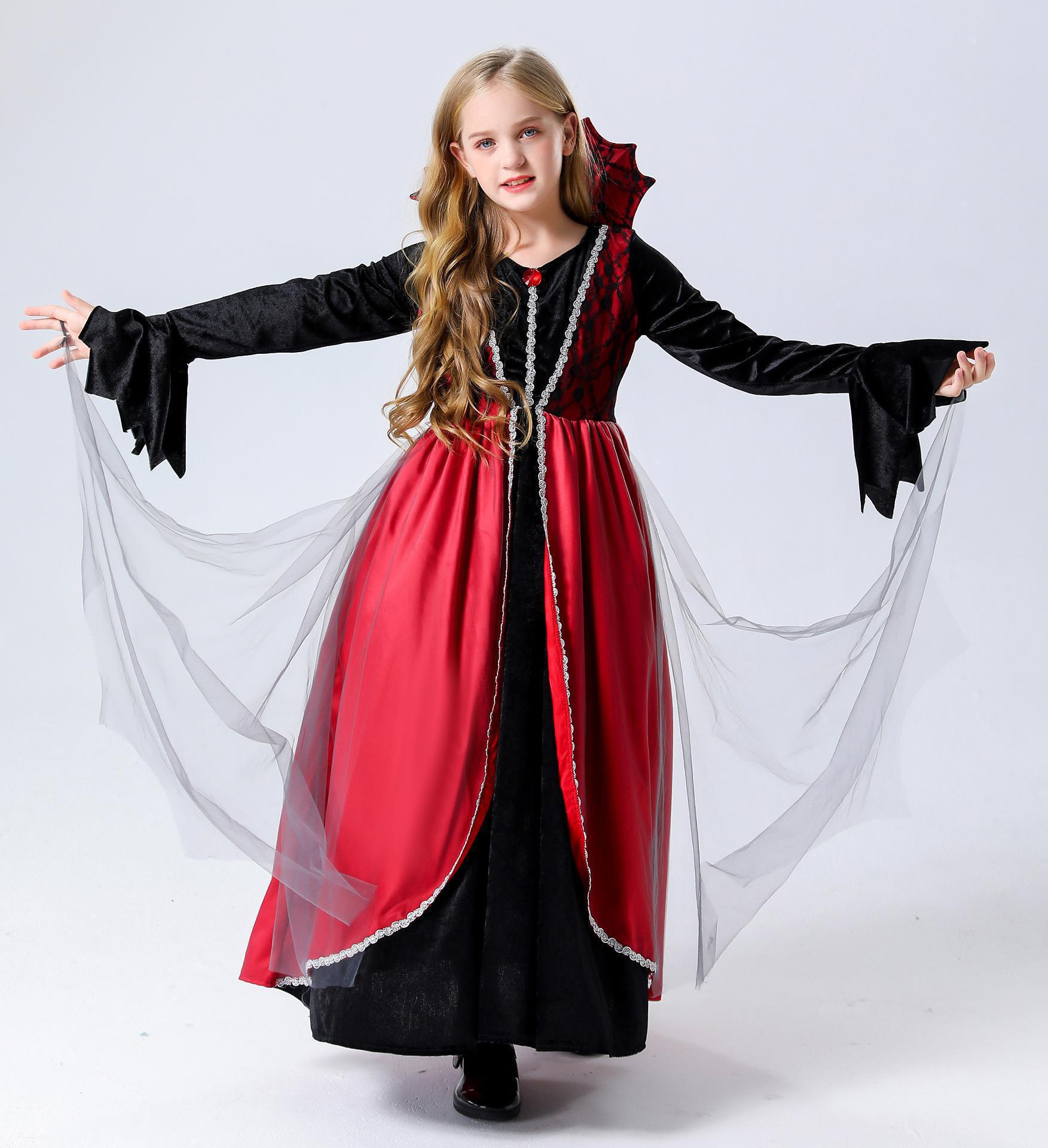 Nuevo disfraz de vampiro y mago femenino para Halloween para niños, disfraz de mago de la corte, disfraz de actuación teatral
