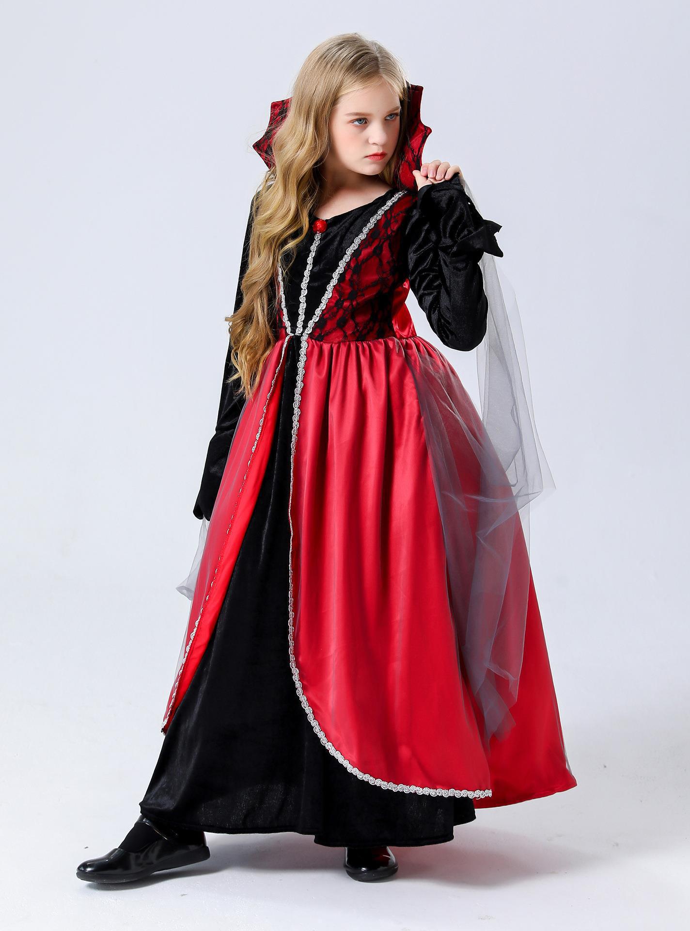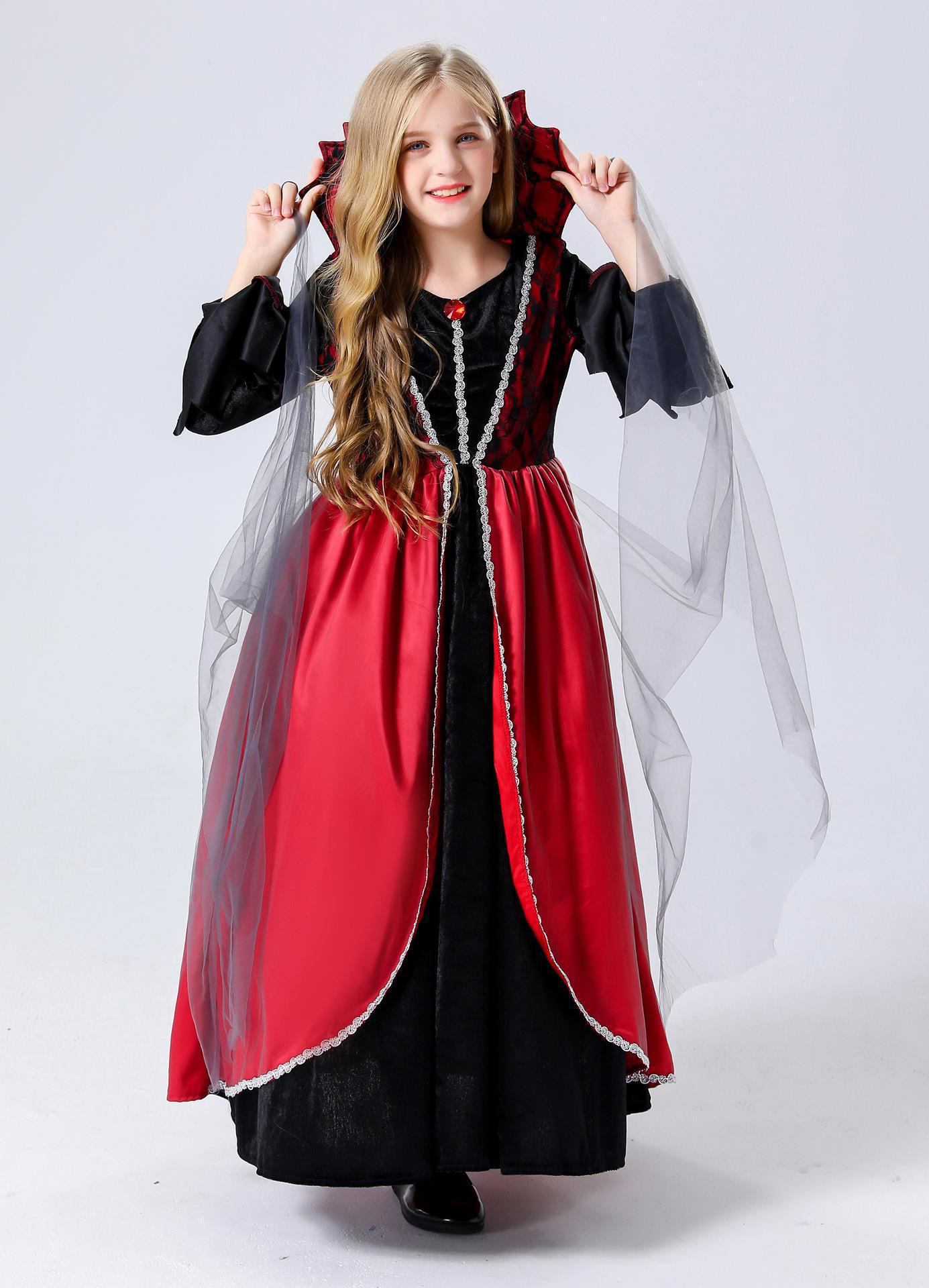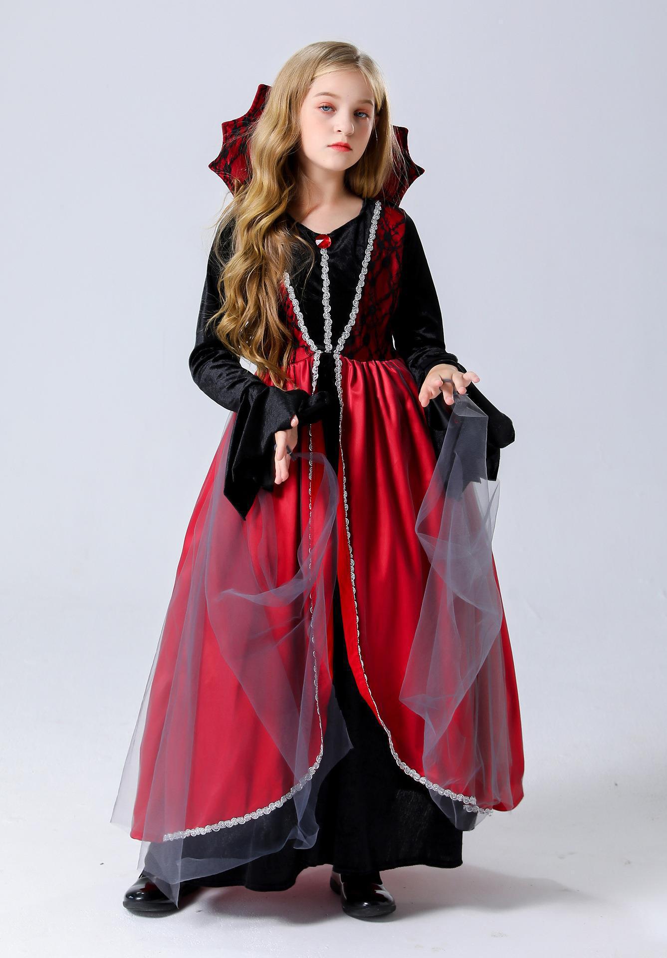 Nuevo disfraz de vampiro y mago femenino para Halloween para niños, disfraz de mago de la corte, disfraz de actuación teatral