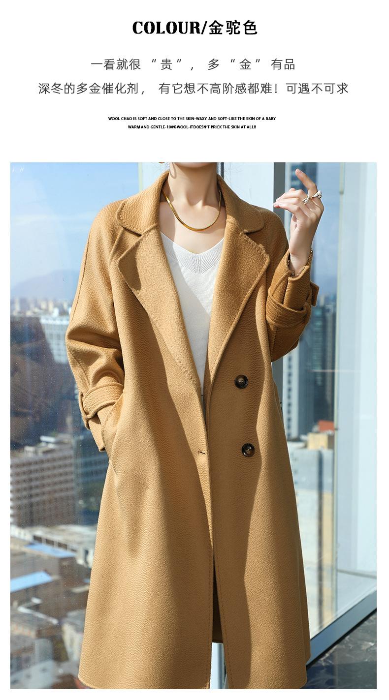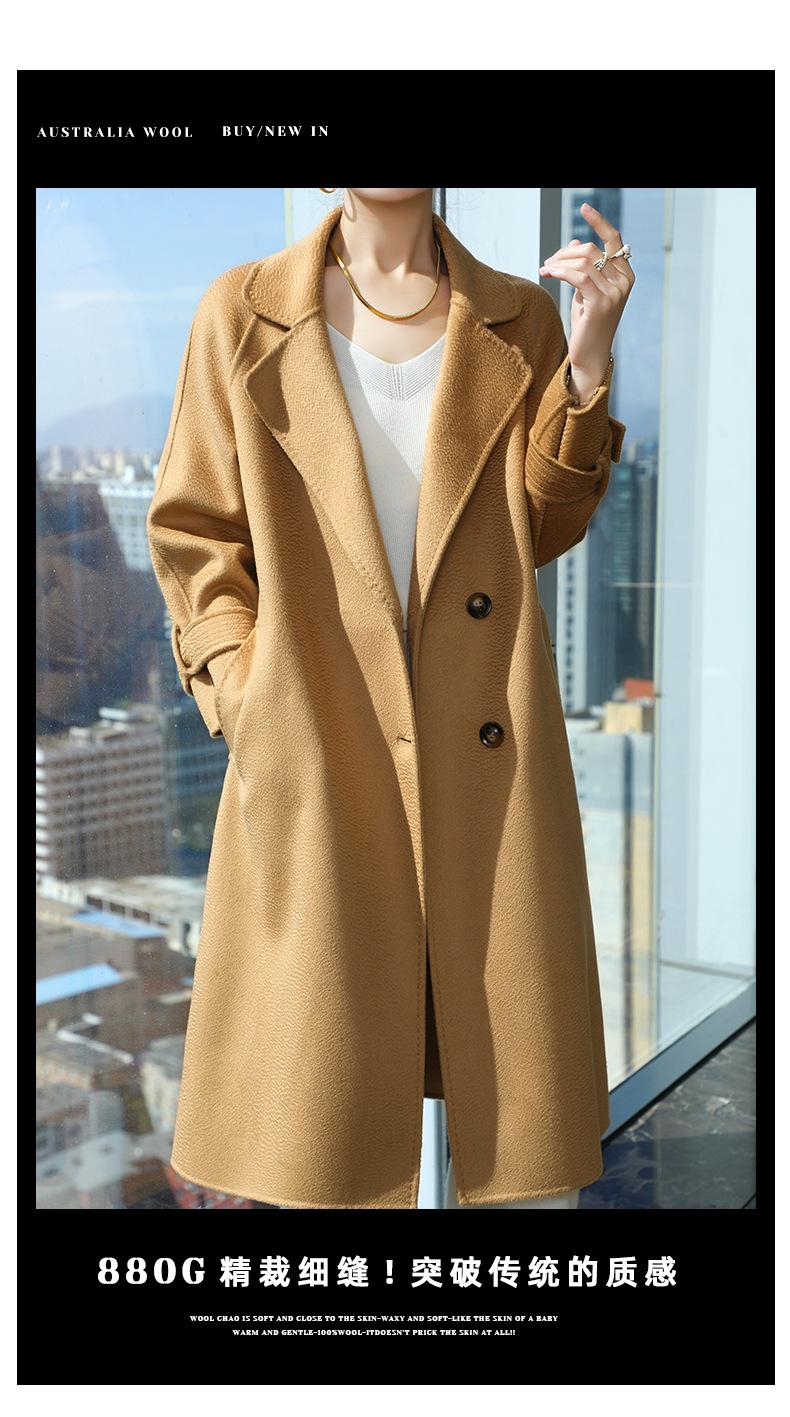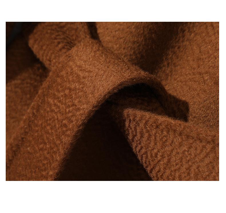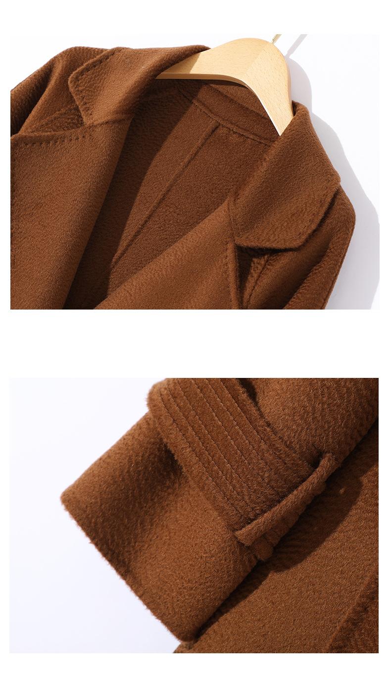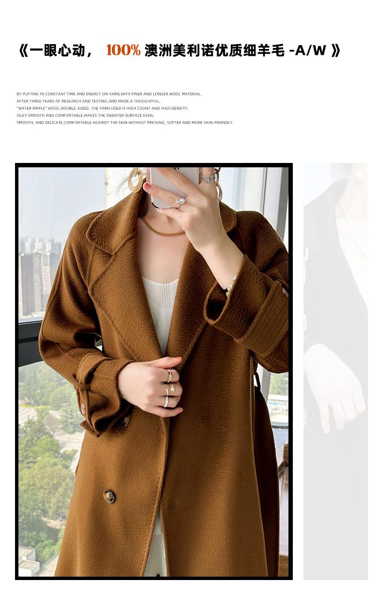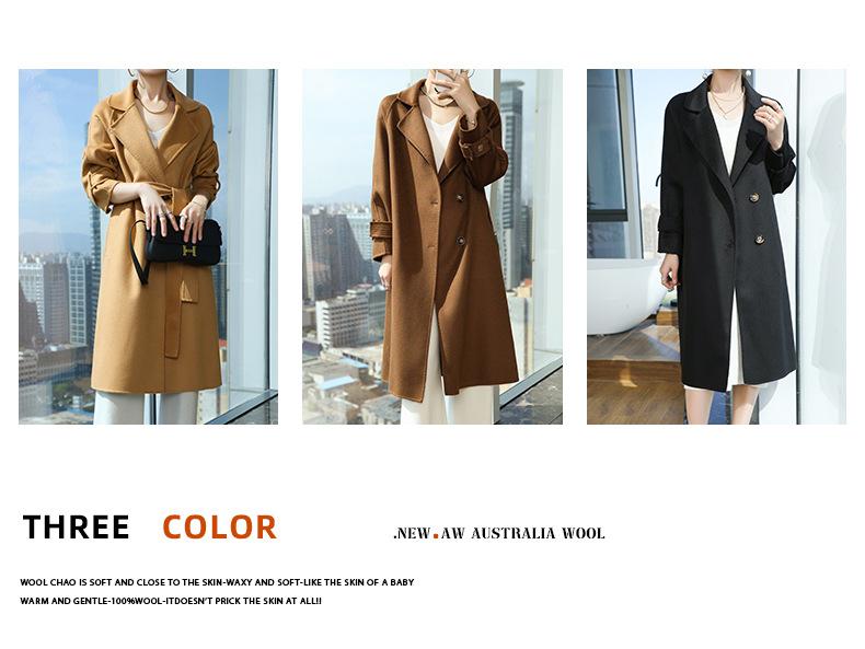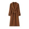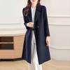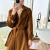 Abrigo de mujer de color sólido de lana pura con cordones de longitud media con cuello de traje de estilo coreano de otoño e invierno de 2023