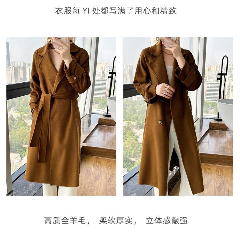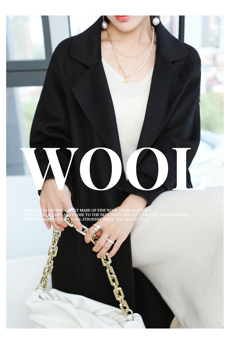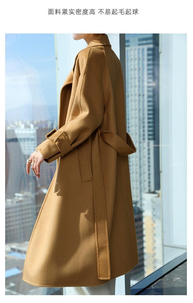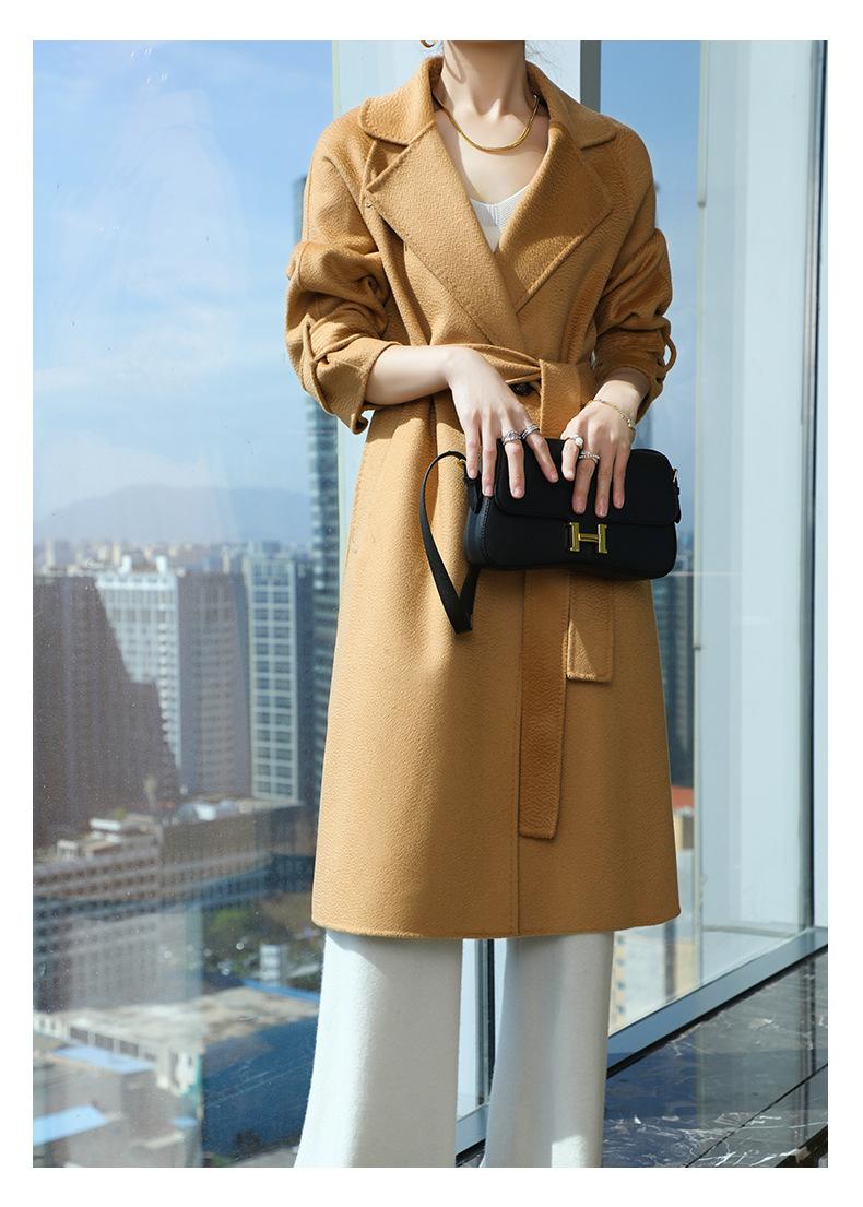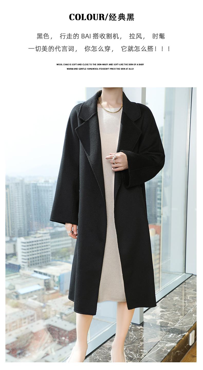 Abrigo de mujer de color sólido de lana pura con cordones de longitud media con cuello de traje de estilo coreano de otoño e invierno de 2023