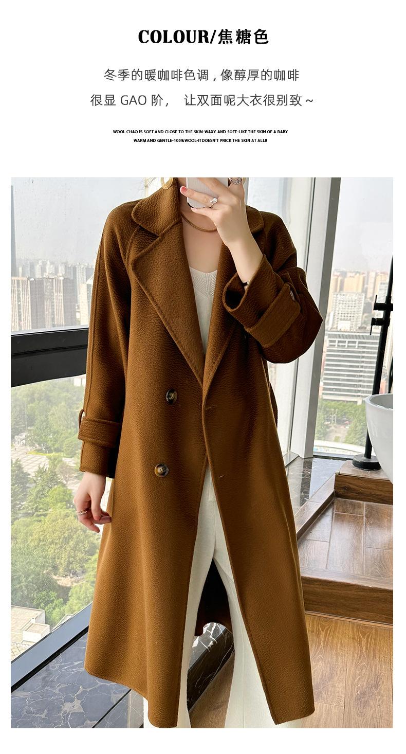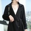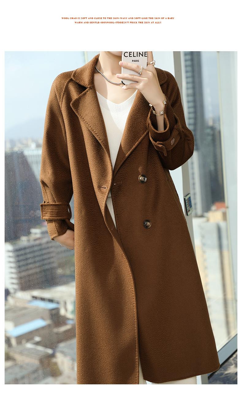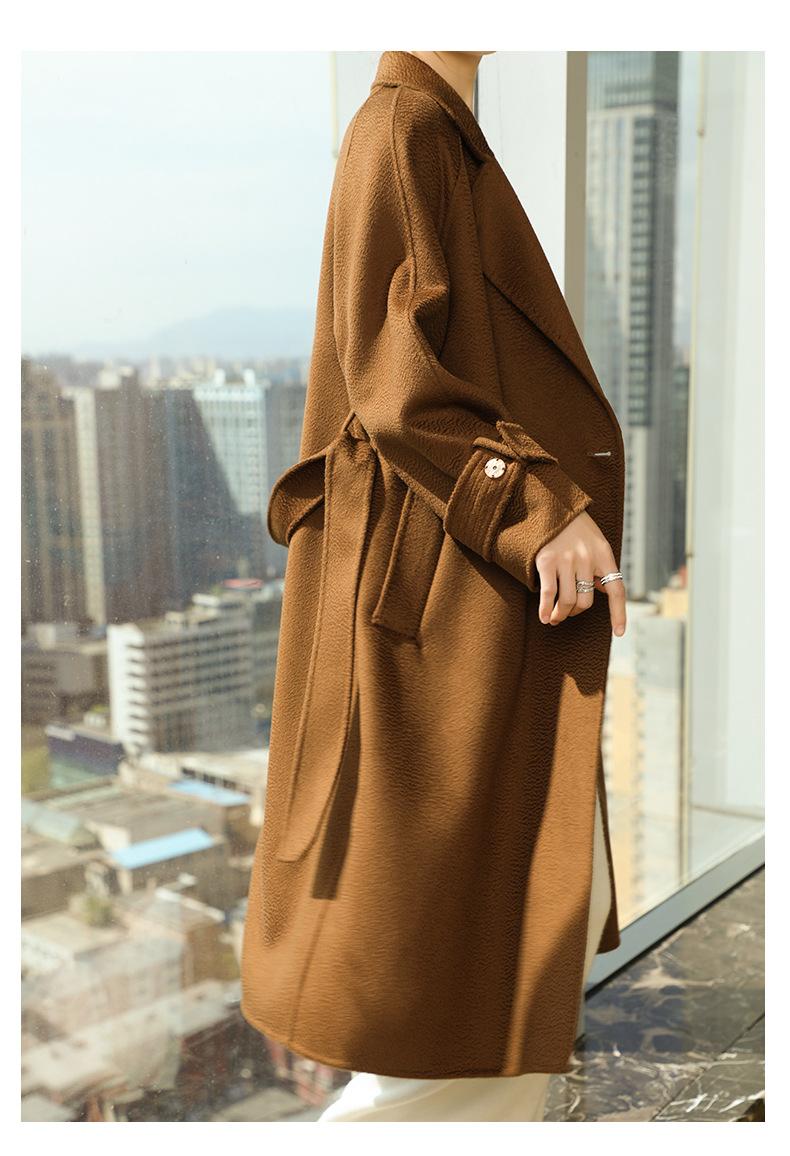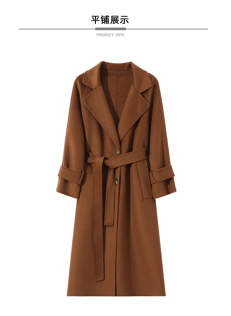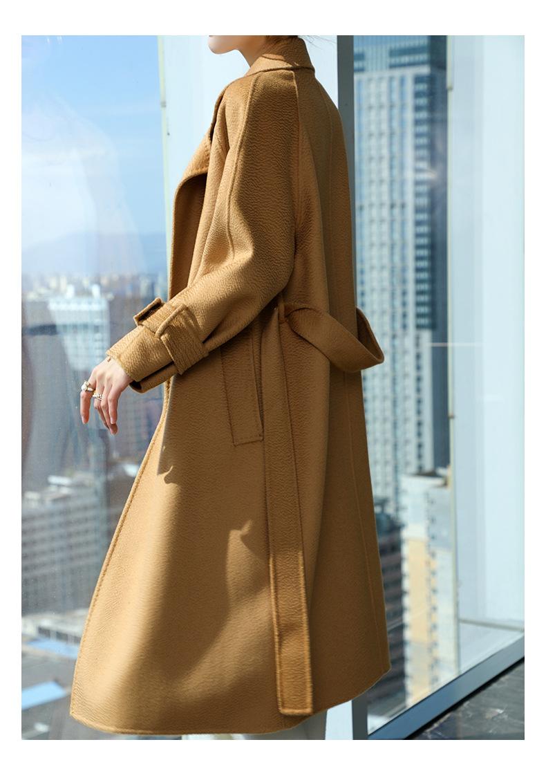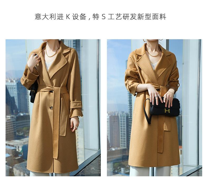 Abrigo de mujer de color sólido de lana pura con cordones de longitud media con cuello de traje de estilo coreano de otoño e invierno de 2023