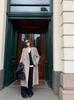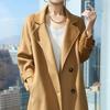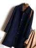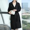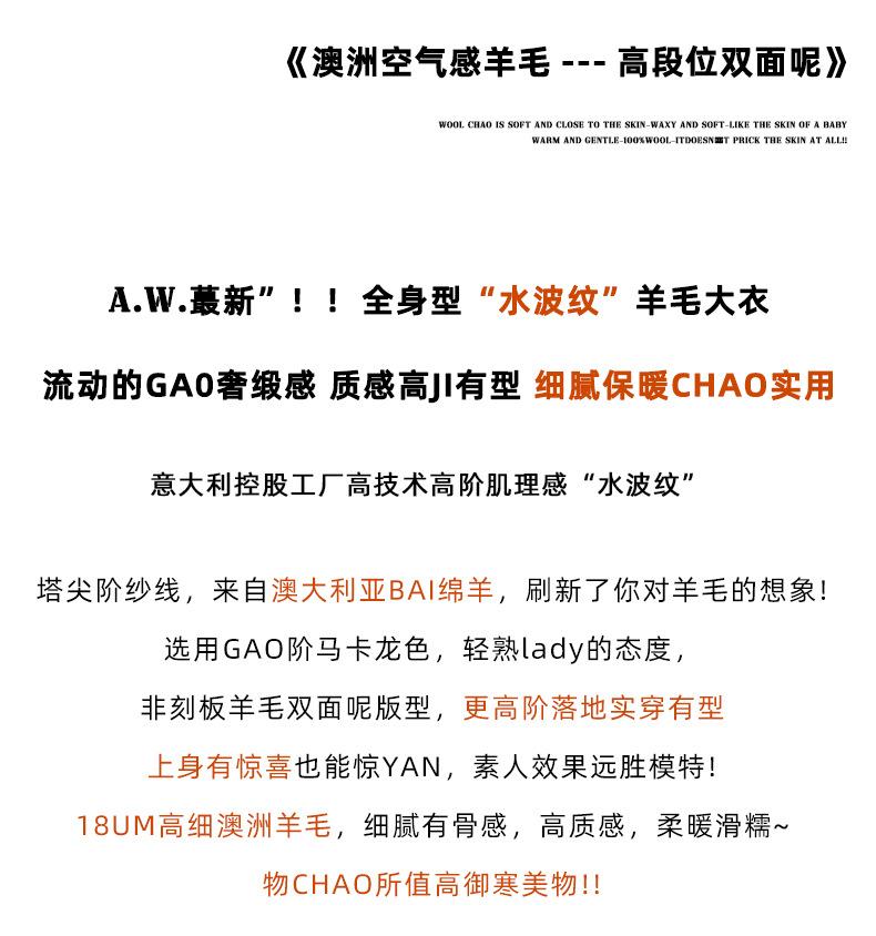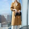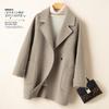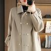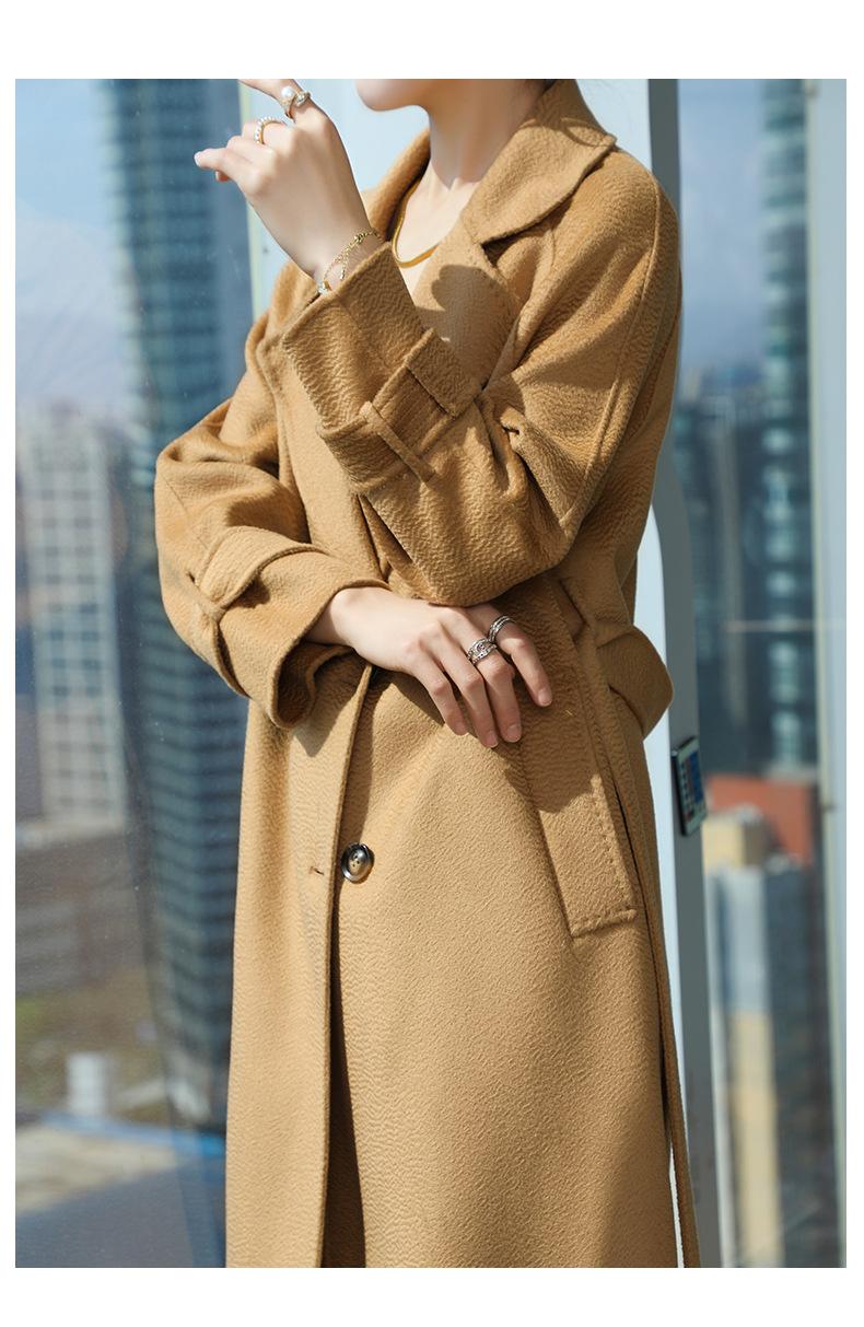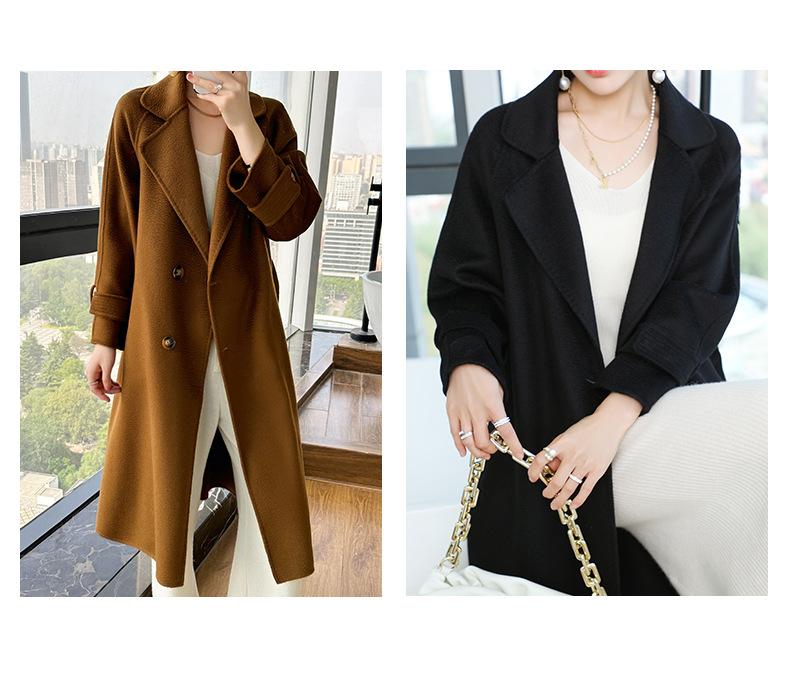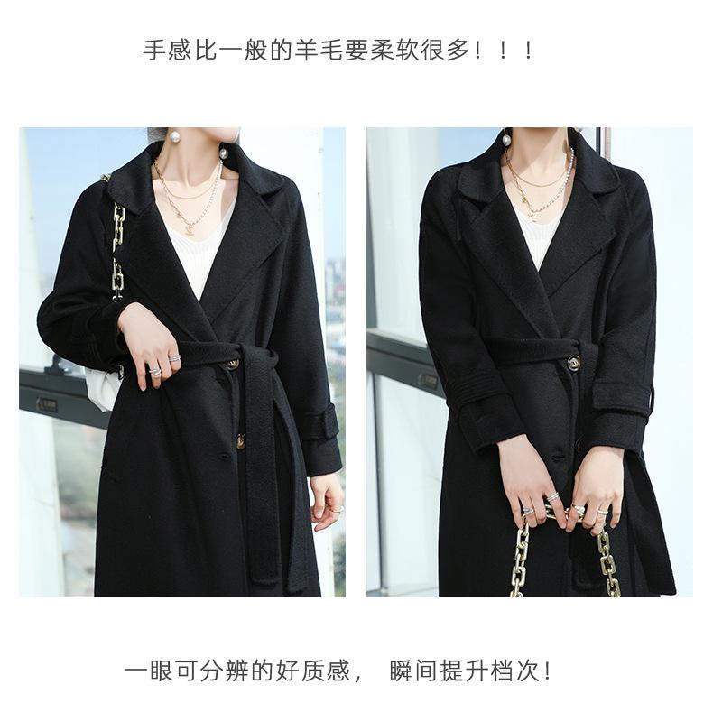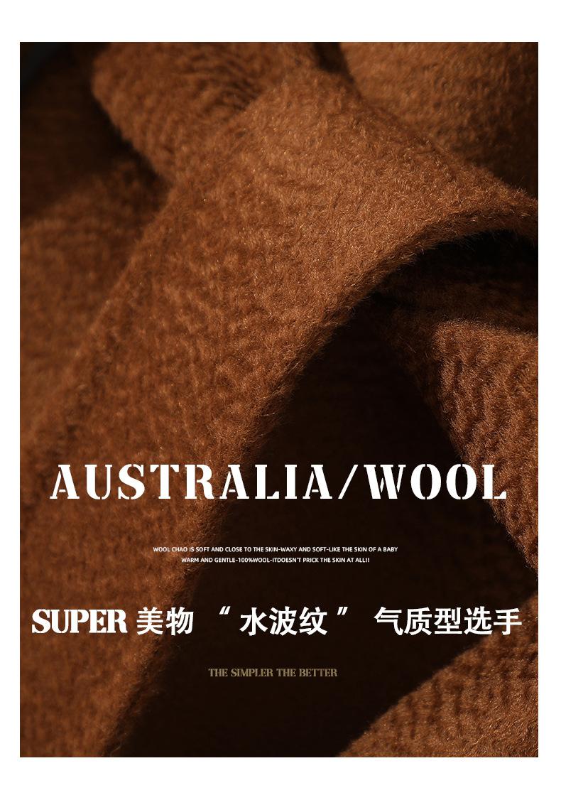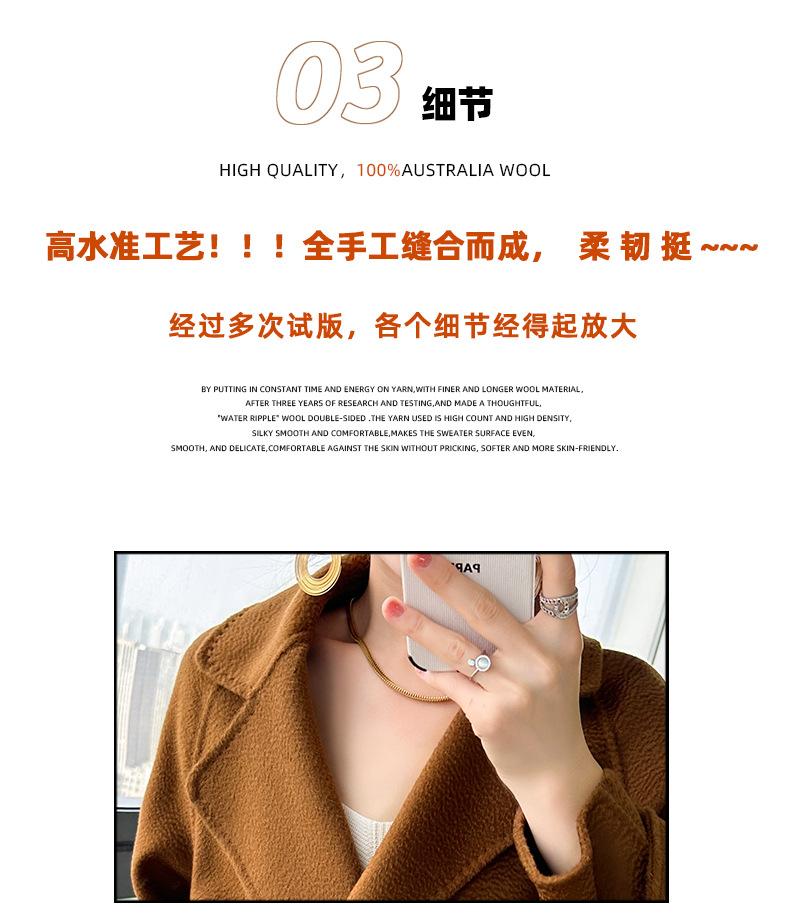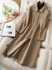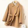 Abrigo de mujer de color sólido de lana pura con cordones de longitud media con cuello de traje de estilo coreano de otoño e invierno de 2023