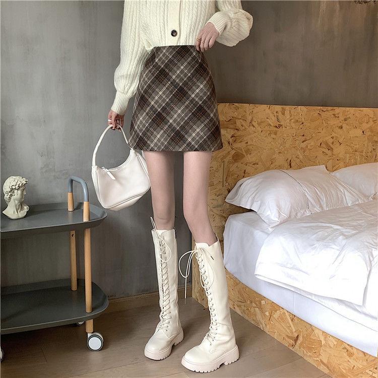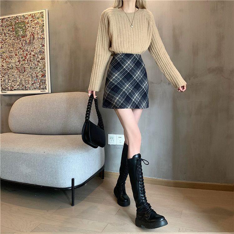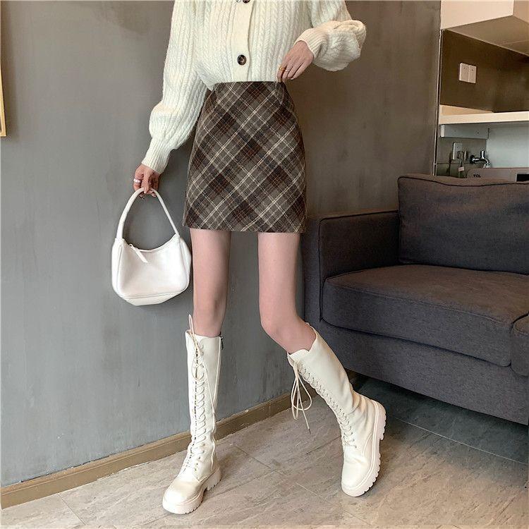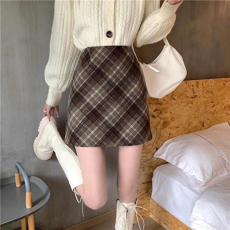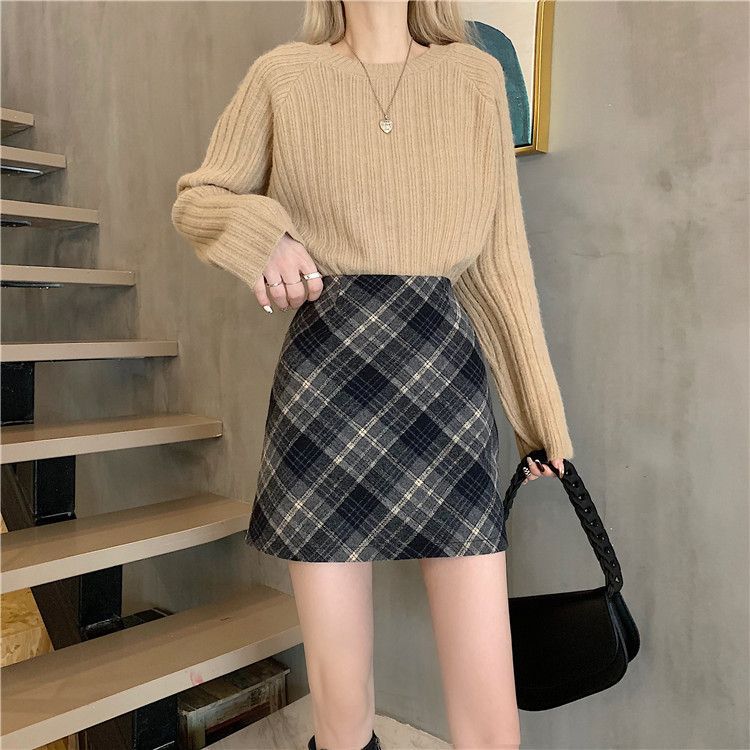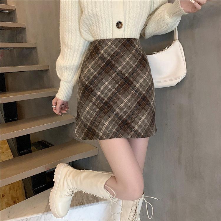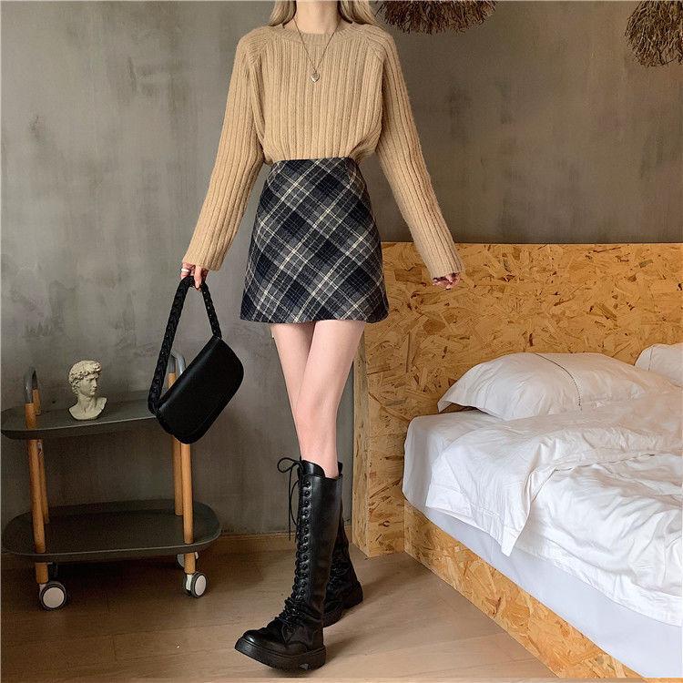 Falda adelgazante a cuadros de color contrastante para mujer Primavera 2024 Nuevo estilo coreano retro cintura alta tubo A línea falda corta ins