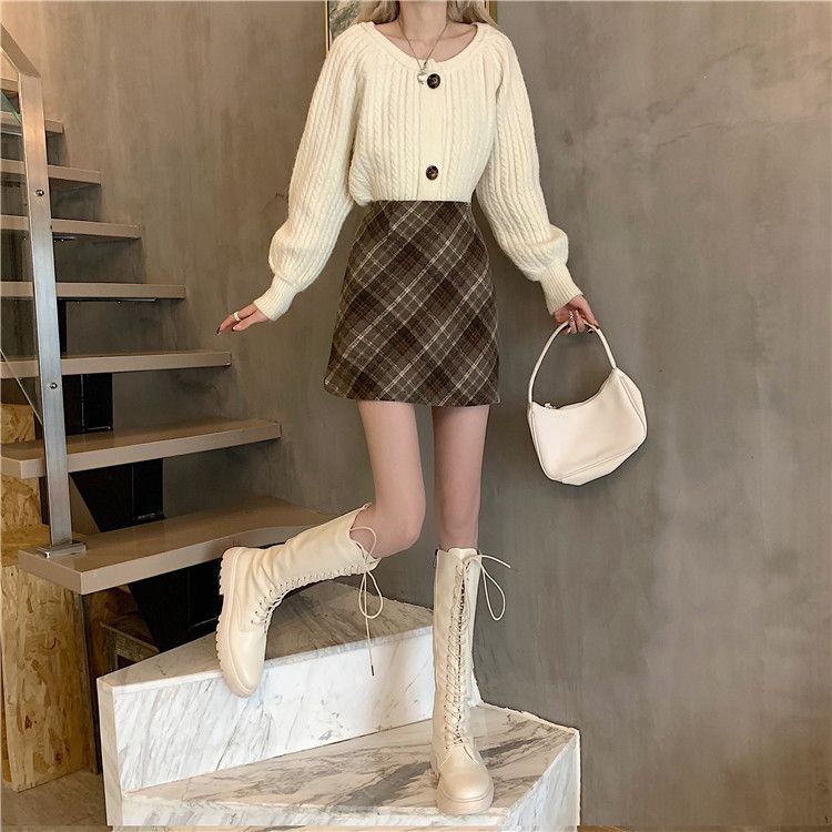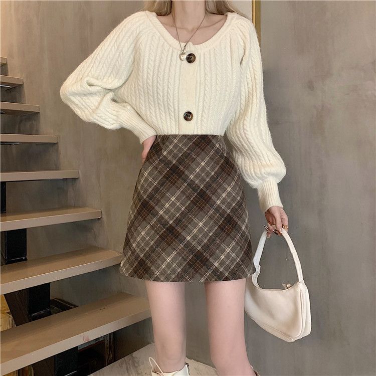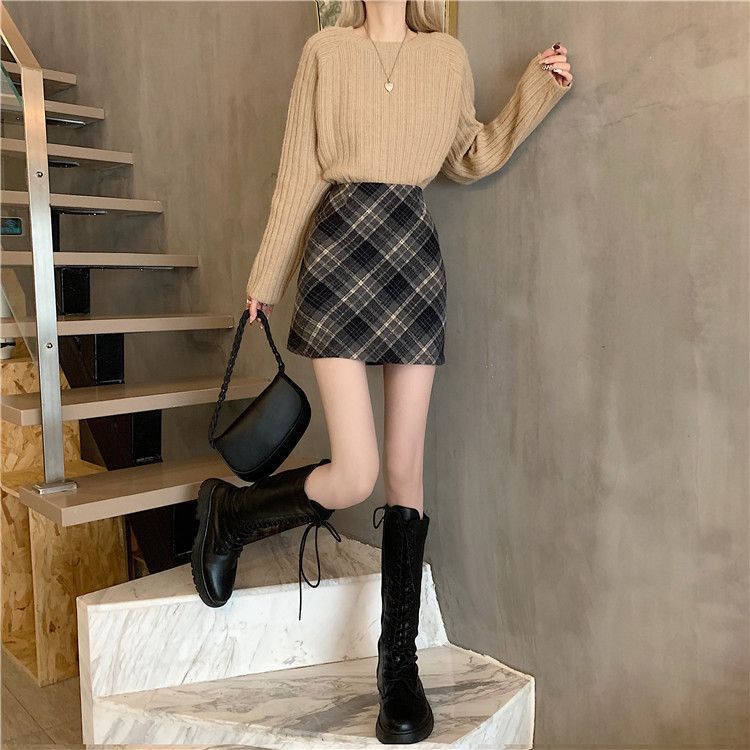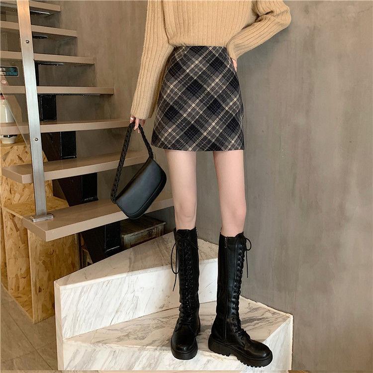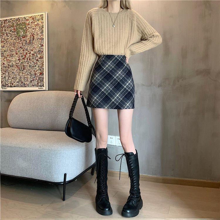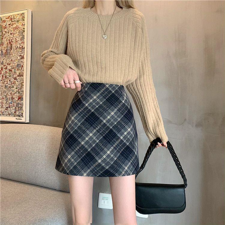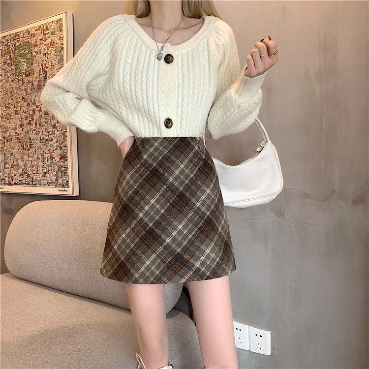 Falda adelgazante a cuadros de color contrastante para mujer Primavera 2024 Nuevo estilo coreano retro cintura alta tubo A línea falda corta ins