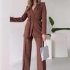 Otoño 2024 nuevo traje elegante de dos piezas con solapa y cordones en la cintura de color sólido transfronterizo de Amazon europeo y americano