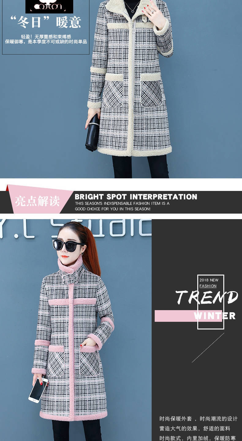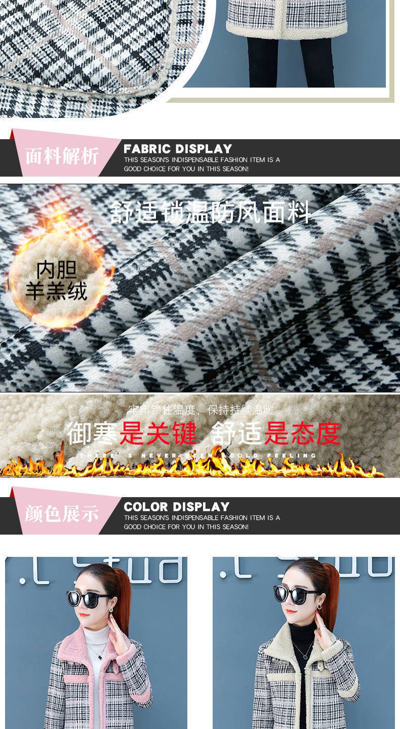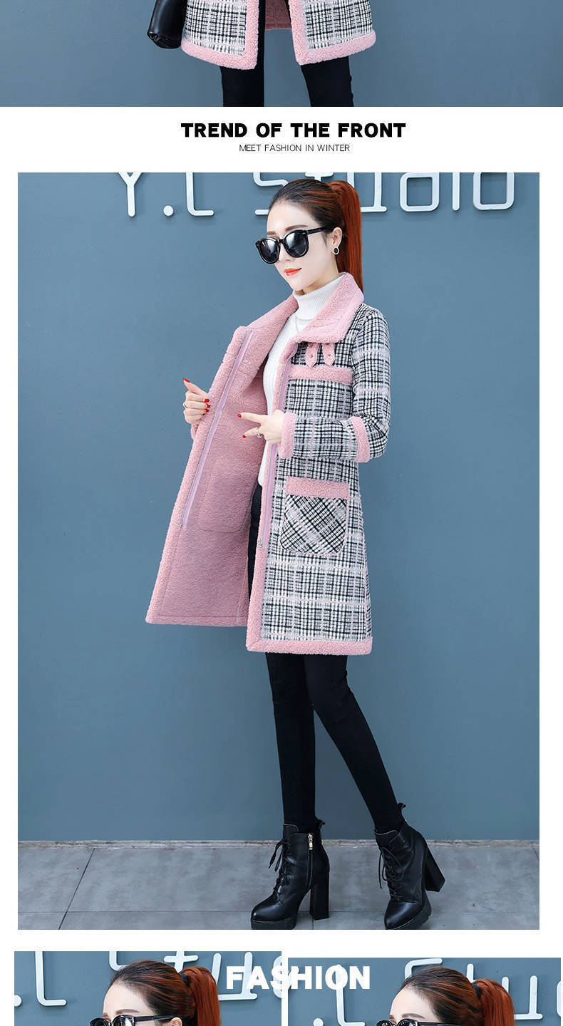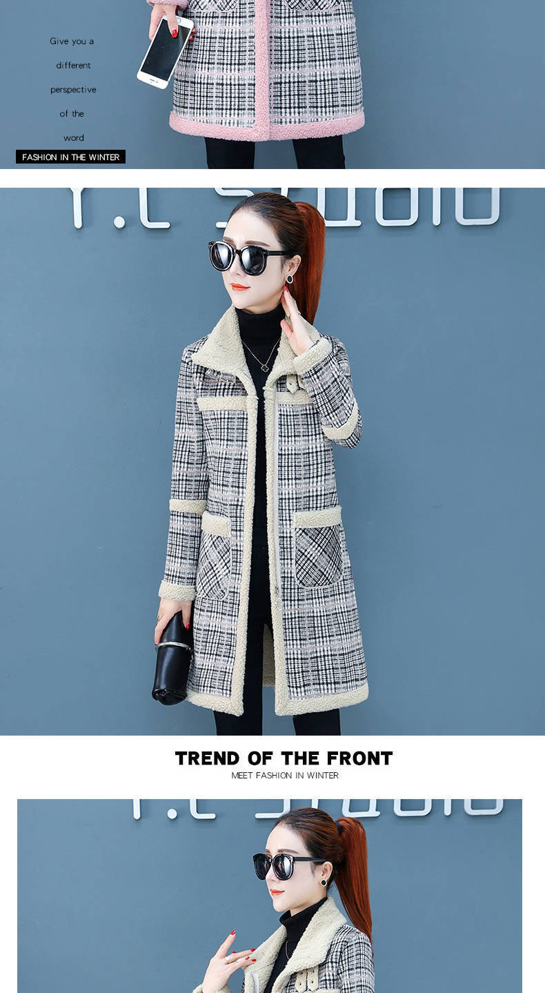 Sobretodo de Algodón Grueso de Terciopelo a Cuadros de Largo Medio para Mujer 2025 Invierno Nuevo Lana de Cordero Imitación Popular Abrigo de Lana