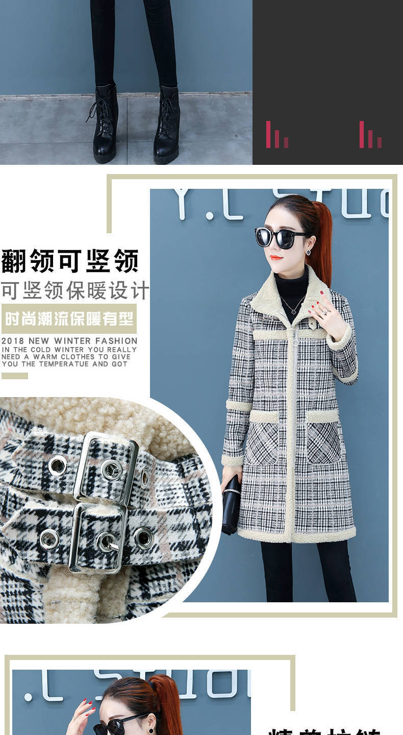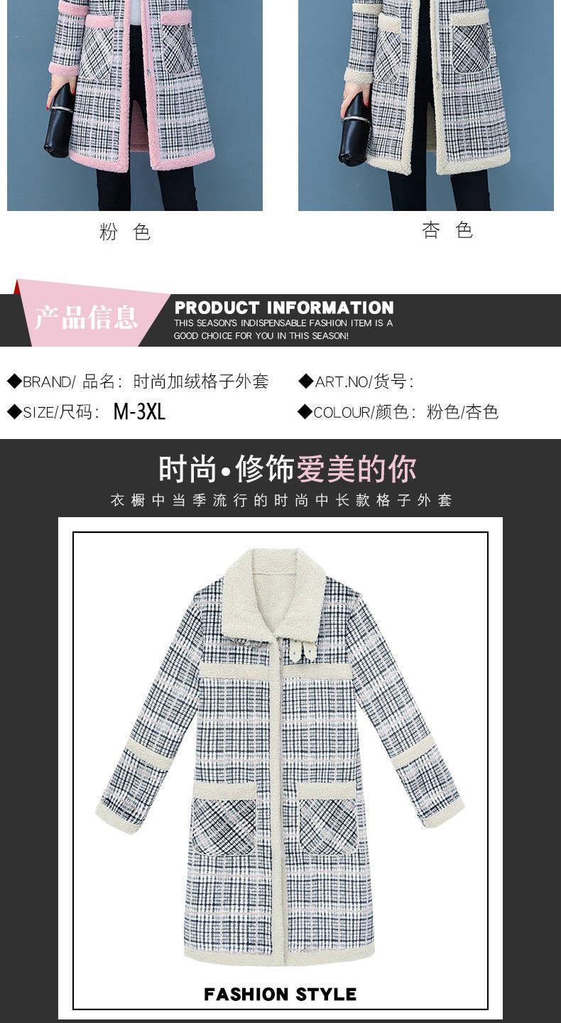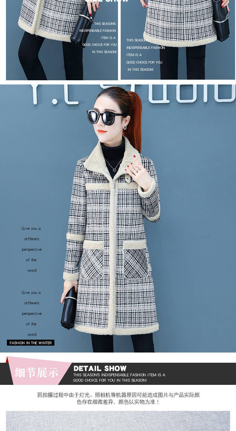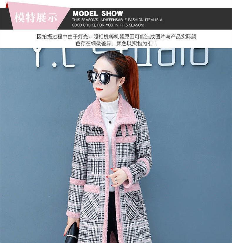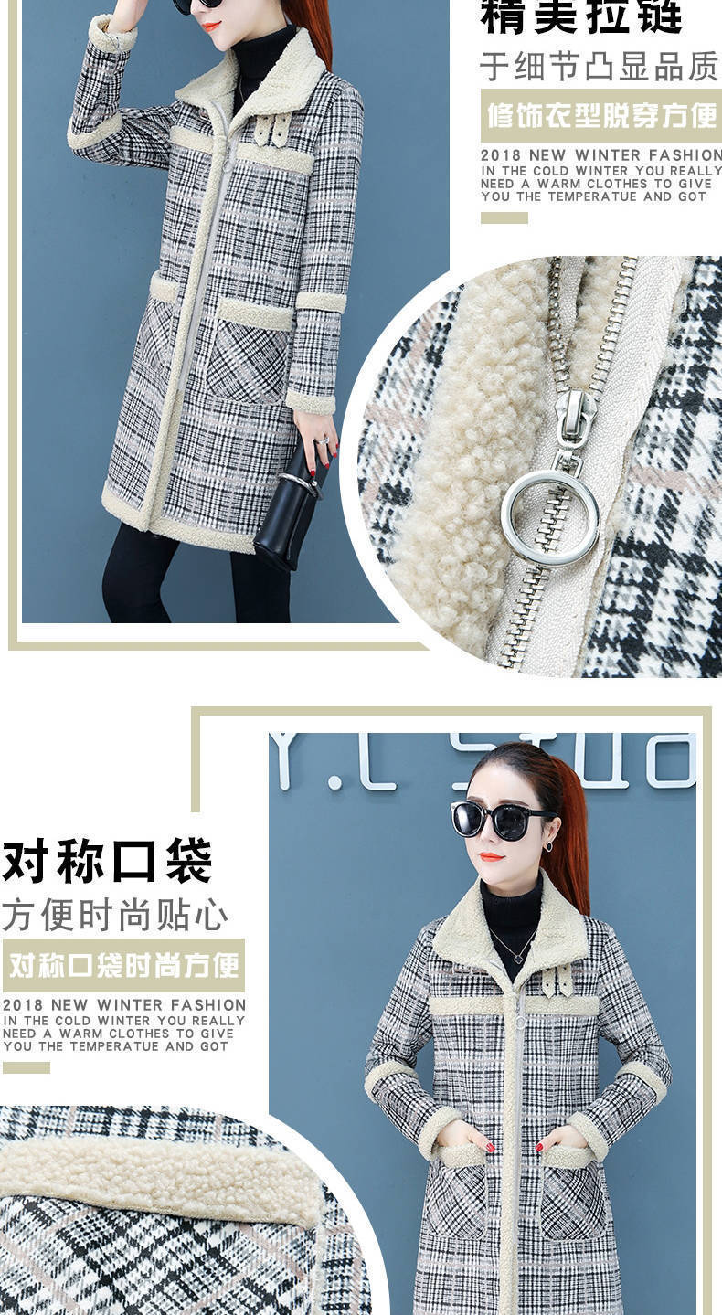 Sobretodo de Algodón Grueso de Terciopelo a Cuadros de Largo Medio para Mujer 2025 Invierno Nuevo Lana de Cordero Imitación Popular Abrigo de Lana