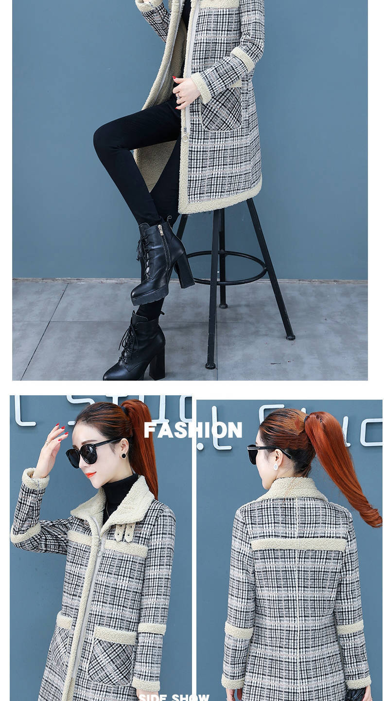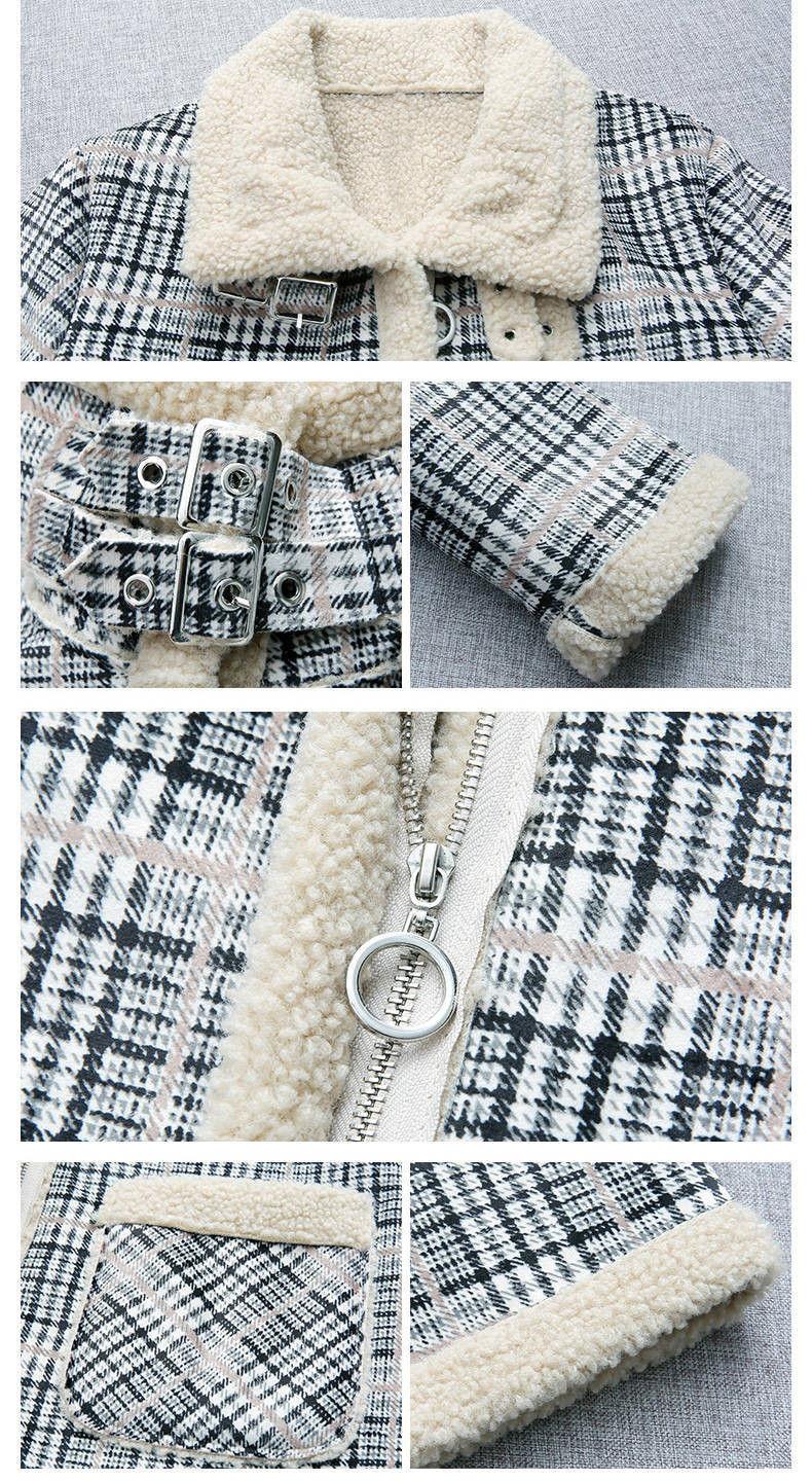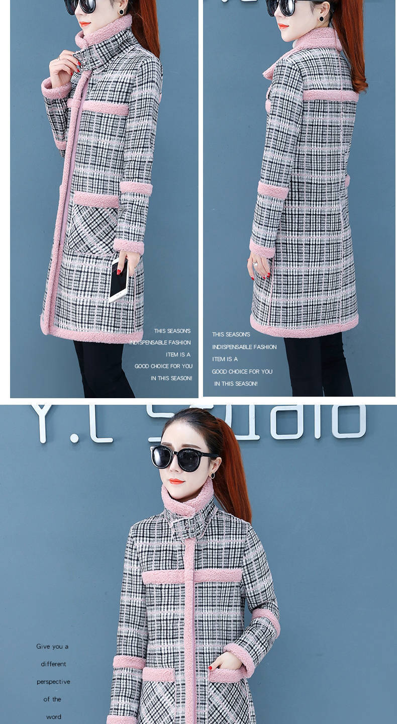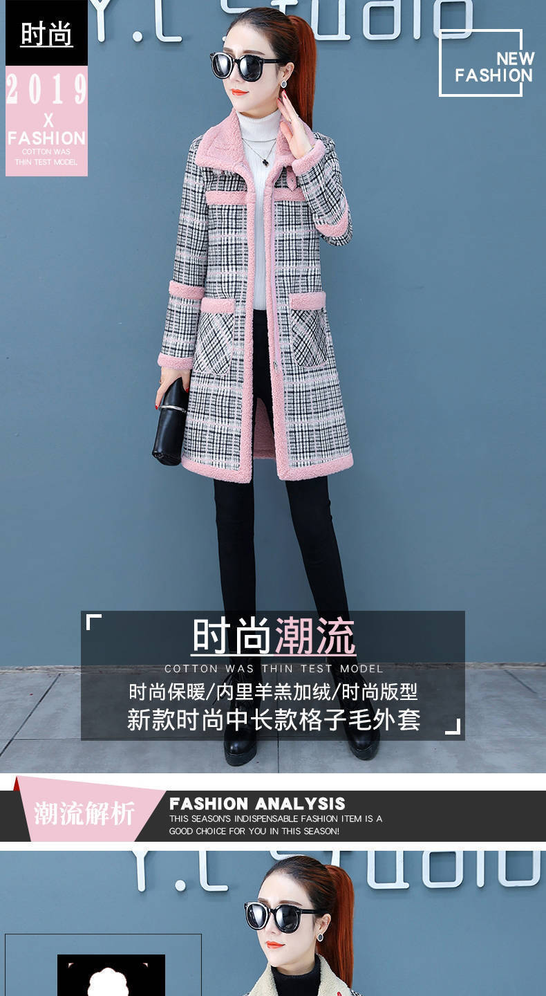 Sobretodo de Algodón Grueso de Terciopelo a Cuadros de Largo Medio para Mujer 2025 Invierno Nuevo Lana de Cordero Imitación Popular Abrigo de Lana