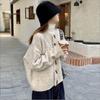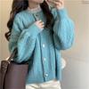 Chic Coreano Otoño Simple Estilo Perezoso Cuello en V Suelto Aguja Gruesa Manga Linterna Cárdigan Largo Suéter Tejido Chaqueta