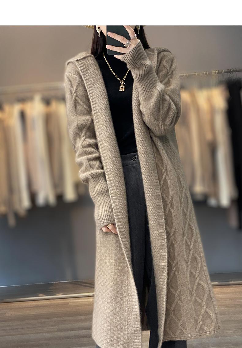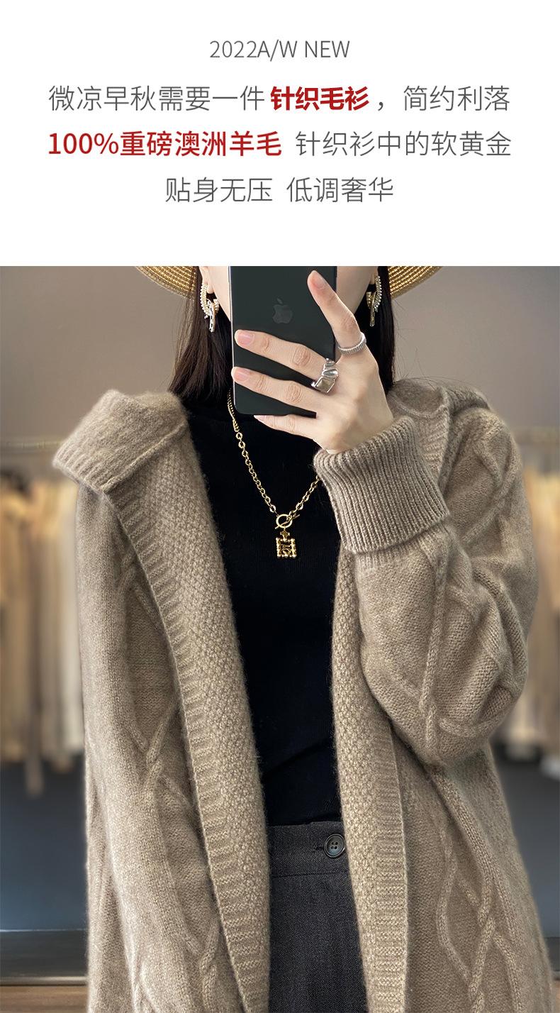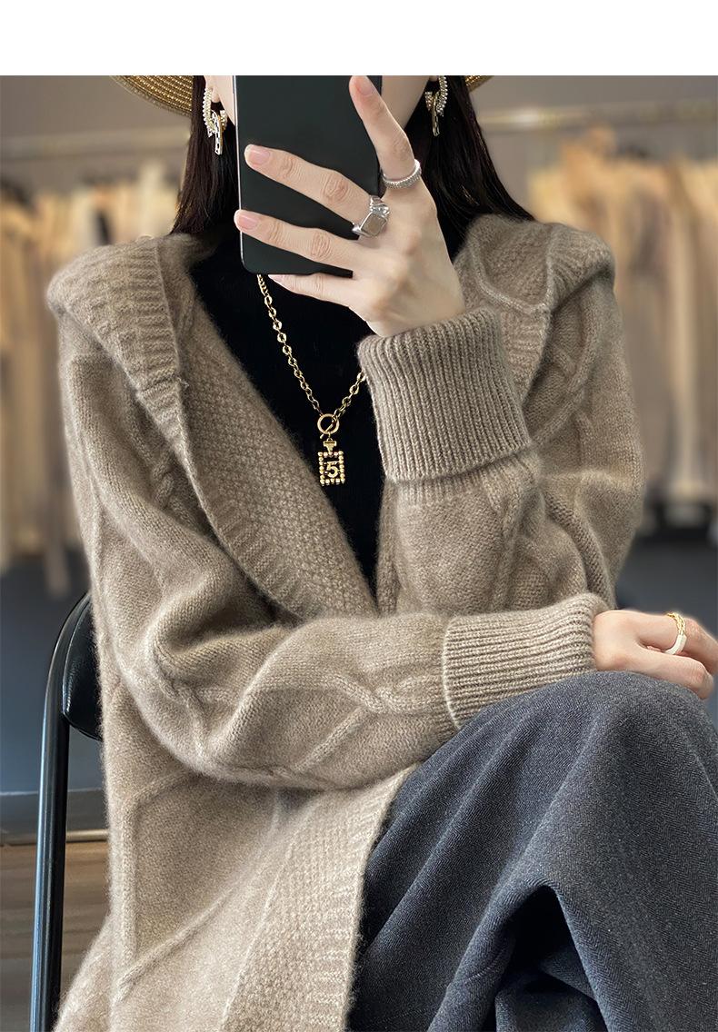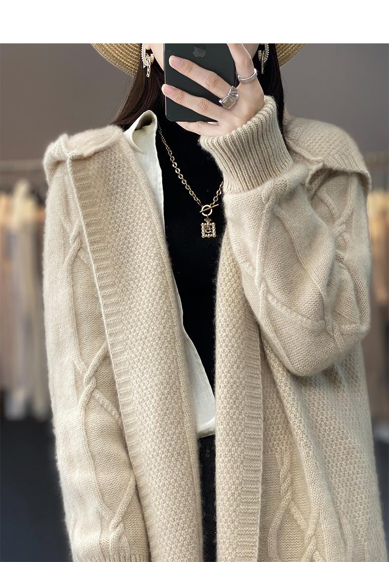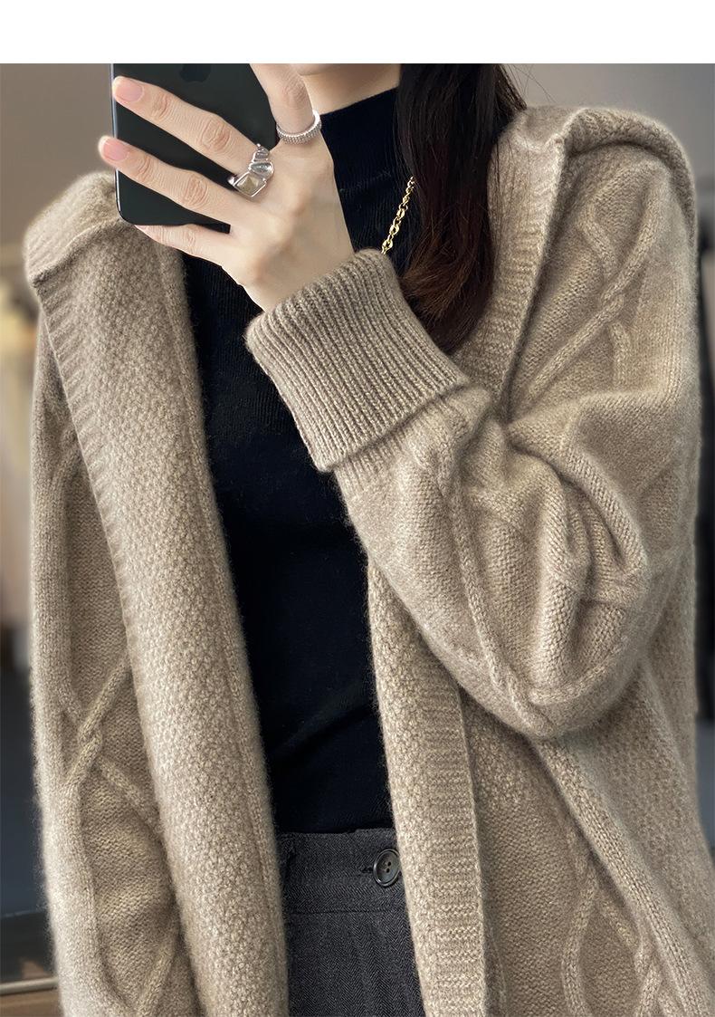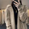 Ropa de mujer Cárdigan de lana 100% de invierno Chaqueta con capucha de longitud media para mujer Nuevo abrigo por encima de la rodilla de otoño e invierno engrosado