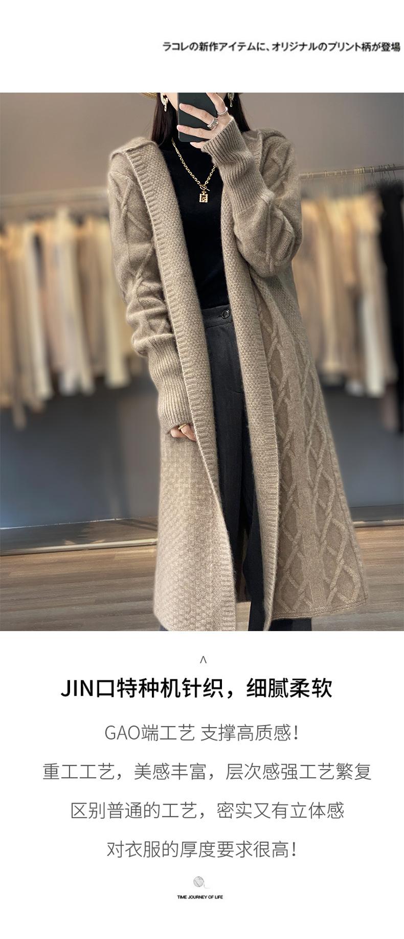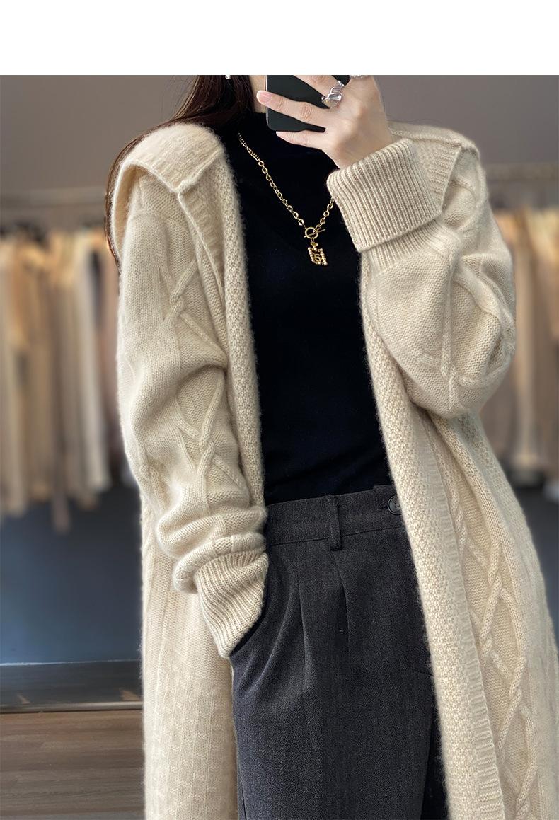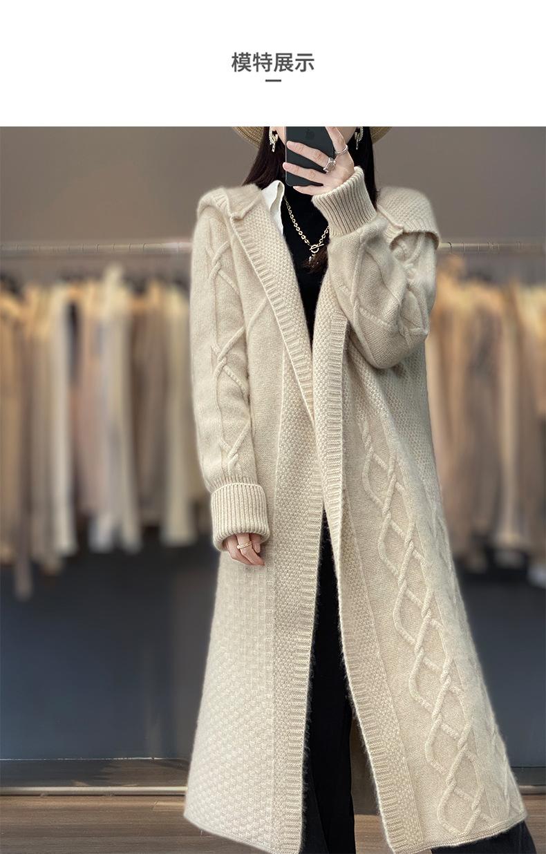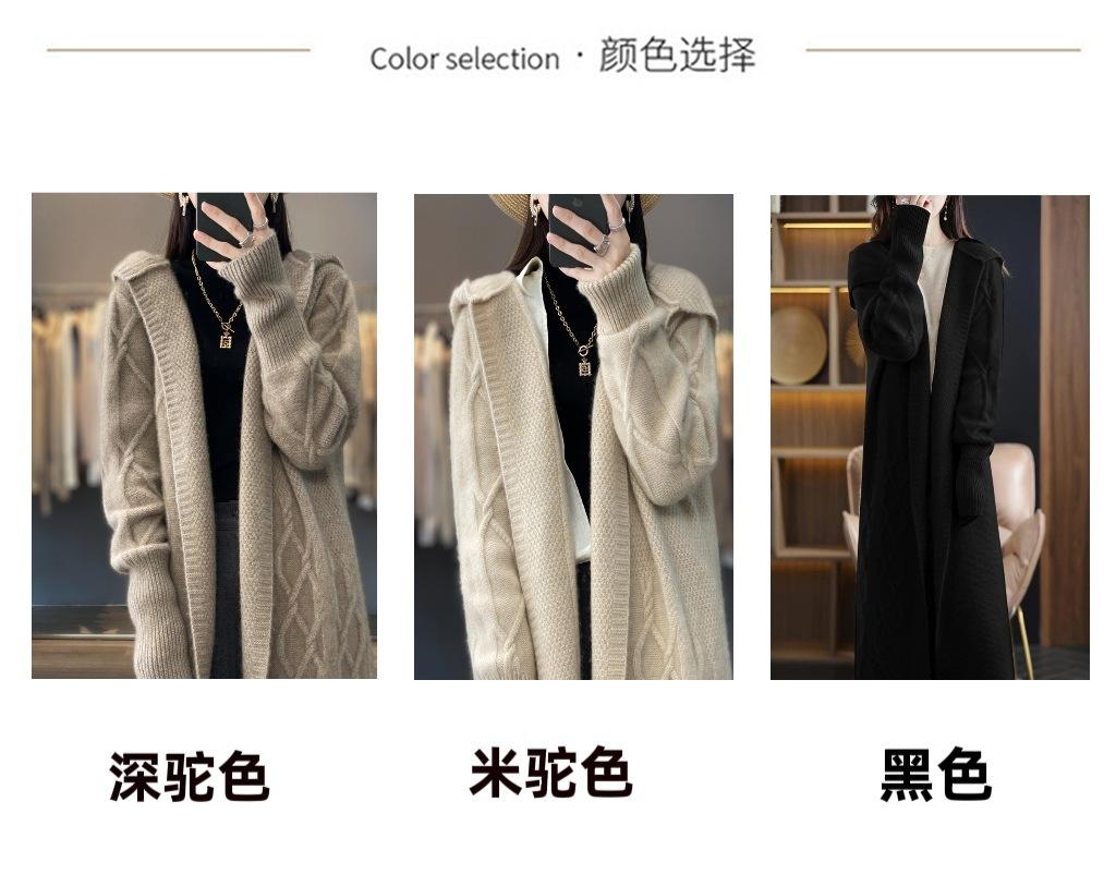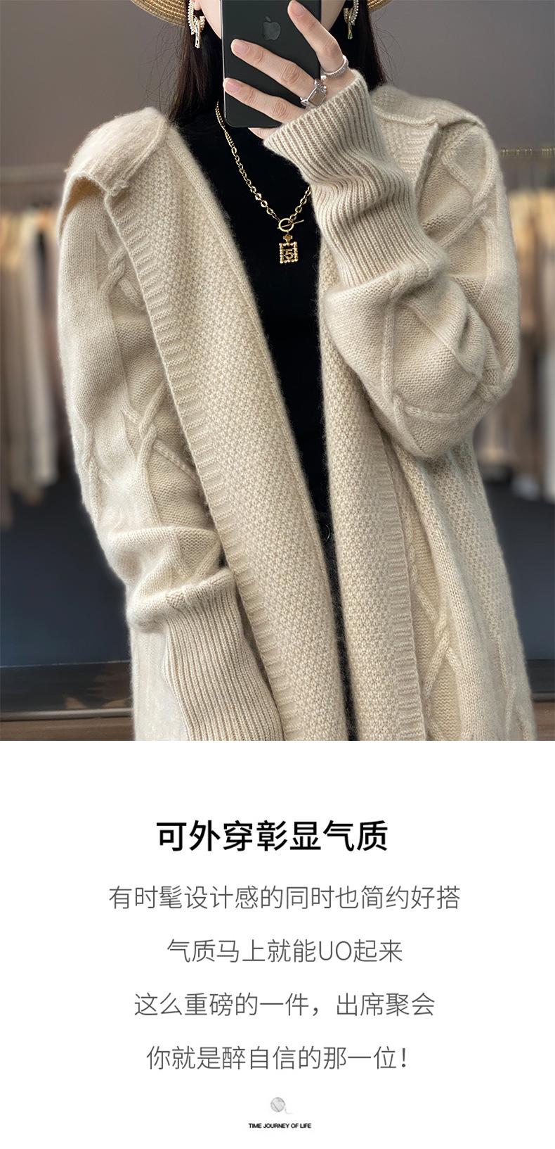 Ropa de mujer Cárdigan de lana 100% de invierno Chaqueta con capucha de longitud media para mujer Nuevo abrigo por encima de la rodilla de otoño e invierno engrosado