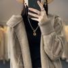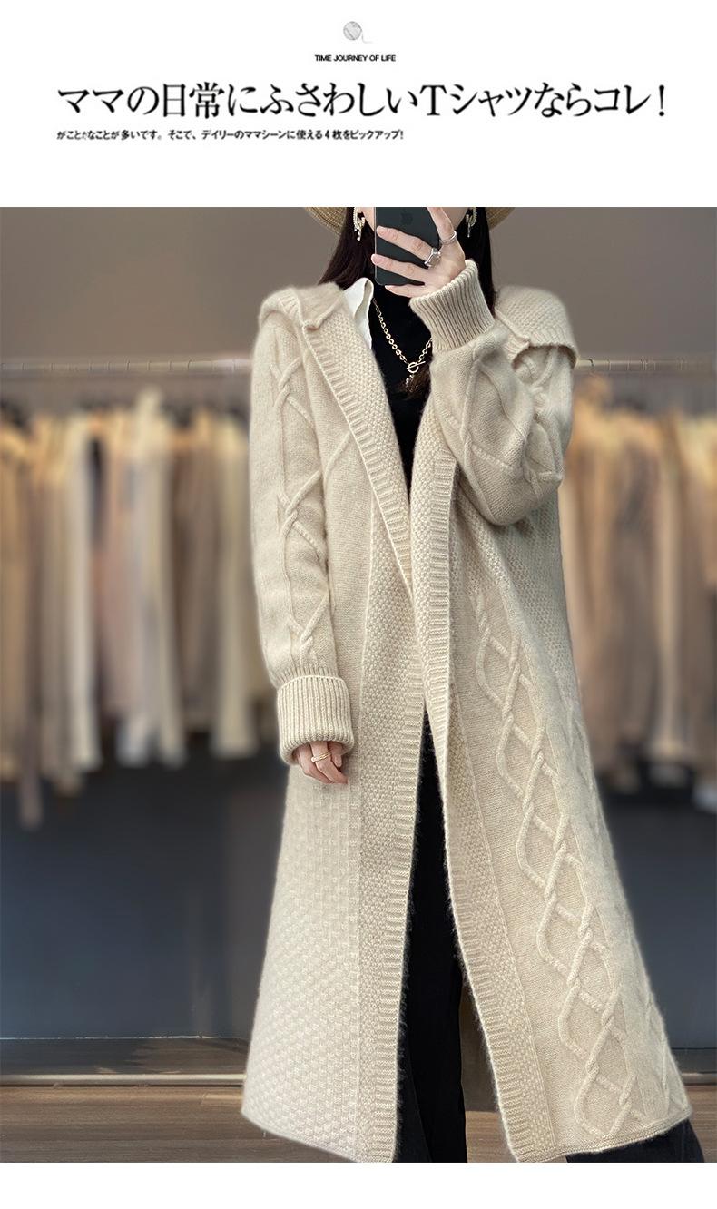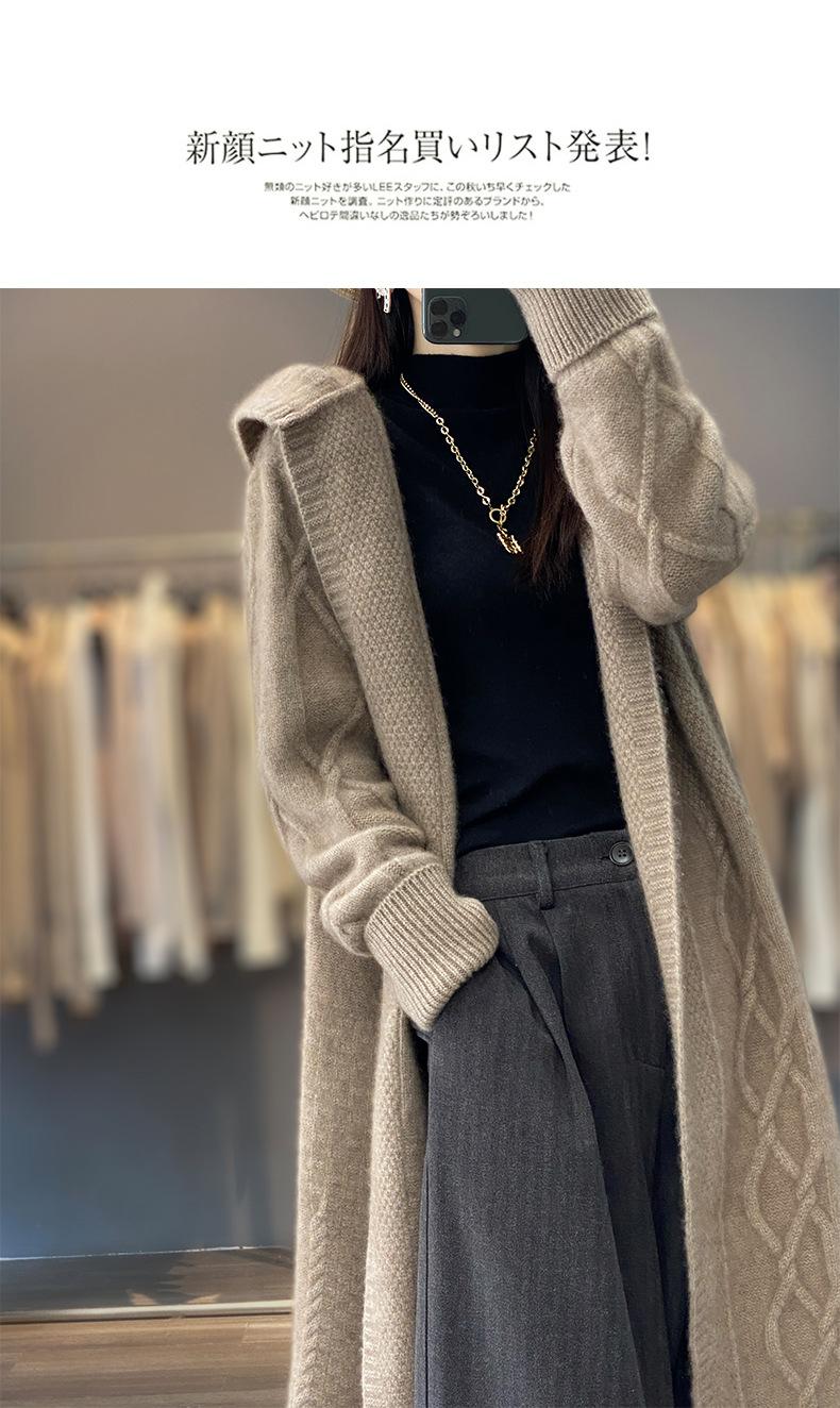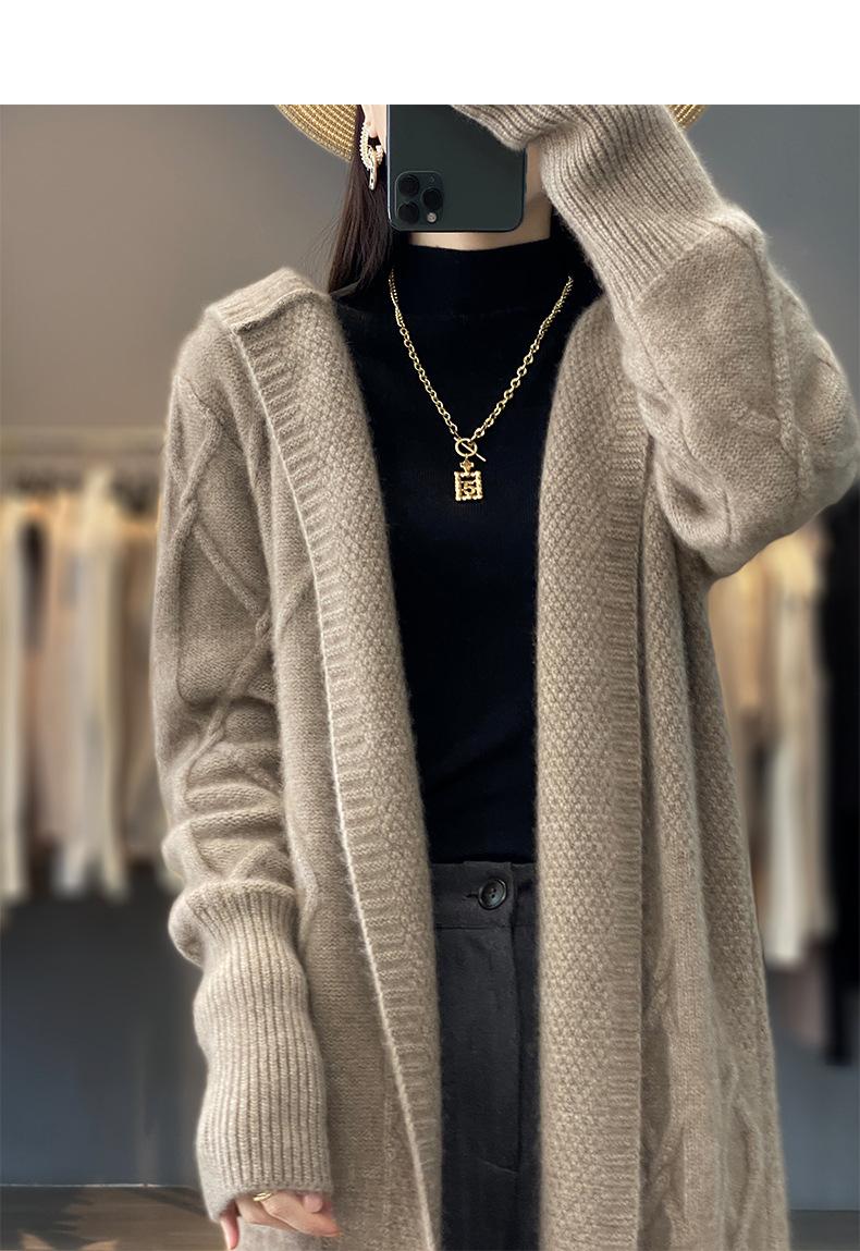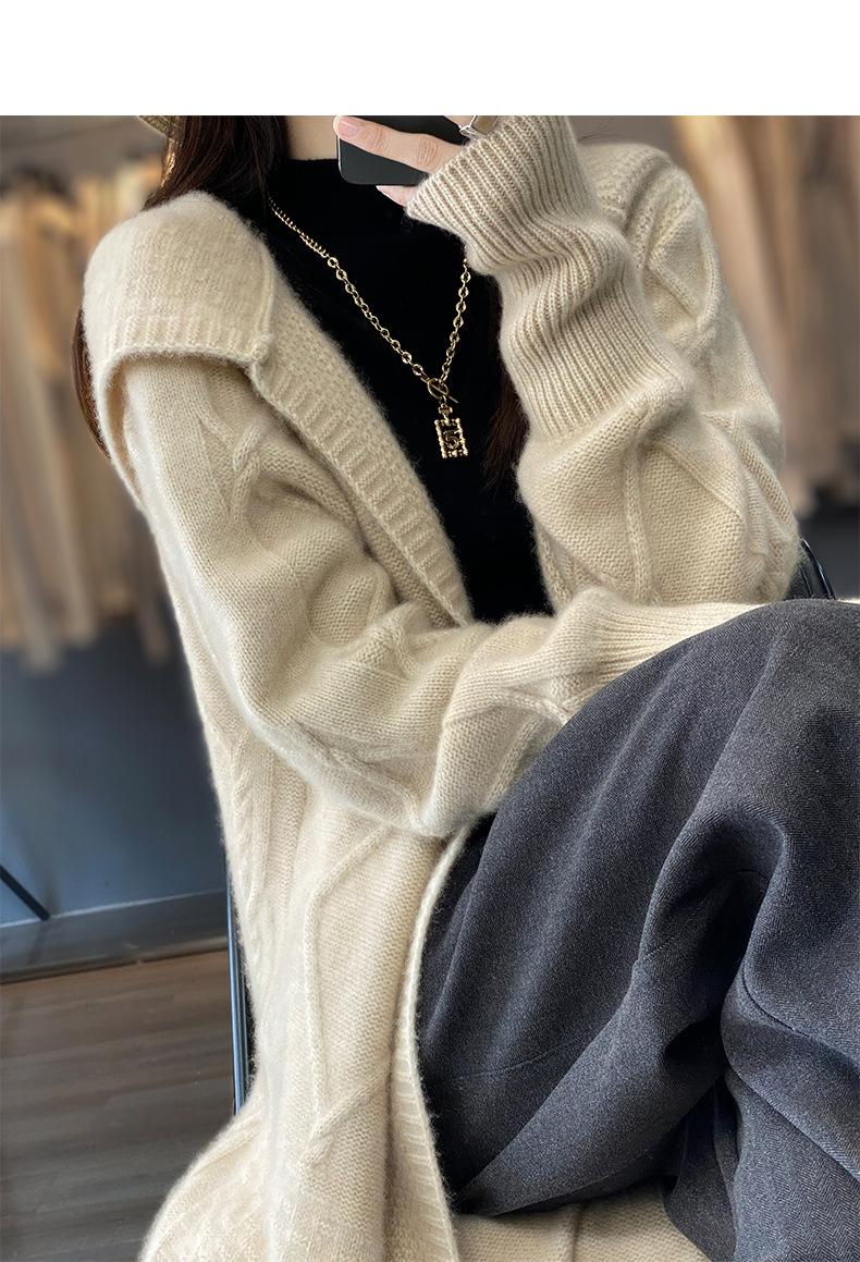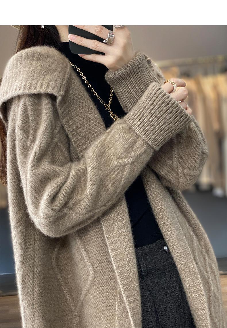 Ropa de mujer Cárdigan de lana 100% de invierno Chaqueta con capucha de longitud media para mujer Nuevo abrigo por encima de la rodilla de otoño e invierno engrosado