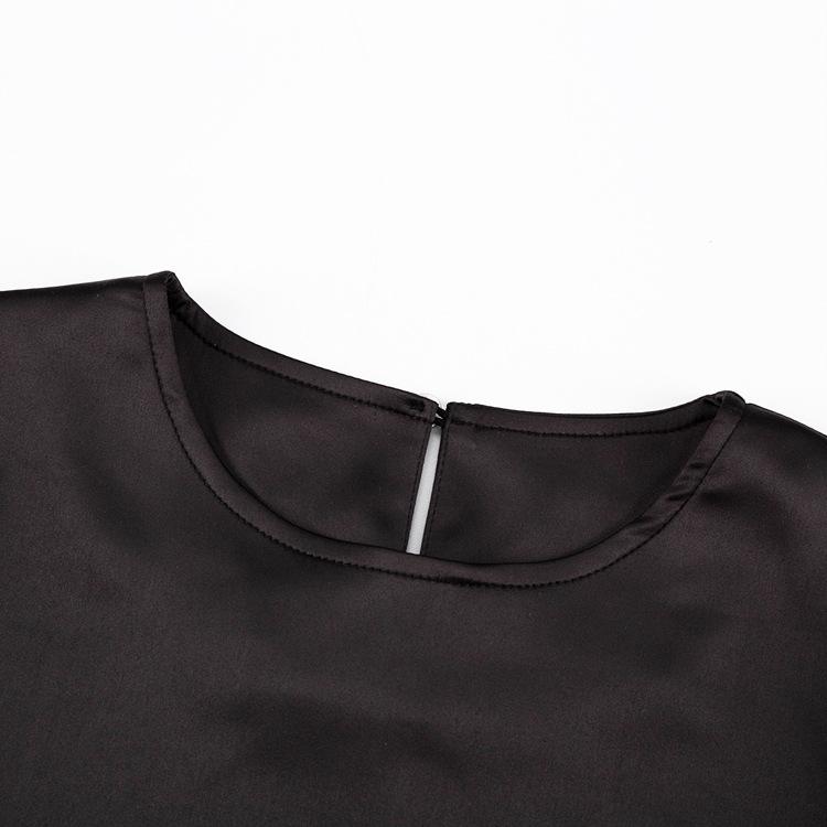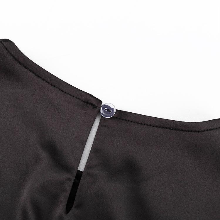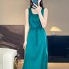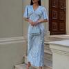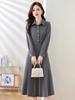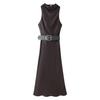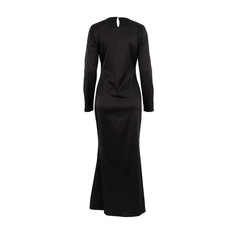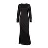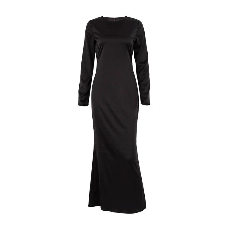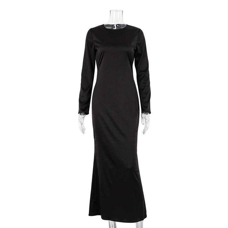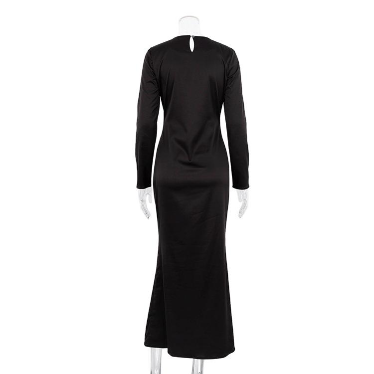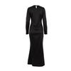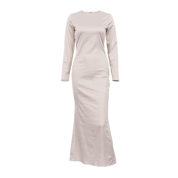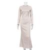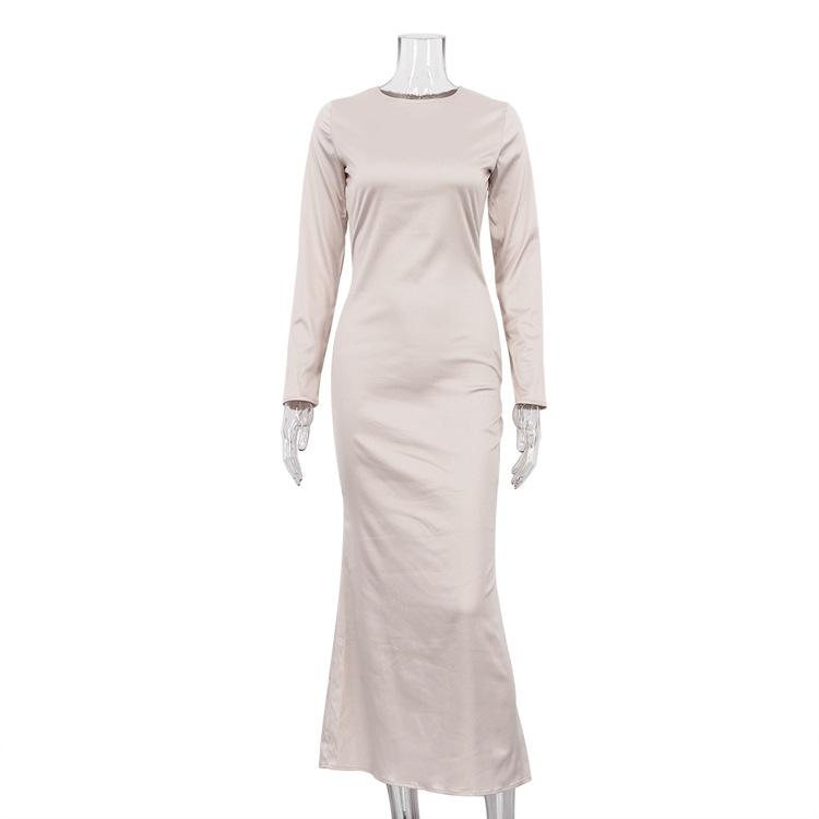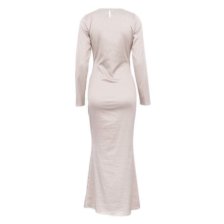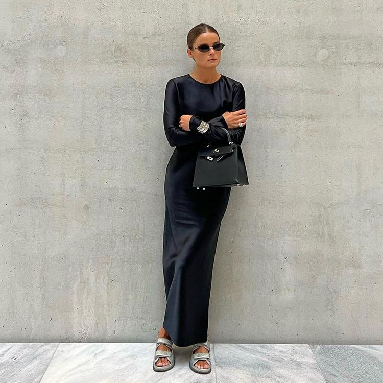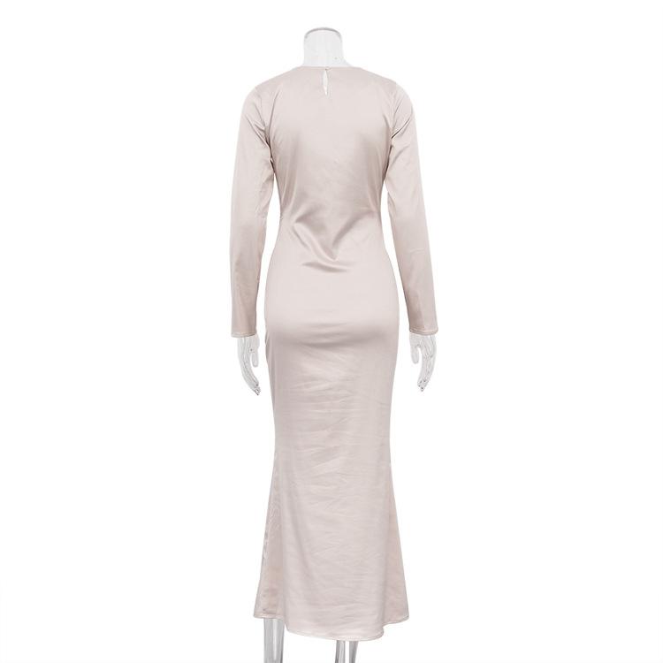 Vestido Largo Drapeado de Satén Nuevo para Mujer Primavera Temprana 2023 Cuello Redondo Cintura Alta Moda Vestido de Manga Larga