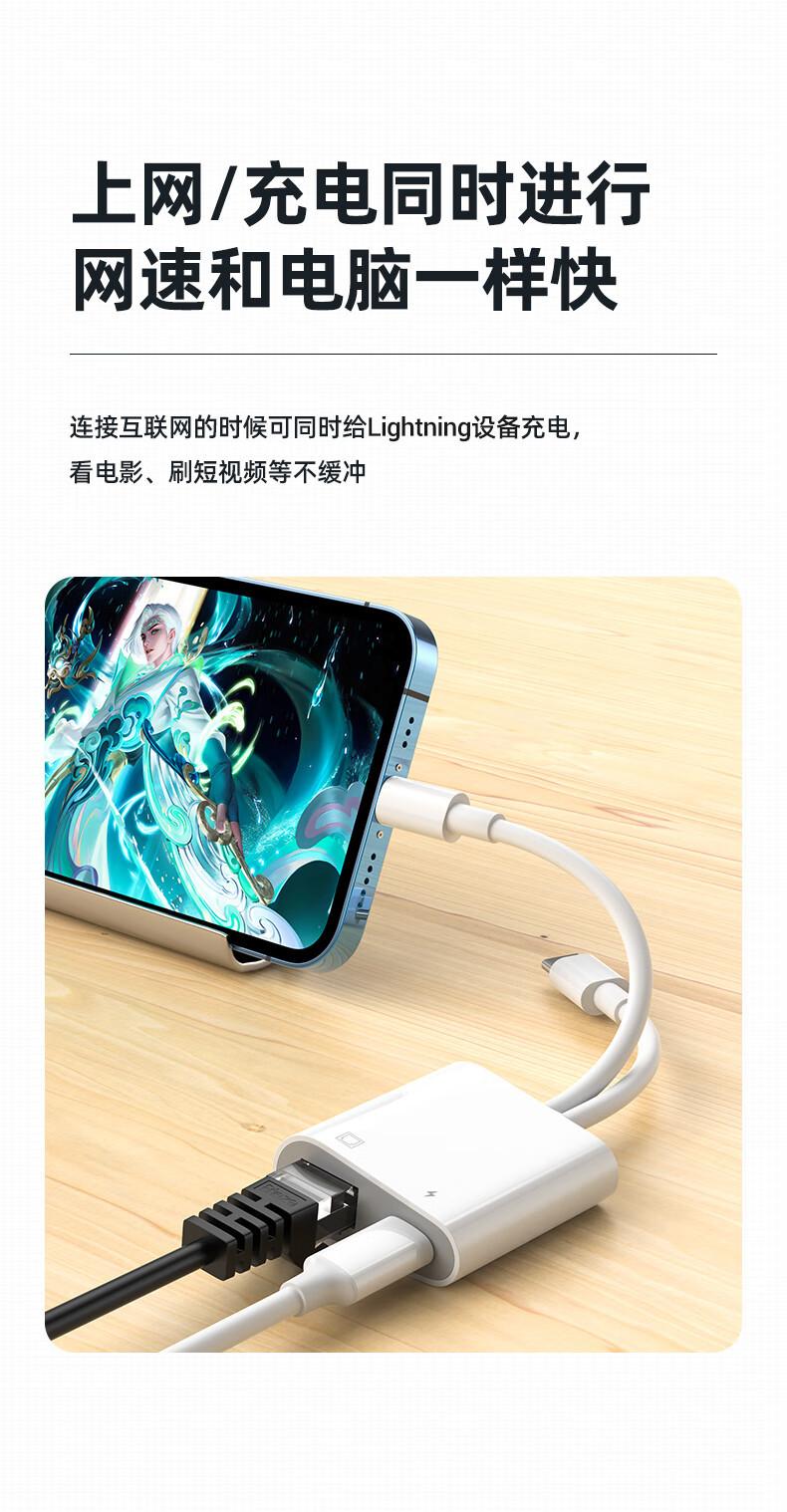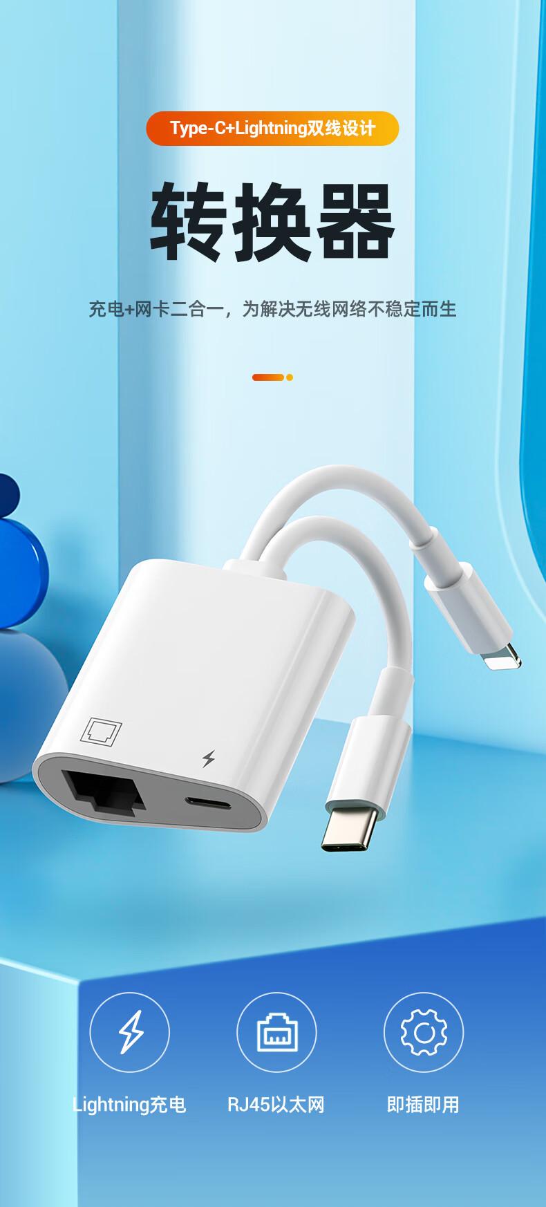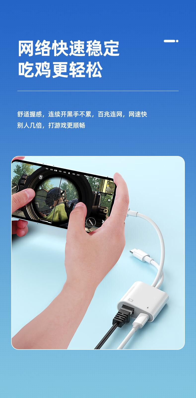 Biaz lightning + convertidor de teléfono móvil Android tipo C a puerto de red artefacto para juegos en vivo clases en línea