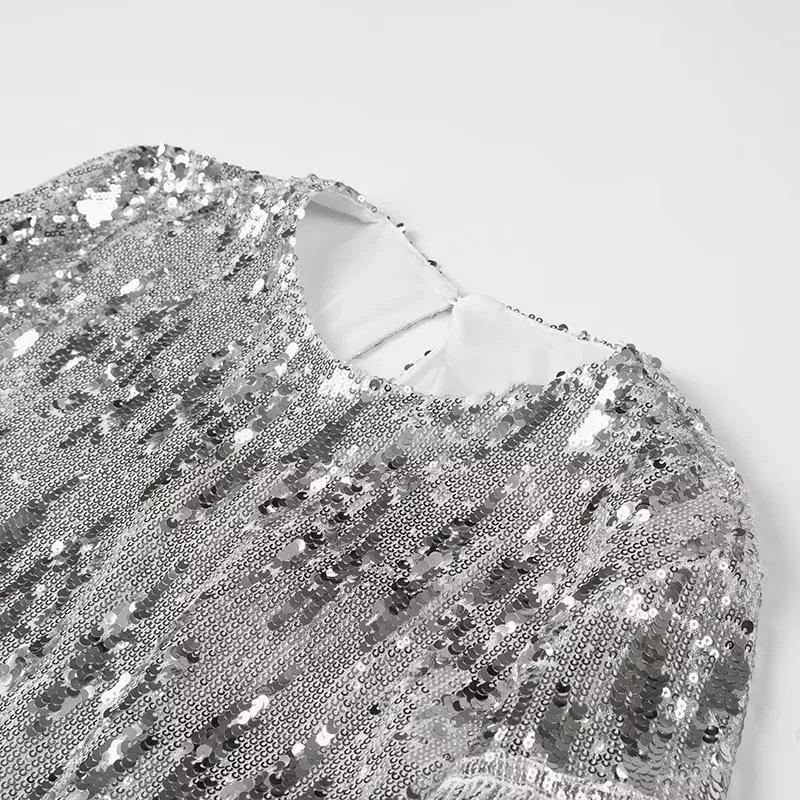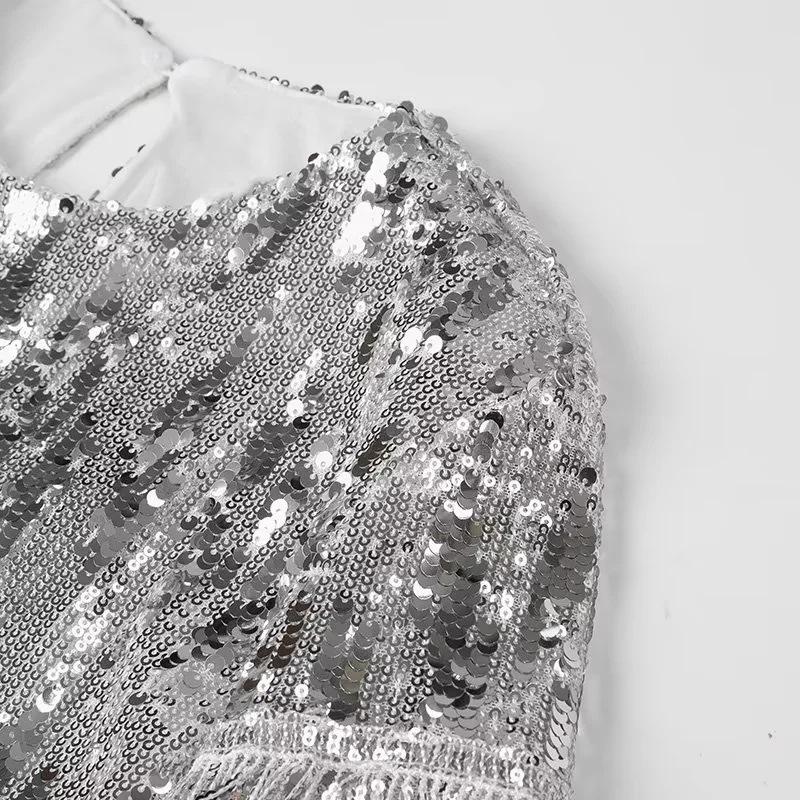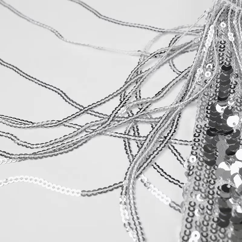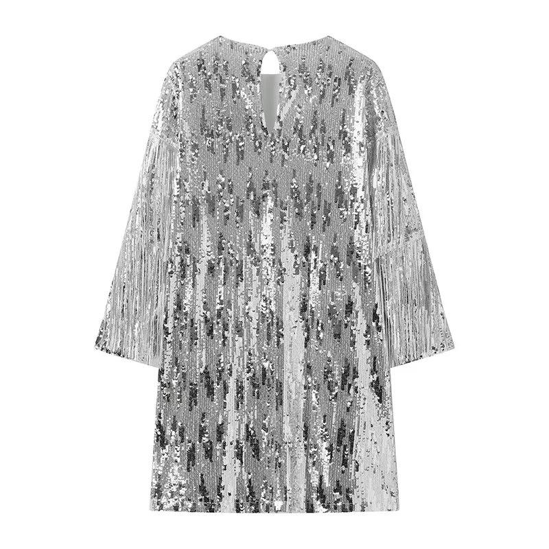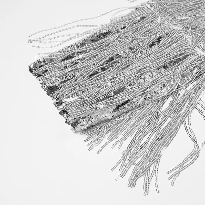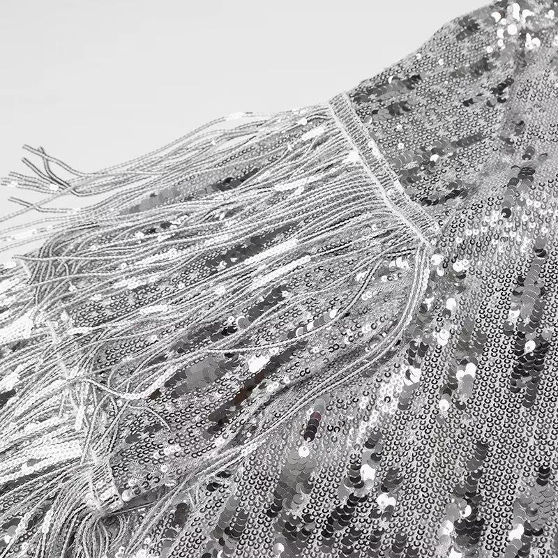 Vestido mini francés nicho con decoración de lentejuelas y borlas 2023 otoño e invierno Nuevo Cintura alta adelgazante sexy falda corta para mujer