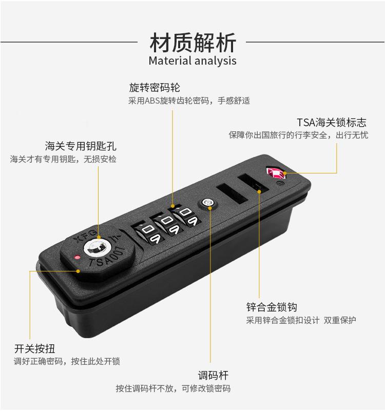 Guangzhou Zhengbo Luggage Products Co., Ltd. se especializa en la producción de una serie de accesorios para equipaje, como cerraduras de combinación, candados, cerraduras fijas, cerraduras aduaneras TSA, carritos, ruedas para maletas, ruedas para maletas y asas. Nuestros productos son populares en el mercado y gozan de gran prestigio. La empresa ha establecido relaciones de cooperación duraderas y estables con importantes fabricantes y agentes de equipaje. Ofrece una gama completa de productos a precios razonables. Con una sólida trayectoria comercial, valoramos la credibilidad, cumplimos los contratos y garantizamos la calidad de nuestros productos. Nos hemos ganado la confianza de nuestros clientes gracias a nuestra amplia gama de productos y al principio de bajos beneficios y rápida rotación.