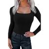 Camiseta versátil de cuello redondo con costuras de color liso para mujer de principios de otoño, nueva camiseta de comercio exterior europea y americana 25116809