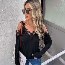 Blusas de manga larga con hombros descubiertos para mujer, estilo europeo y americano, otoño 2022, nueva camisa holgada informal de color liso, 25110289