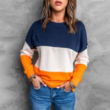 Camisetas de manga larga con cuello redondo y costuras en bloque de color para mujer, camisetas de moda de talla grande de comercio exterior europeo y americano, otoño 2022, 2531107