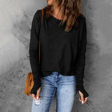 Camiseta de otoño de color liso Shi Ying, camiseta de manga larga con cuello redondo, estilo europeo y americano, informal, holgada, 25117021
