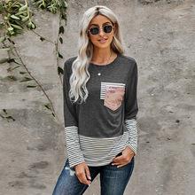 Blusas de manga larga a rayas de otoño e invierno de Amazon para mujer en Europa y América, camisa informal de cuello redondo con parte inferior de comercio exterior 25117367