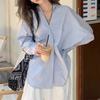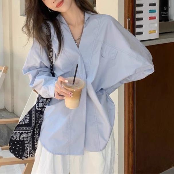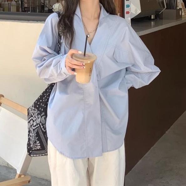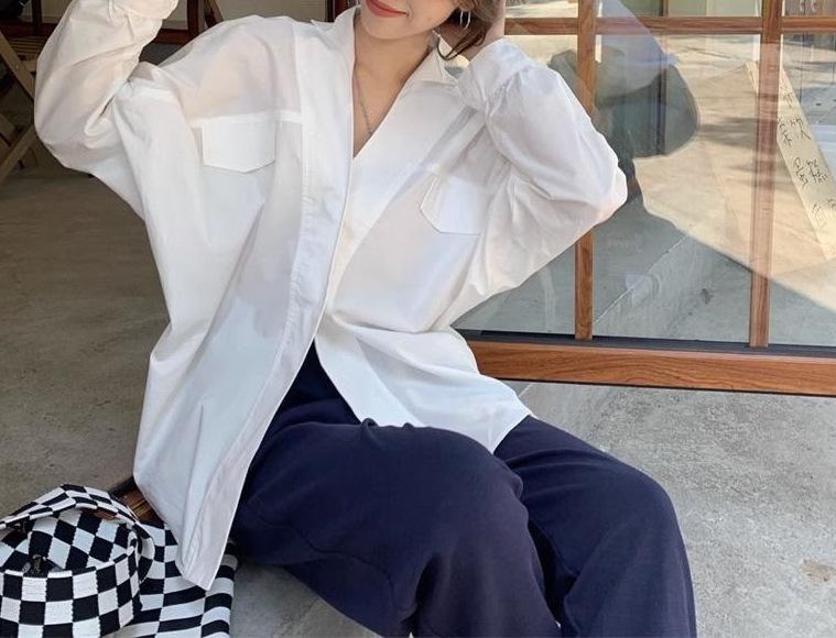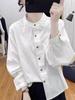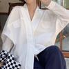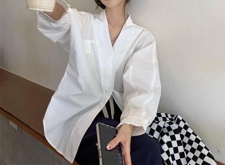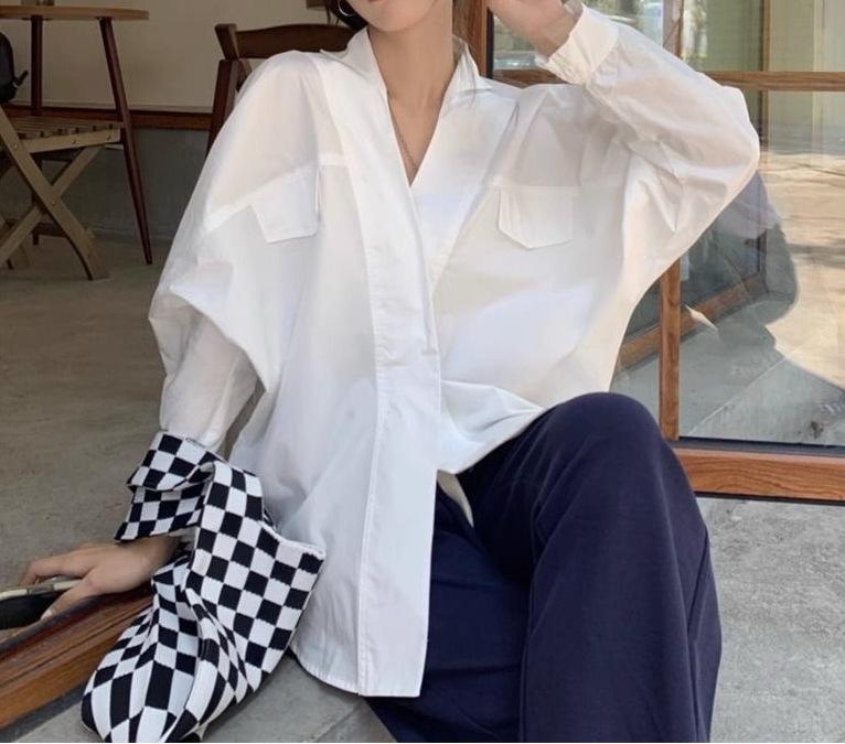 Camisa Blanca Tipo Camisa Nuevo Estilo Francés Retro Versátil Diseño Holgado Camisa de Manga Larga Top Primavera Irregular