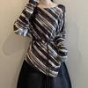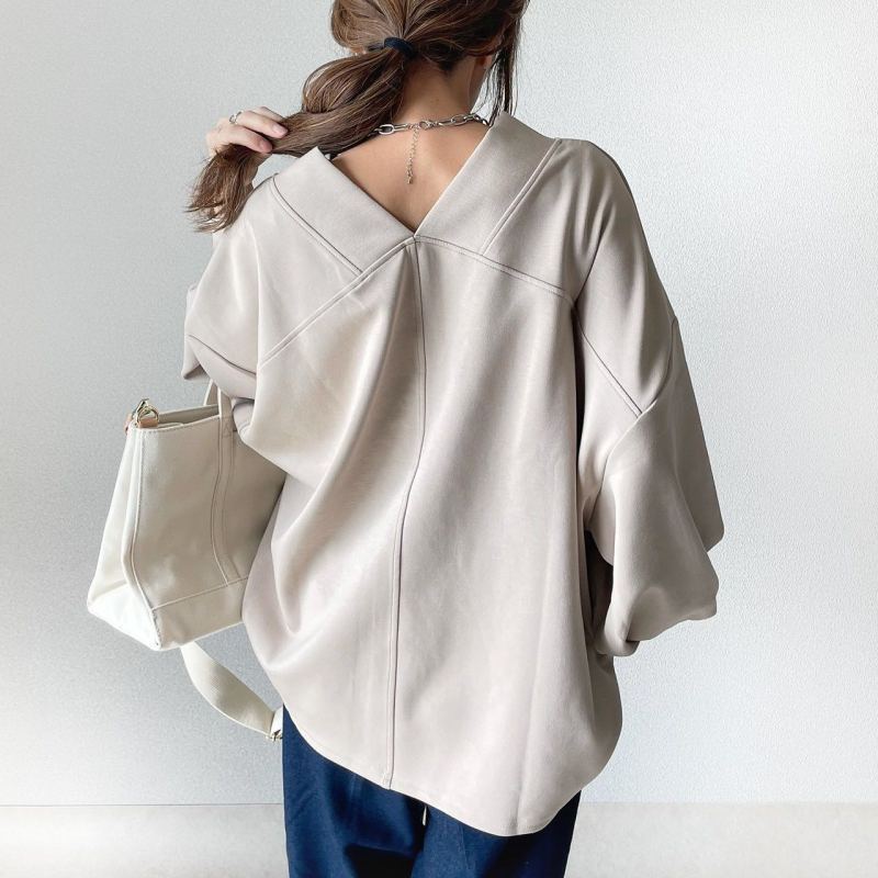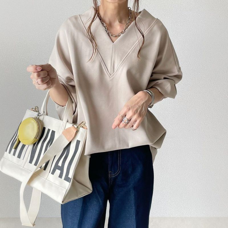 2025 Estilo Japonés Otoño Nuevo Ropa de Mujer Cuello en V Grande Mangas de Murciélago Ajuste Holgado Adelgazante Camiseta de Manga Larga Empalmada Color Puro