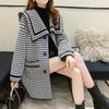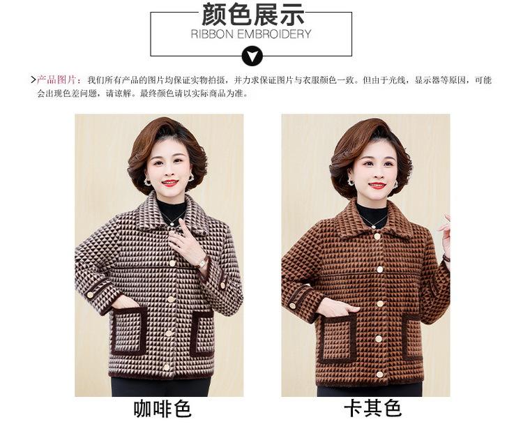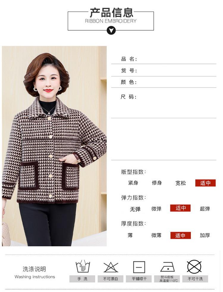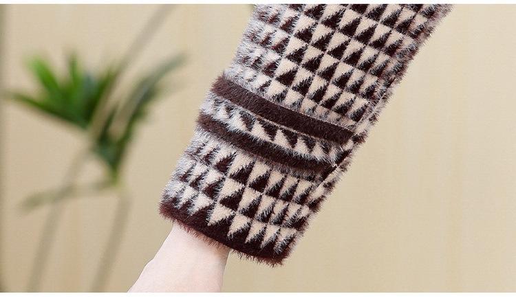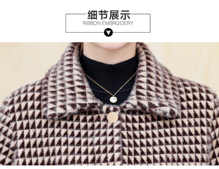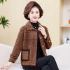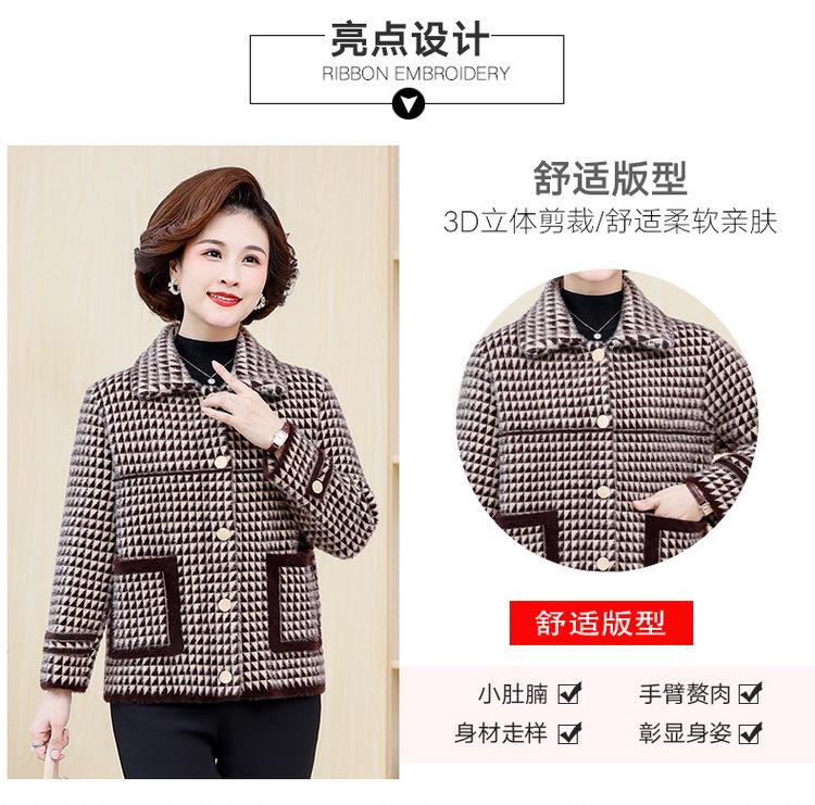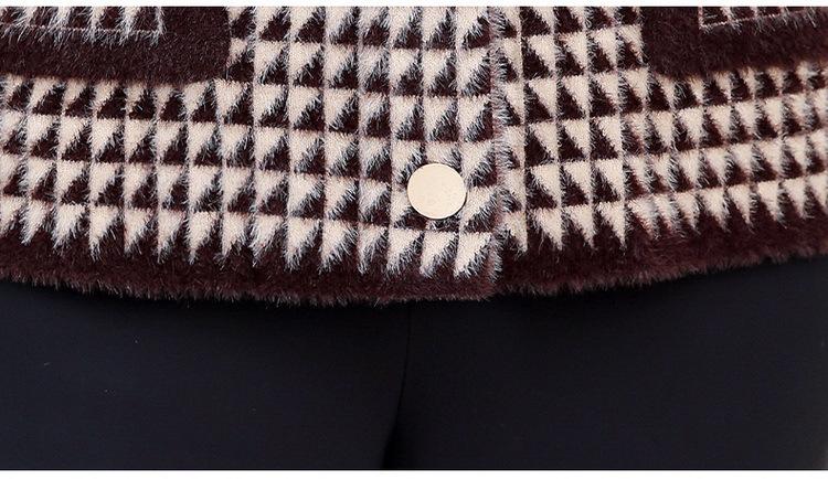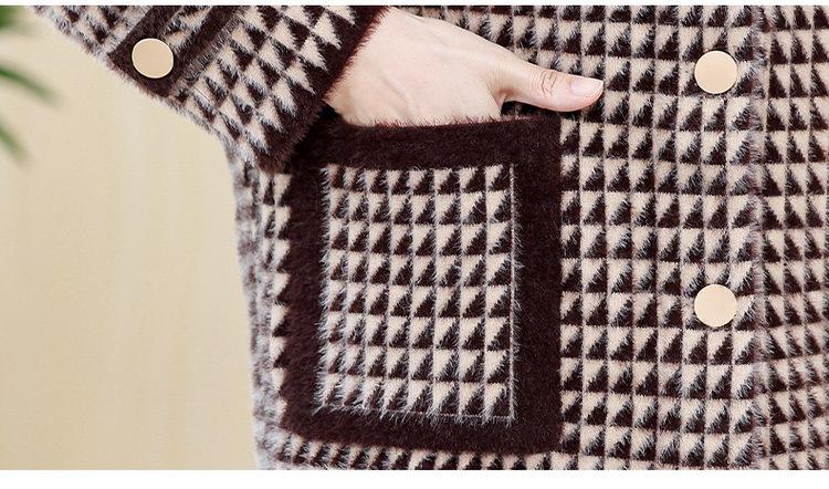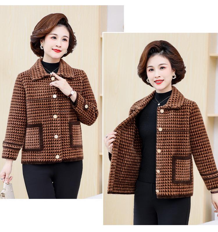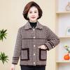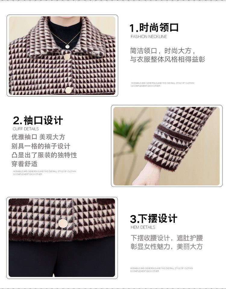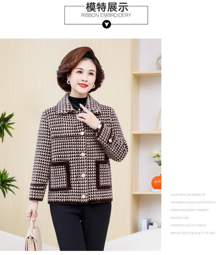 Abrigo Corto de Otoño Tartán para Mujeres de Mediana Edad y Mayores, Cárdigan de Punto de Moda de Terciopelo Imitación Visón con Estampado de Pata de Gallo