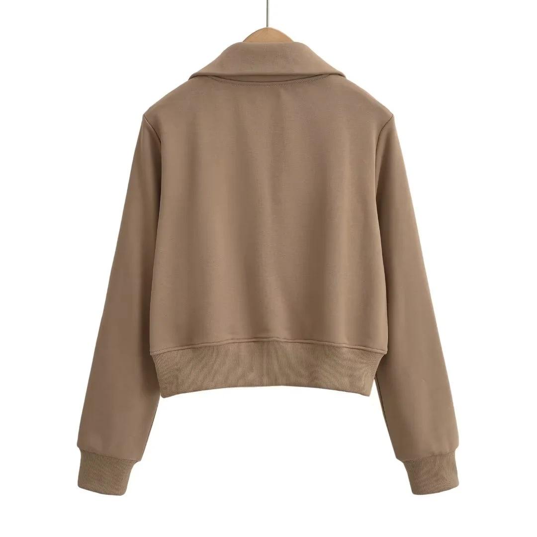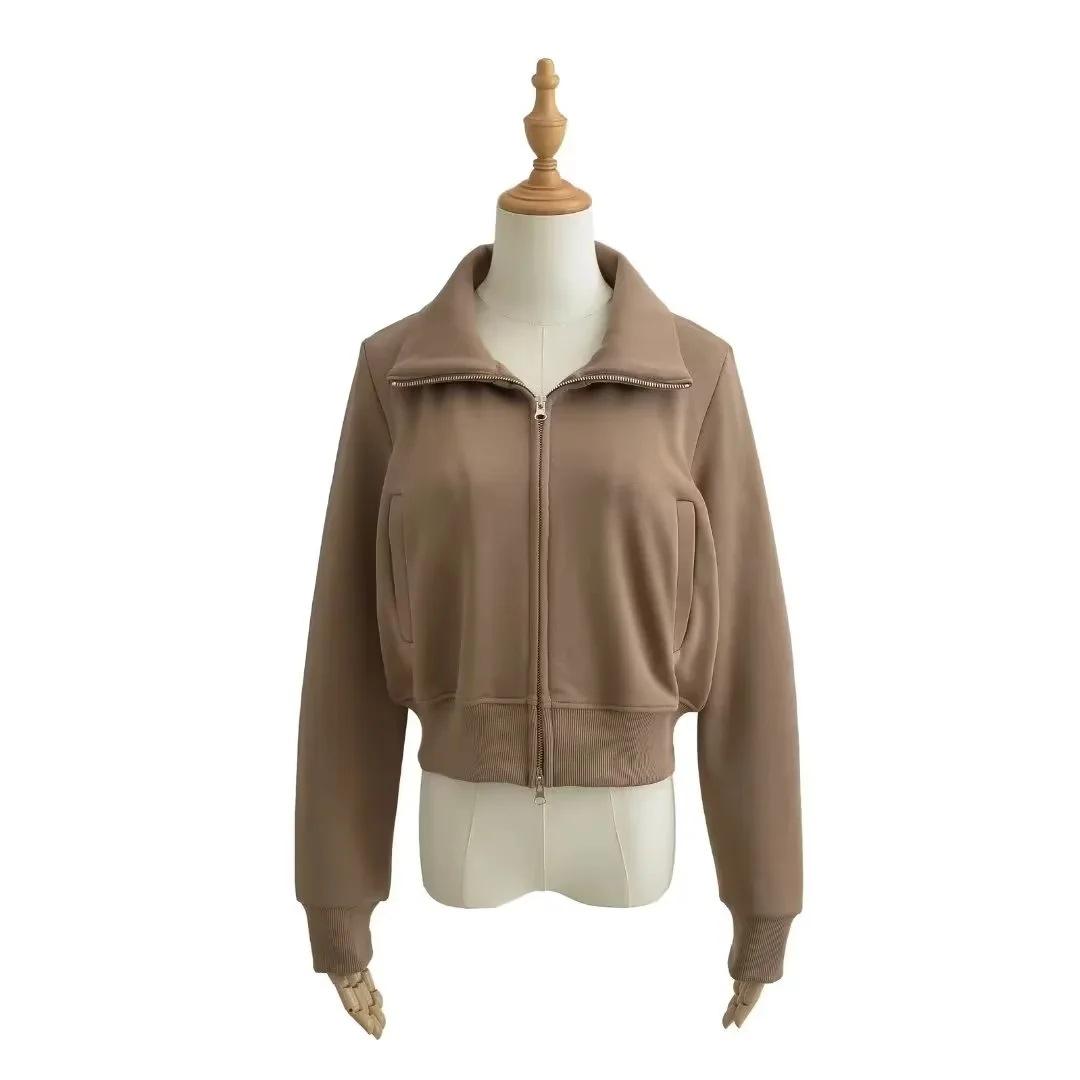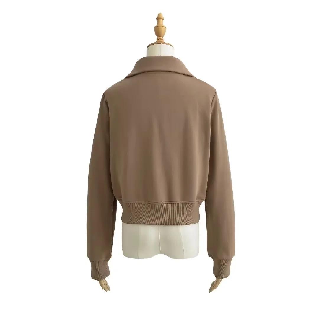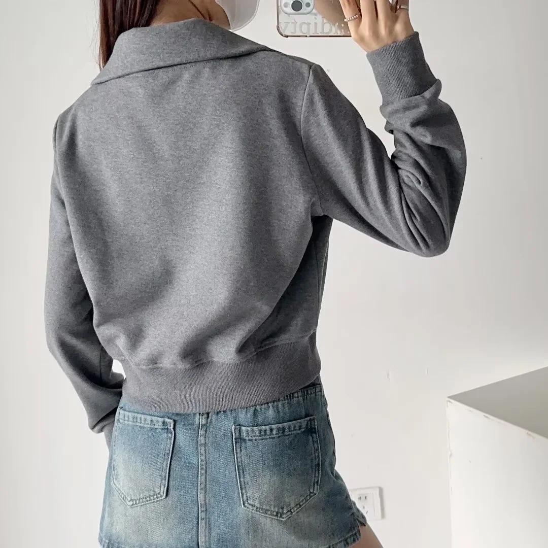Cárdigan informal de calle retro americana para mujer, otoño e invierno 2023, nuevo top holgado con solapa y cremallera corta