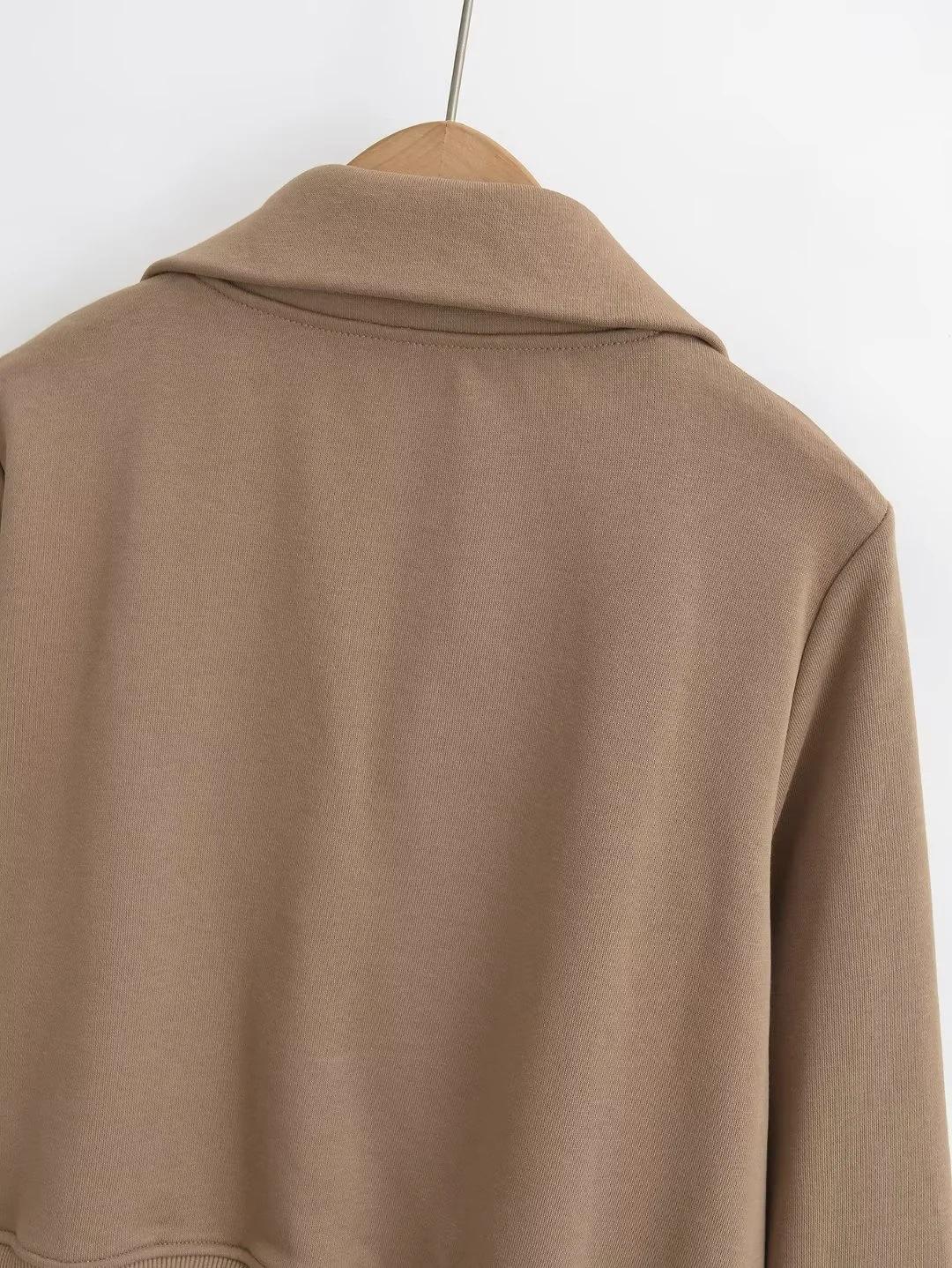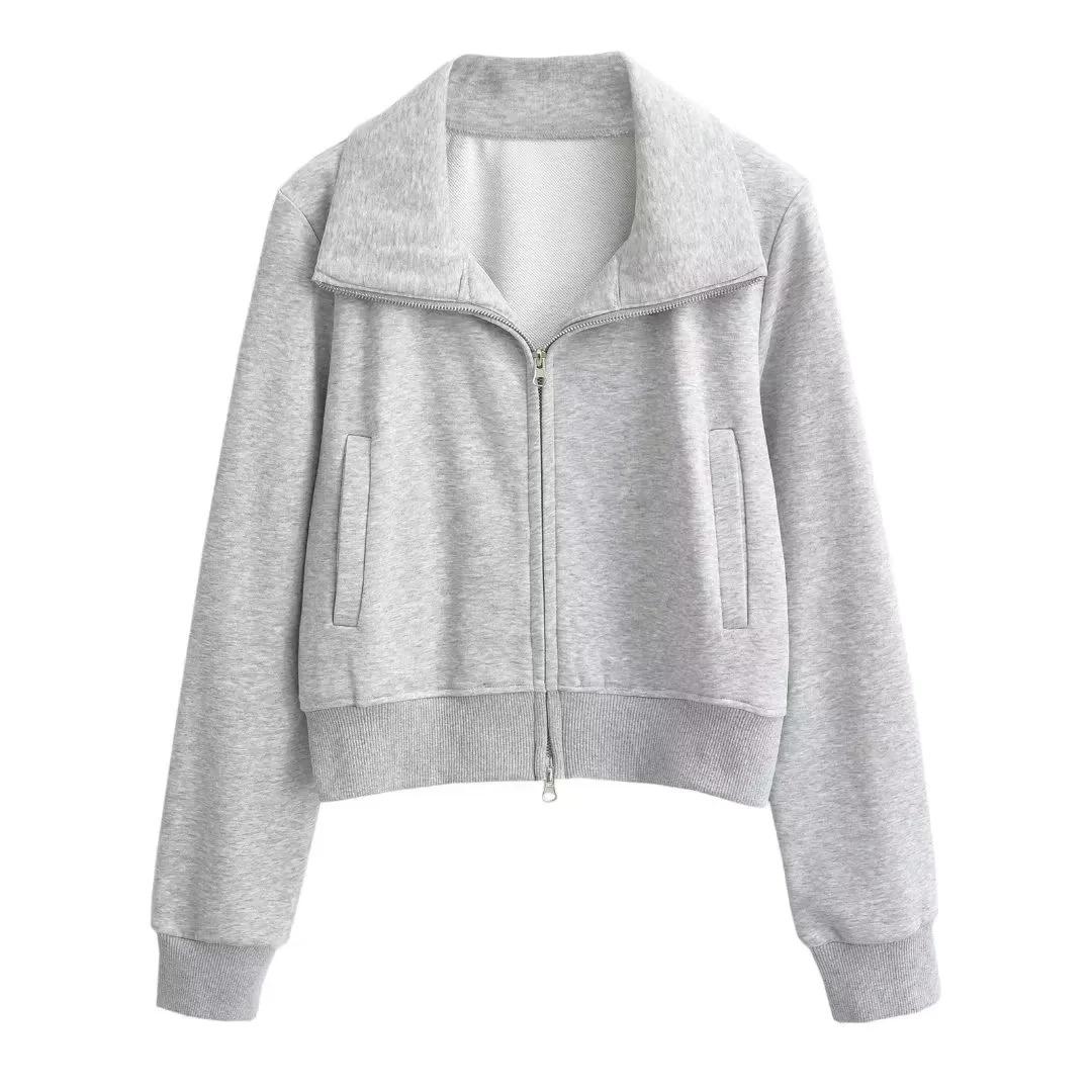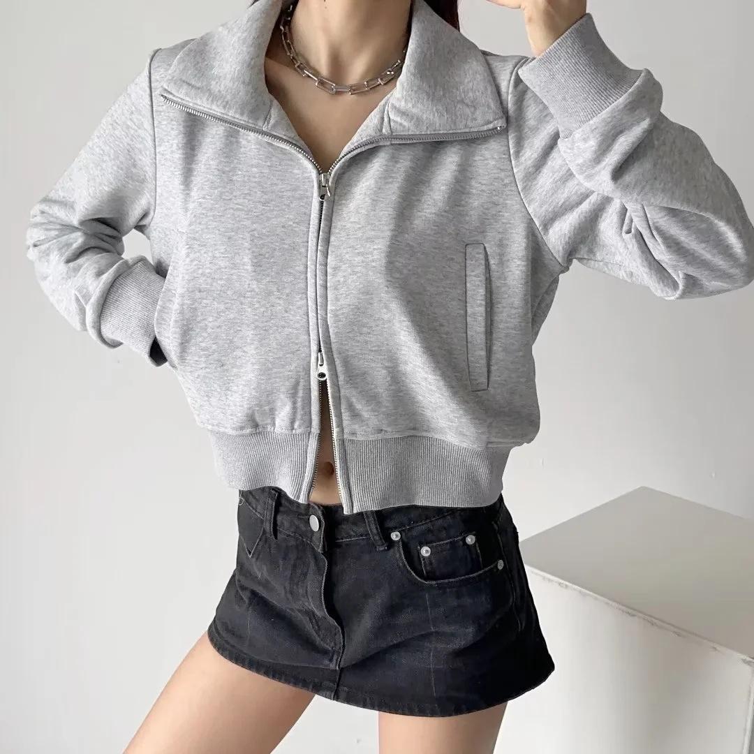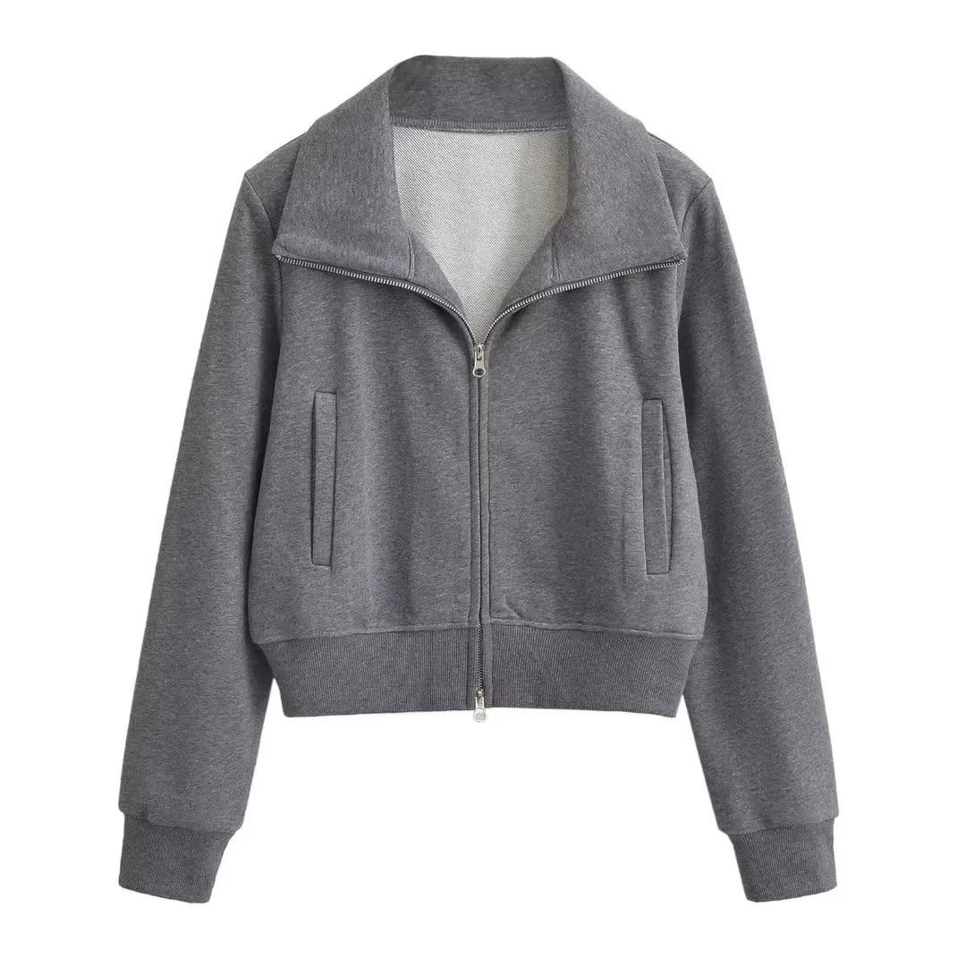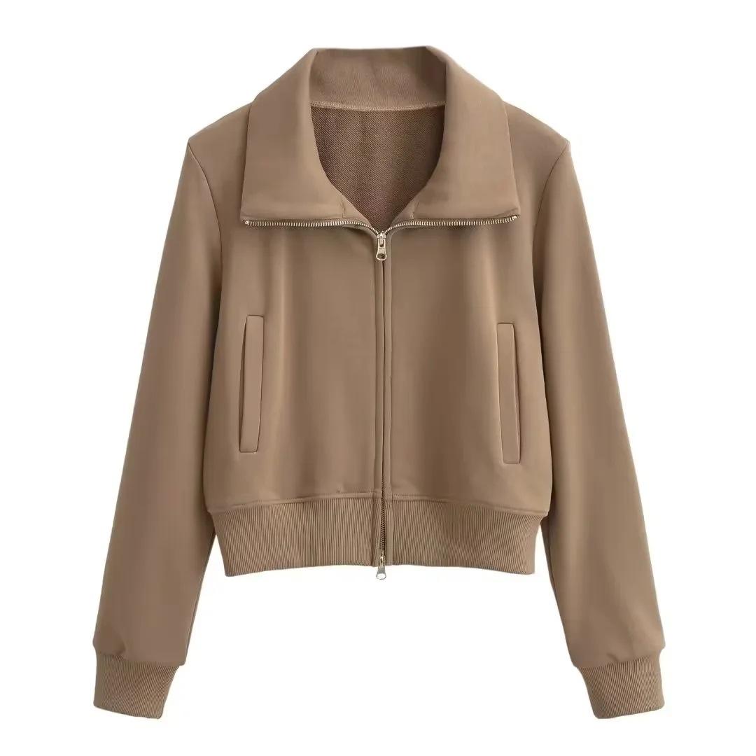 Cárdigan informal de calle retro americana para mujer, otoño e invierno 2023, nuevo top holgado con solapa y cremallera corta