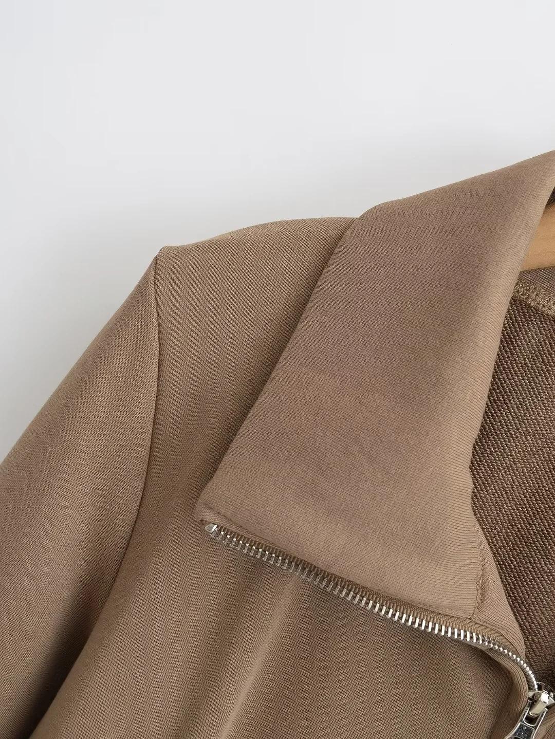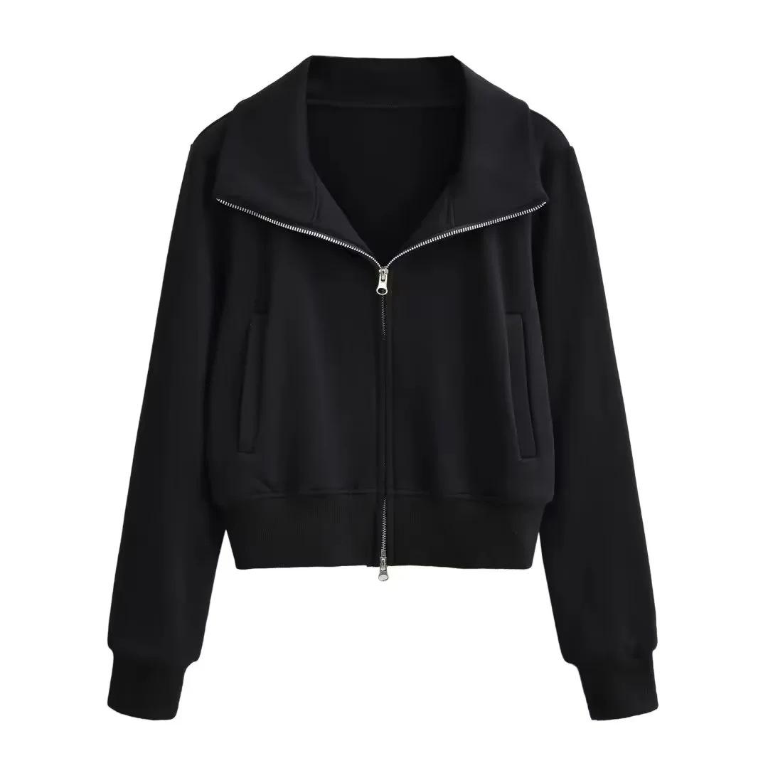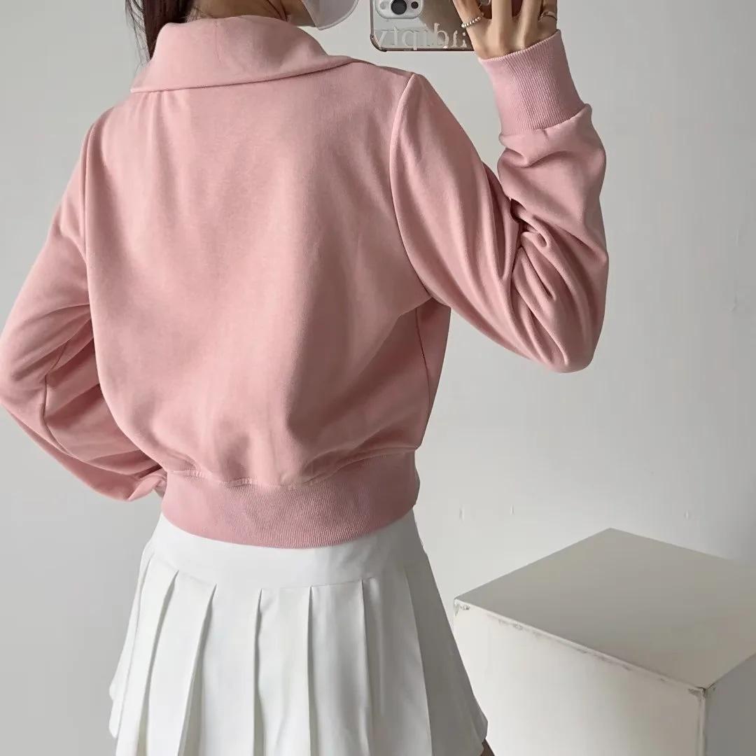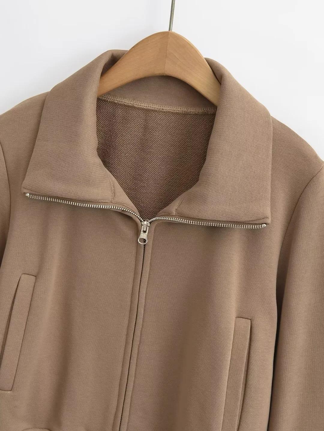 Cárdigan informal de calle retro americana para mujer, otoño e invierno 2023, nuevo top holgado con solapa y cremallera corta