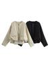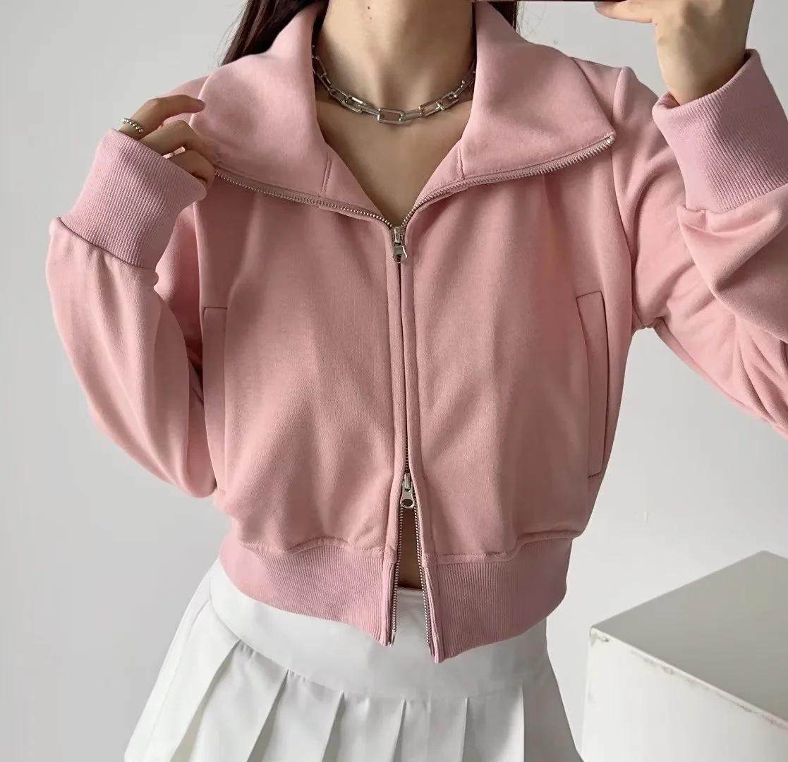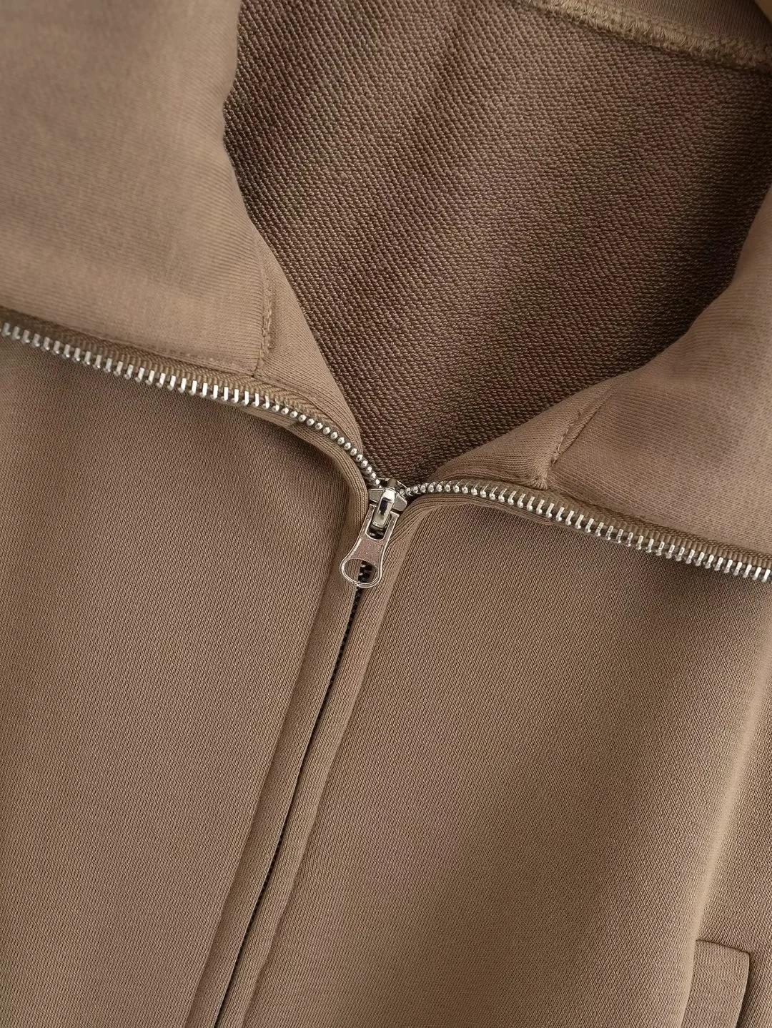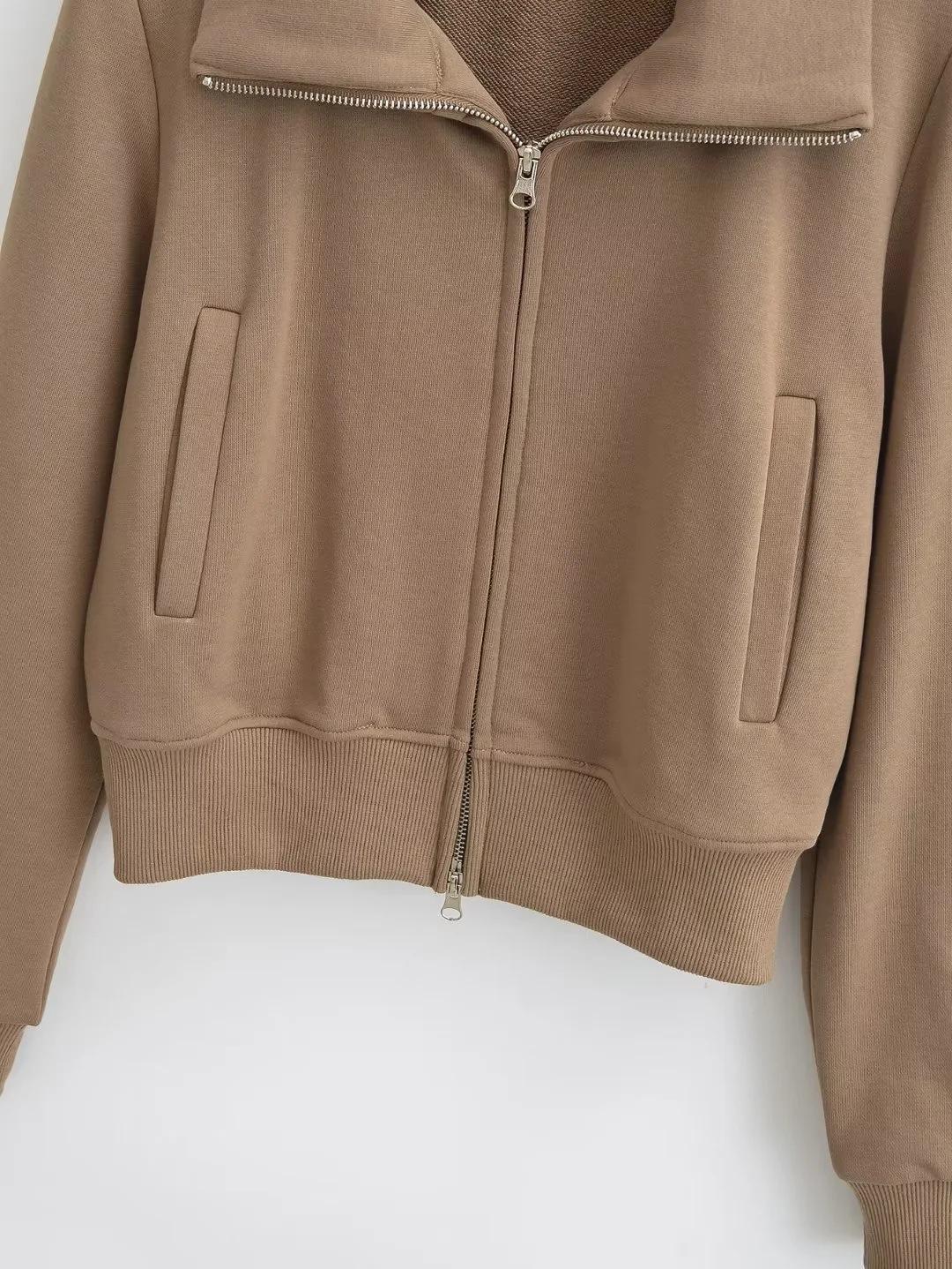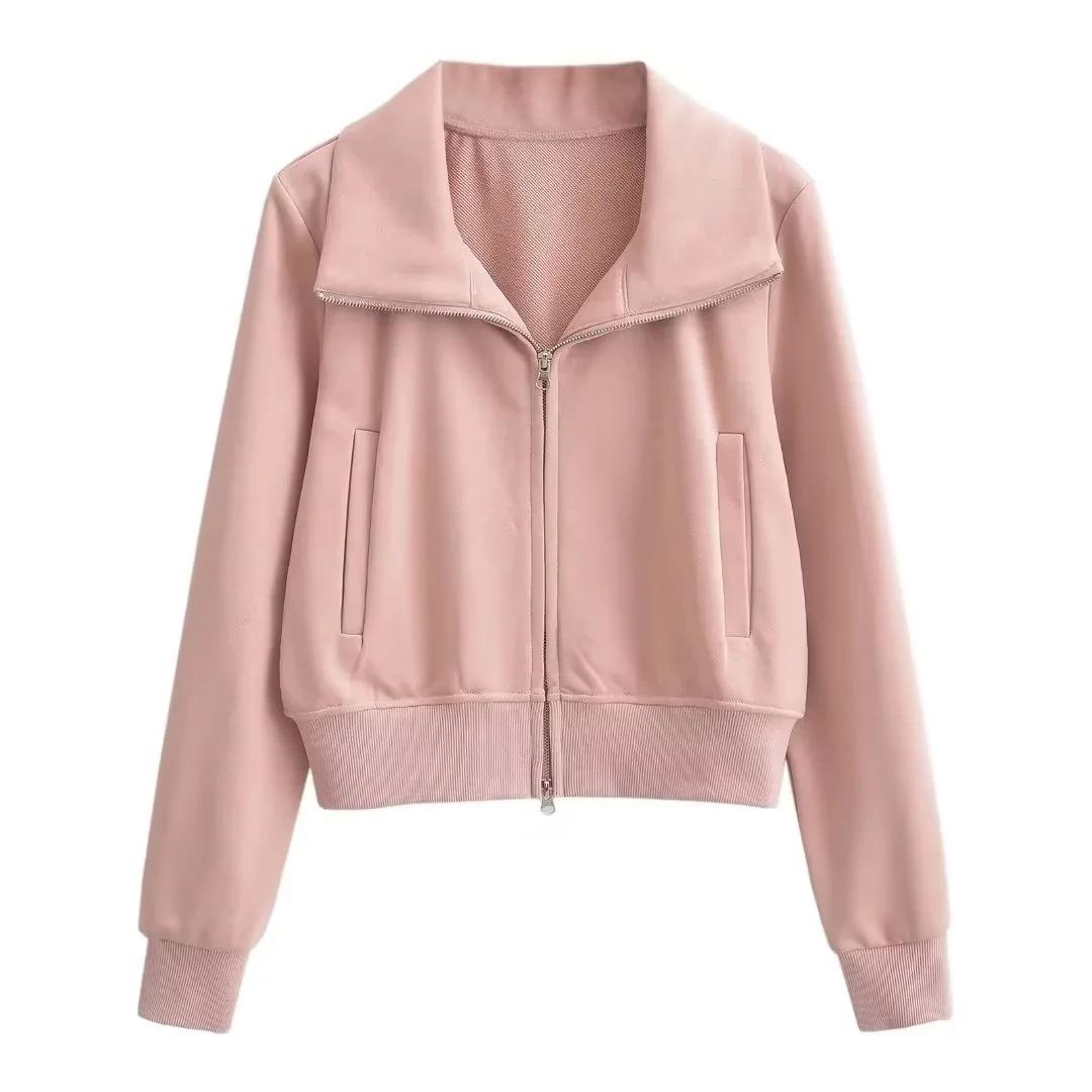 Cárdigan informal de calle retro americana para mujer, otoño e invierno 2023, nuevo top holgado con solapa y cremallera corta