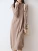 Suéter de lana de color sólido para mujer, otoño e invierno, nuevo estilo coreano, cuello redondo, manga larga, lana pura, longitud media, ropa exterior