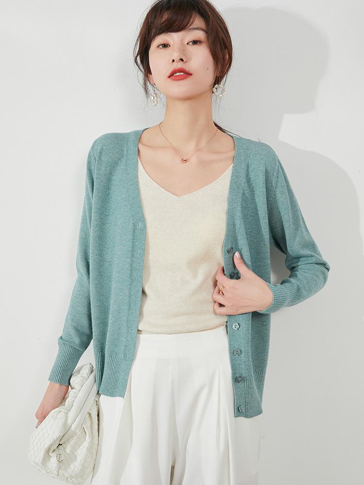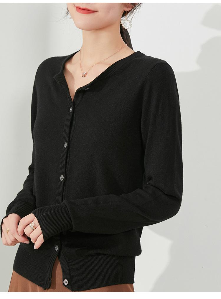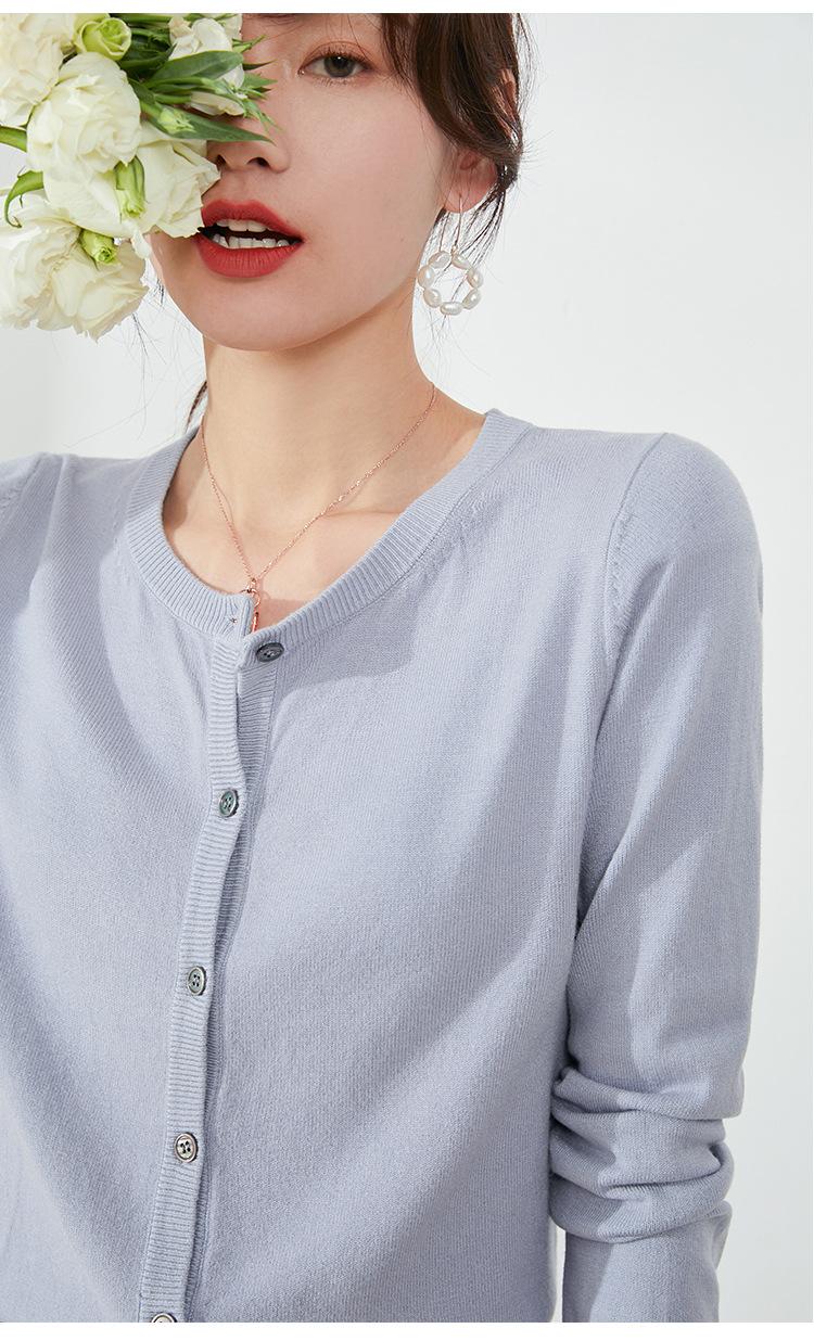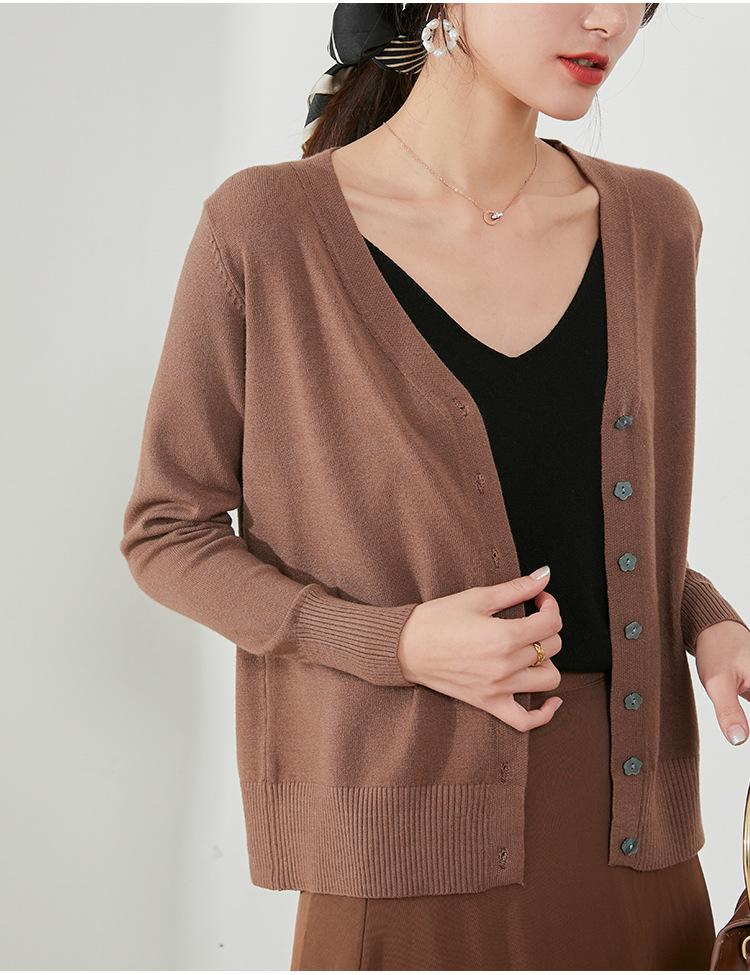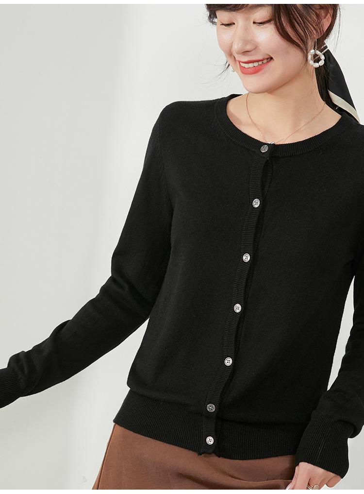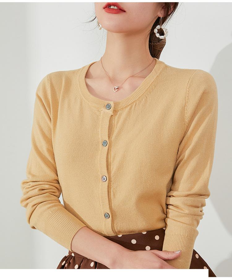 Nuevo Cárdigan de Punto Base de Color Sólido Primavera 2020 Cuello Redondo Suéter Holgado Chaqueta Manga Larga Corto Ropa de Mujer