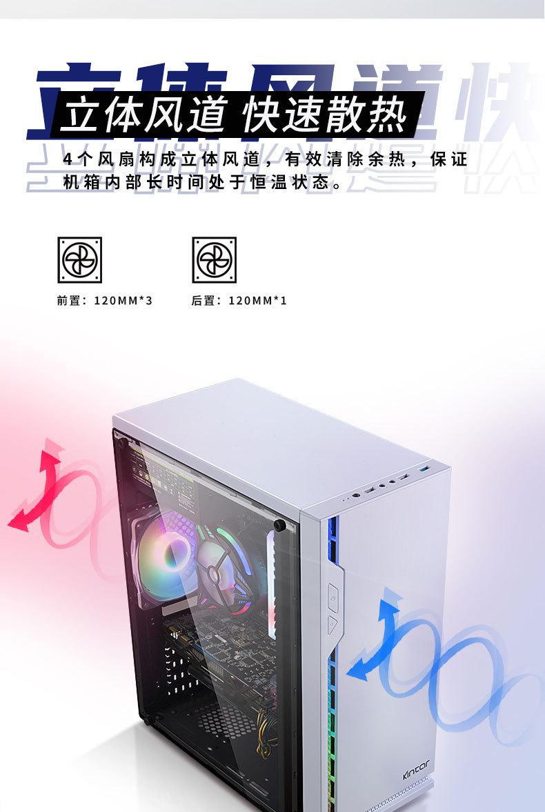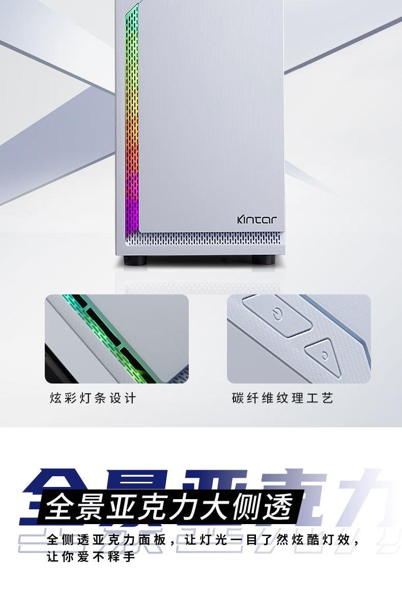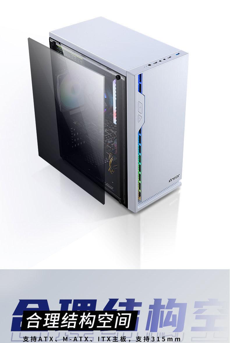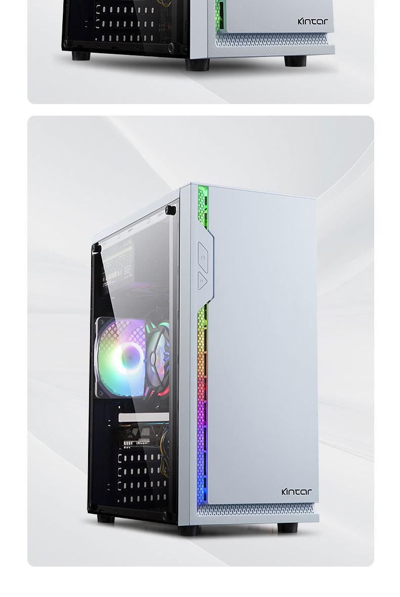 Computadora de escritorio transfronteriza, host, carcasa panorámica lateral, barra de luz RGB transparente, refrigerada por agua, chasis para juegos de deportes electrónicos