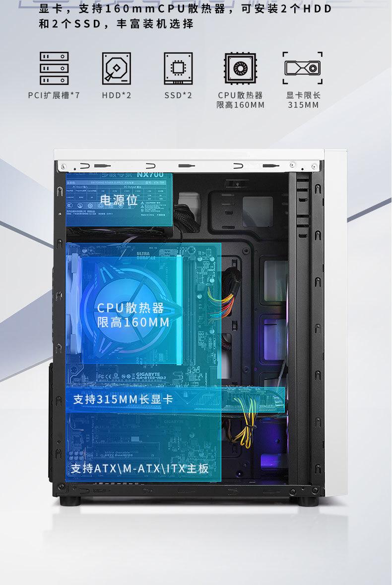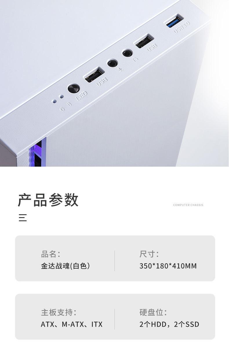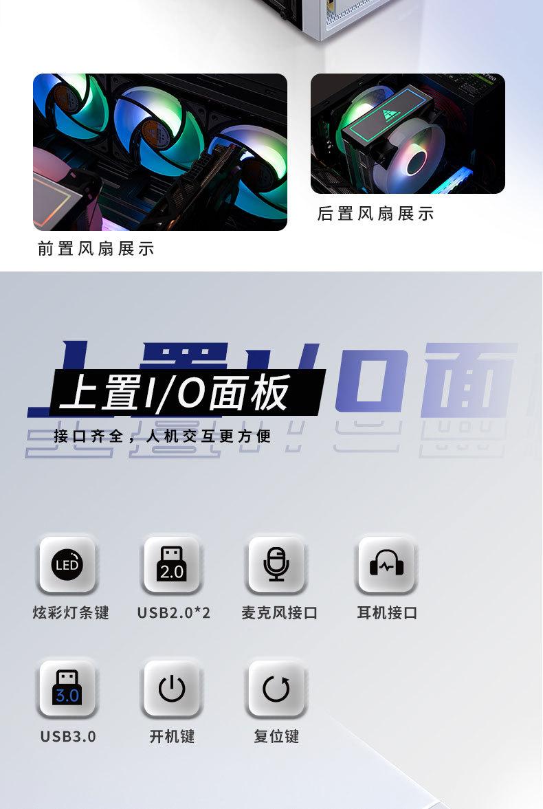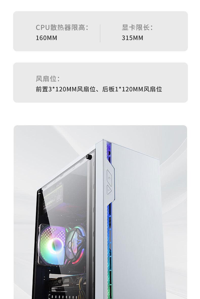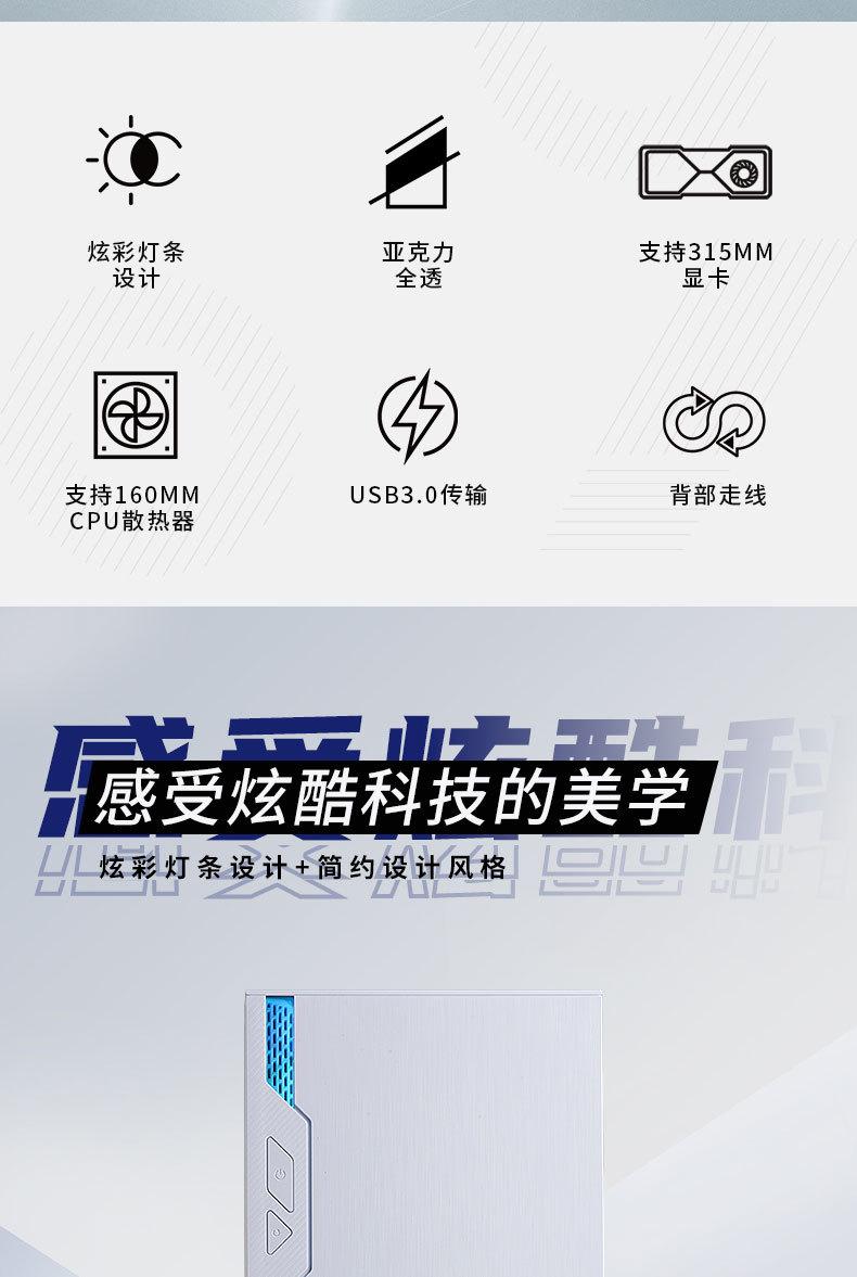 Computadora de escritorio transfronteriza, host, carcasa panorámica lateral, barra de luz RGB transparente, refrigerada por agua, chasis para juegos de deportes electrónicos